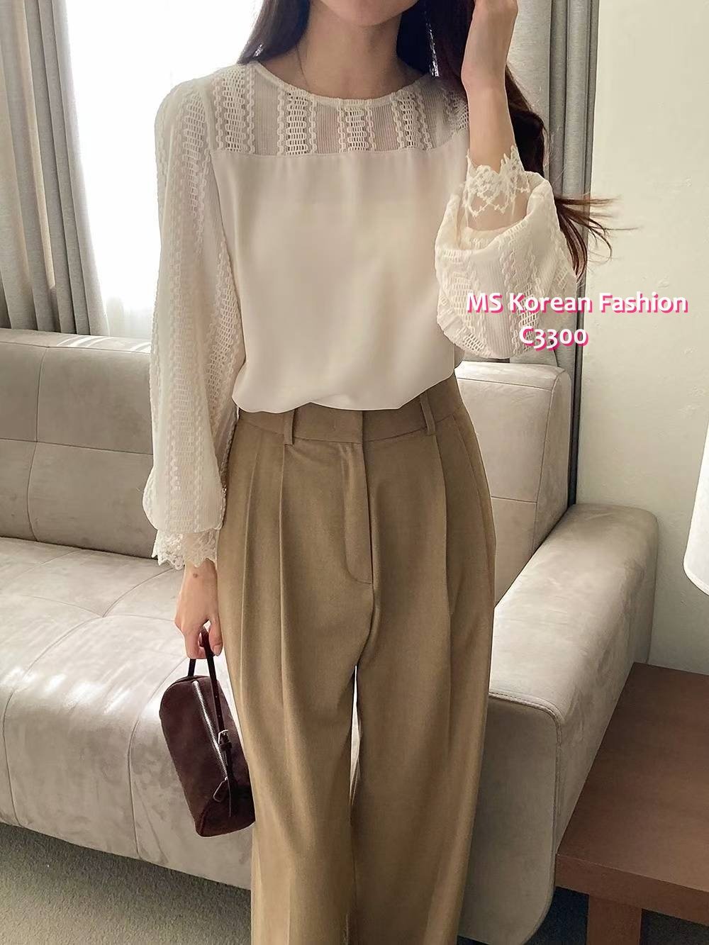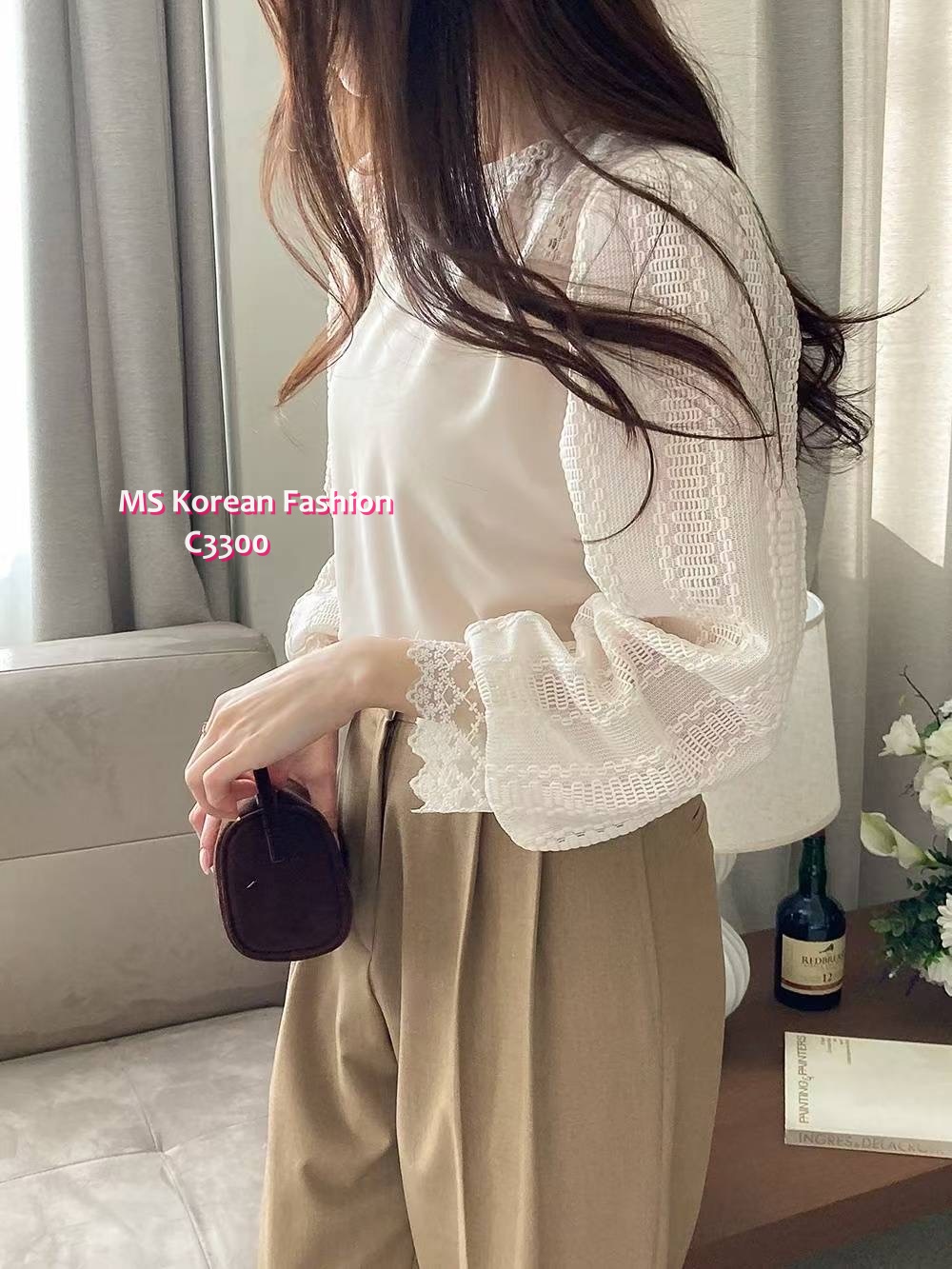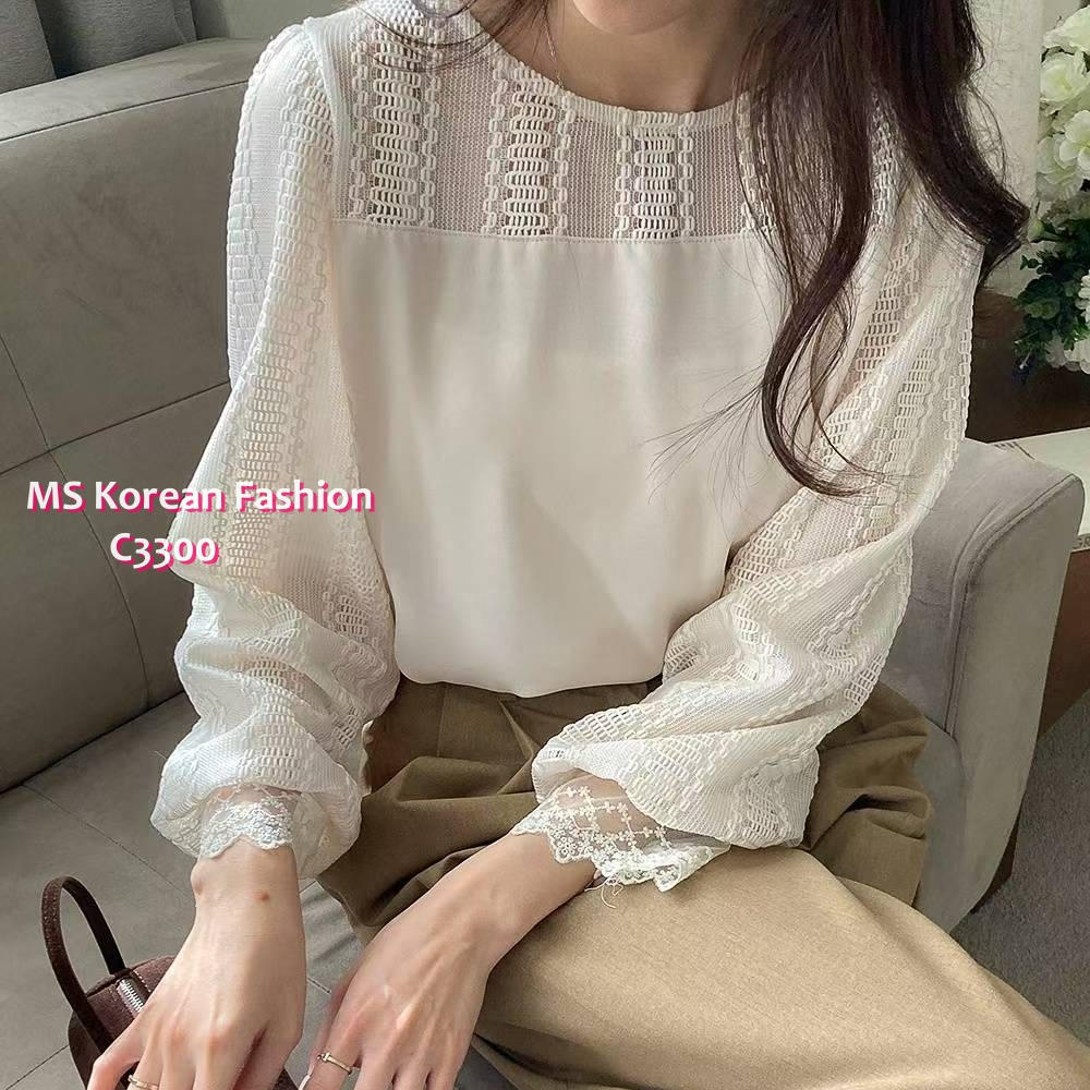 [訂貨約7-10個工作天] 💰💞Happy Price: $209 靚靚拼lace top✨ 袖位同肩位拼lace pattern好elegant 清清地幾好襯😻 斯文或casual look都carry到 米白、黑 2色 尺寸 胸39"/長23" 📫1件加$15包順豐站/自助櫃,2件包順豐(順豐站/自助櫃/工商/住宅) 📱查詢及Order可Inbox或Whatsapp 6317 3061