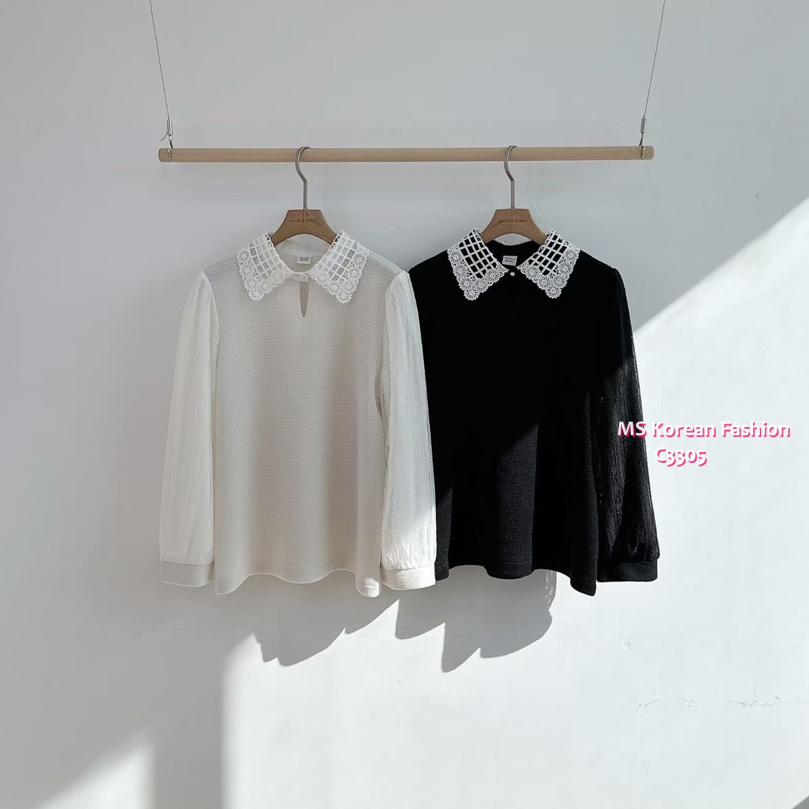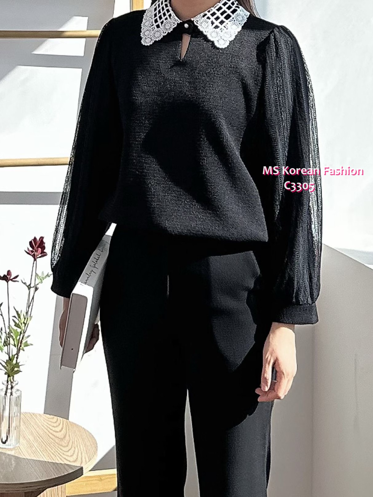 [訂貨約7-10個工作天] 💰💞Happy Price: $279 呢款top好elegant呀 lace領設計夠晒吸👀 兩邊袖外面加左層透紗有睇頭🥰 斯文或casual look都carry到👍👍 白、黑 2色 尺寸 胸42"/長24" 📫1件加$15包順豐站/自助櫃,2件包順豐(順豐站/自助櫃/工商/住宅) 📱查詢及Order可Inbox或Whatsapp 6317 3061