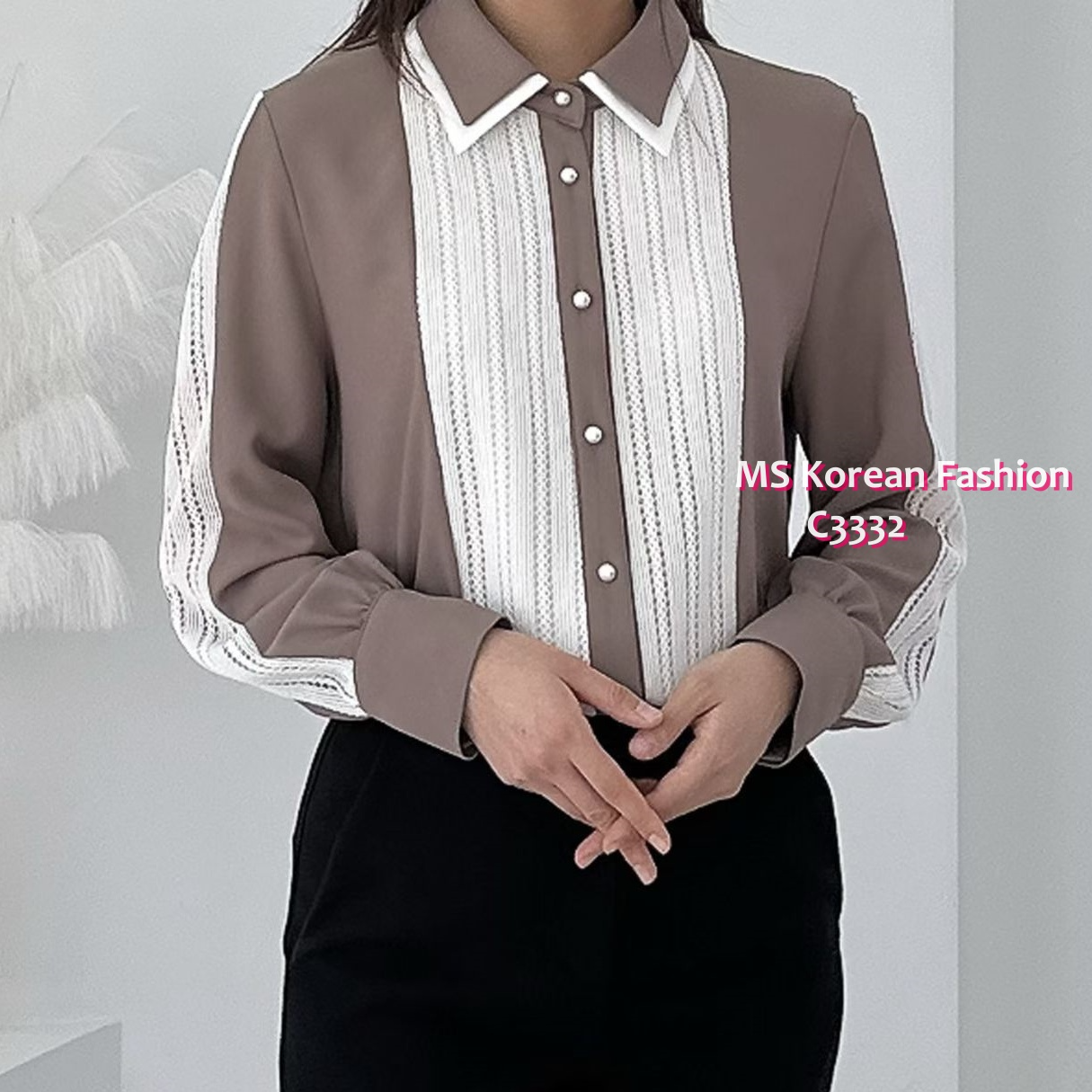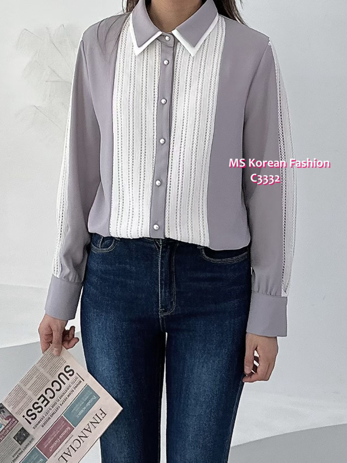 [訂貨約7-10個工作天] 💰💞Happy Price: $269 高質雪紡靚料拼通花恤😎 衫身同兩邊袖加左通花pattern巧令令🌷 雙層拼色領有detail 斯文或casual look都carry到👍 杏、灰、黑 3色 尺寸 胸42"/長24" 📫1件加$15包順豐站/自助櫃,2件包順豐(順豐站/自助櫃/工商/住宅) 📱查詢及Order可Inbox或Whatsapp 6317 3061