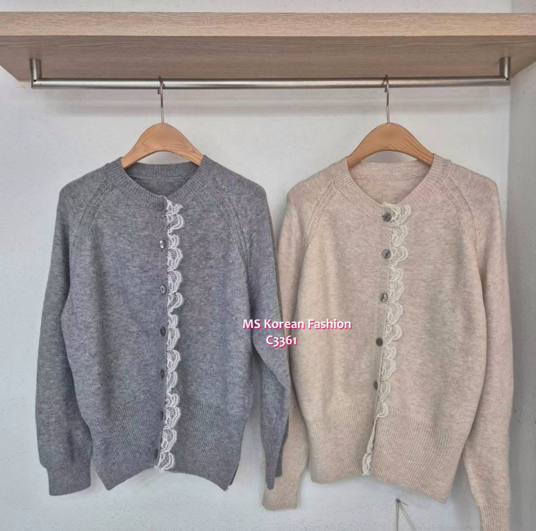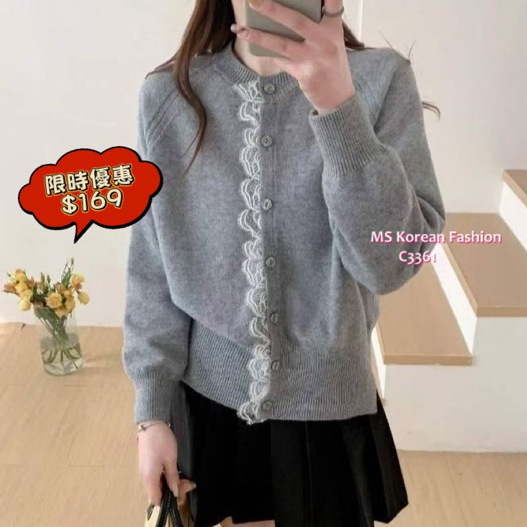 [訂貨約7-10個工作天] 💰💨快閃𝟰𝟴小時優惠: $𝟭𝟲𝟵💨[原價$199] ⏰優惠𝟮𝟬/𝟭𝟭 𝟮𝗽𝗺結束 ⏰ 勁靚波浪lace邊針織外套🥰 簡約得黎又有款 襯裙襯褲都好睇👍 灰、杏 2色 尺寸 胸43"/長25.5" 📫1件加$15包順豐站/自助櫃,2件包順豐(順豐站/自助櫃/工商/住宅) 📱查詢及Order可Inbox或Whatsapp 6317 3061
