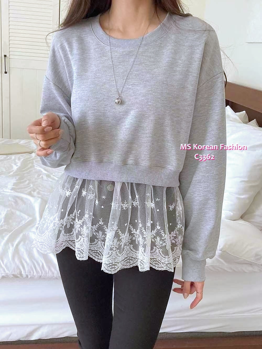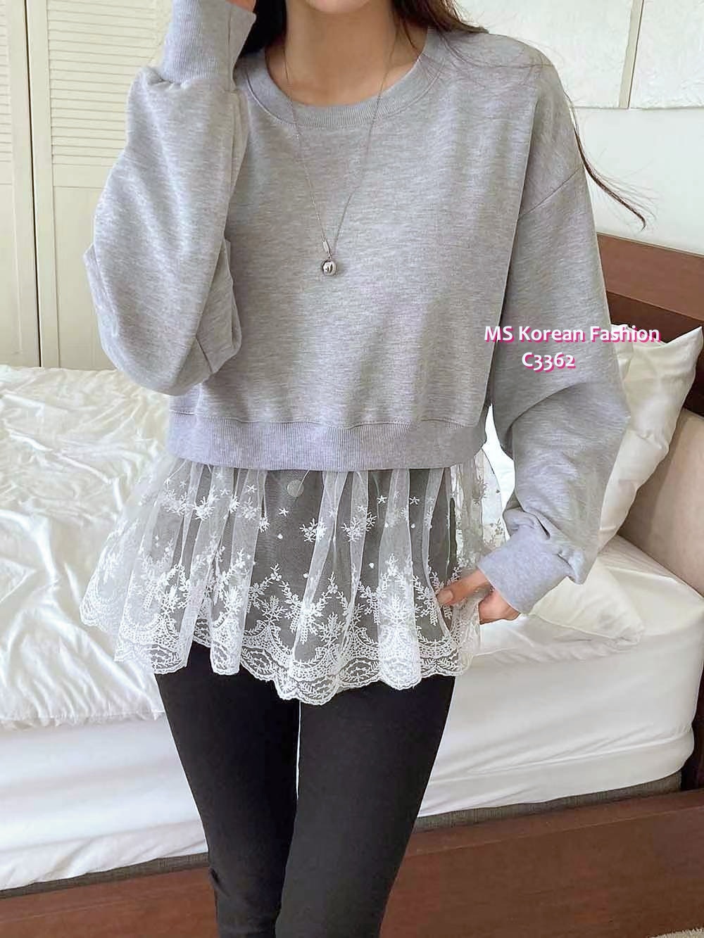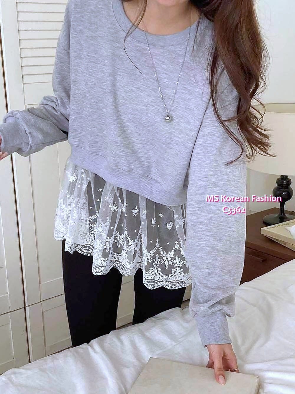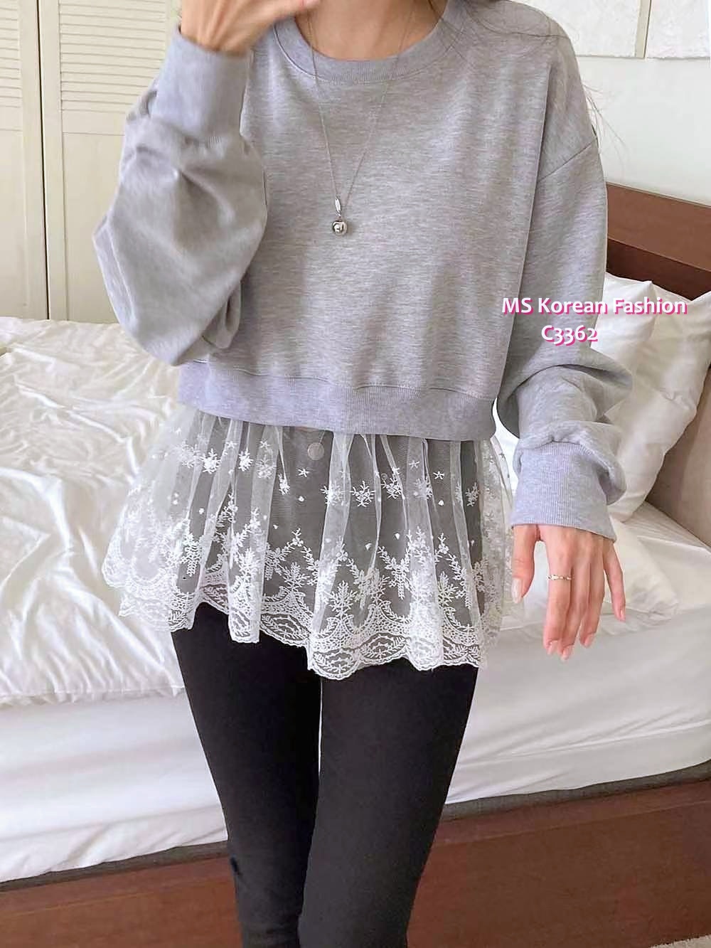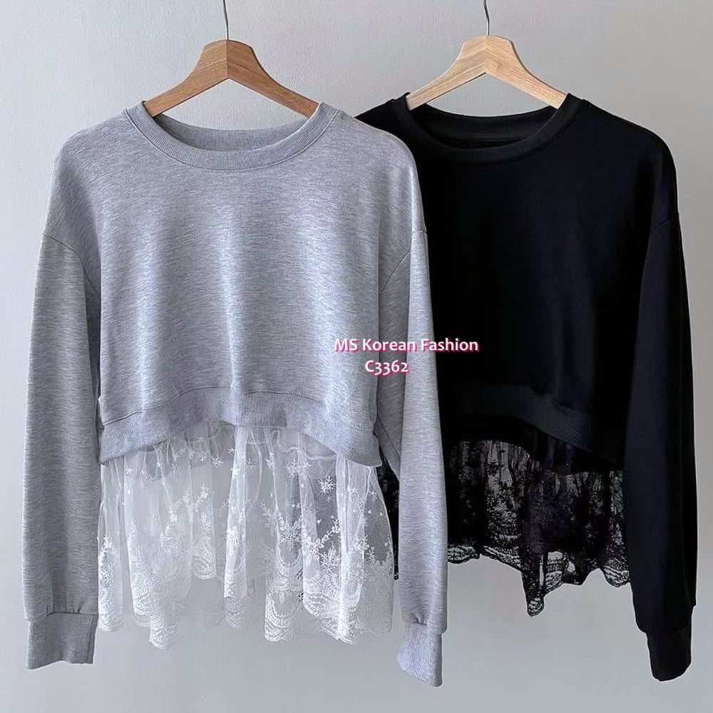 [訂貨約7-10個工作天] 💰💜$189, $179 for vip 拼lace腳top🥰 casual得黎又帶點仙氣✨ lace位長長地遮到patpat 好似model咁簡單襯條slimcut褲已經好睇 斯文或casual look都carry到👍 灰、黑 2色 尺寸 胸43"/長25" 📫1件加$15包順豐站/自助櫃,2件包順豐(順豐站/自助櫃/工商/住宅) 📱查詢及Order可Inbox或Whatsapp 6317 3061