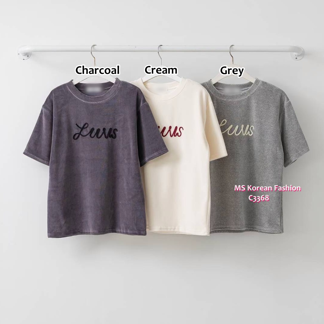[訂貨約7-10個工作天] 💰💨快閃𝟰𝟴小時優惠: $𝟭𝟮𝟵💨[原價$159] ⏰優惠𝟮𝟳/𝟭𝟭 𝟮𝗽𝗺結束 ⏰ 秋冬仲有短袖款出真係好少有✨ 呢款絲絨面料好舒服😎 扭繩字母設計 簡約有款 炭灰、米、淺灰 3色 尺寸 胸39"/長24" 📫1件加$15包順豐站/自助櫃,2件包順豐(順豐站/自助櫃/工商/住宅) 📱查詢及Order可Inbox或Whatsapp 6317 3061