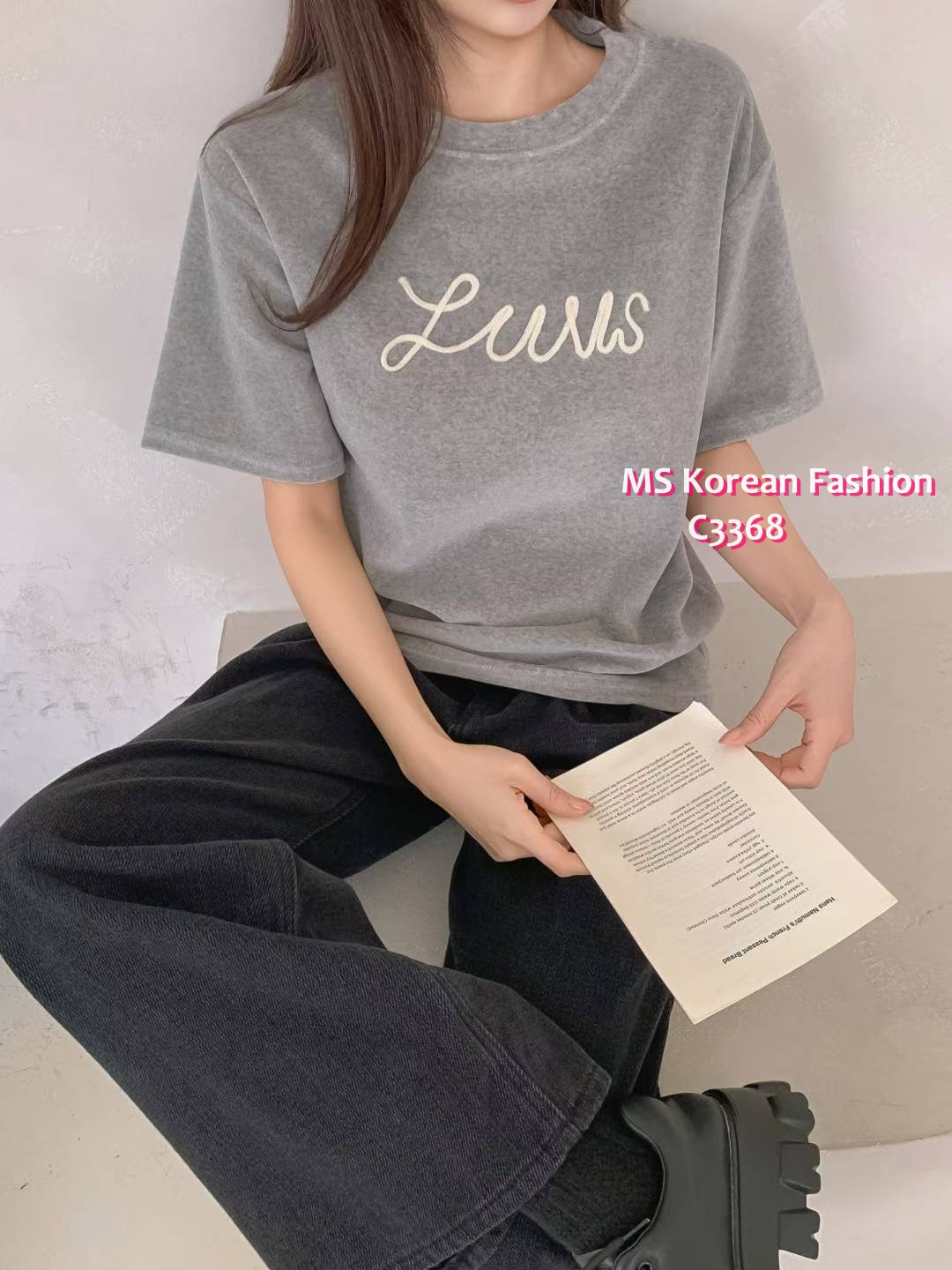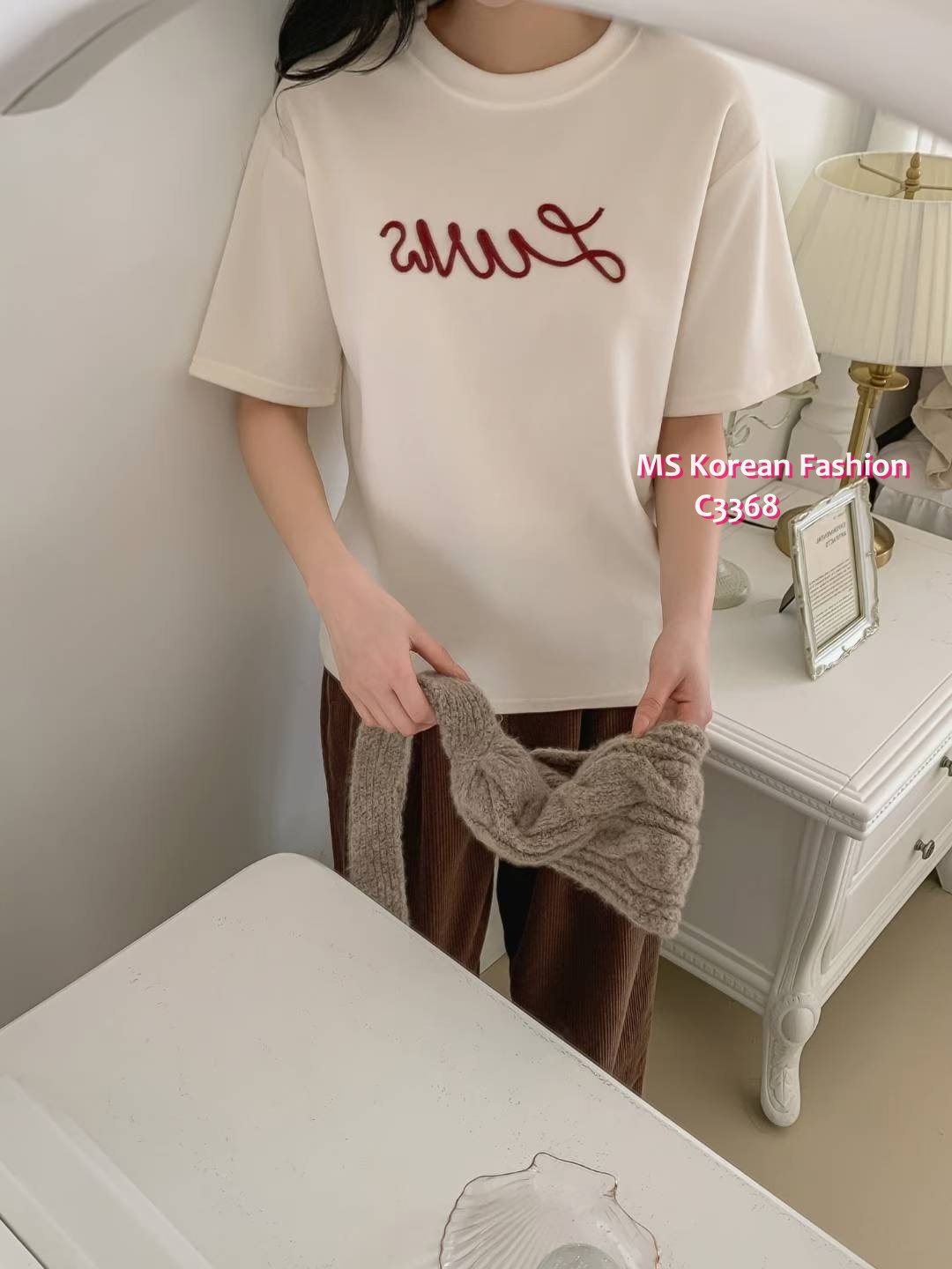 C3368 韓國🇰🇷扭繩字母tee