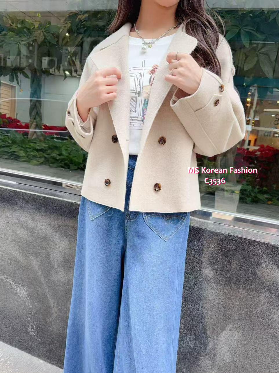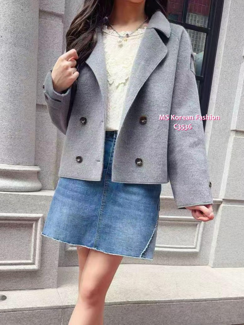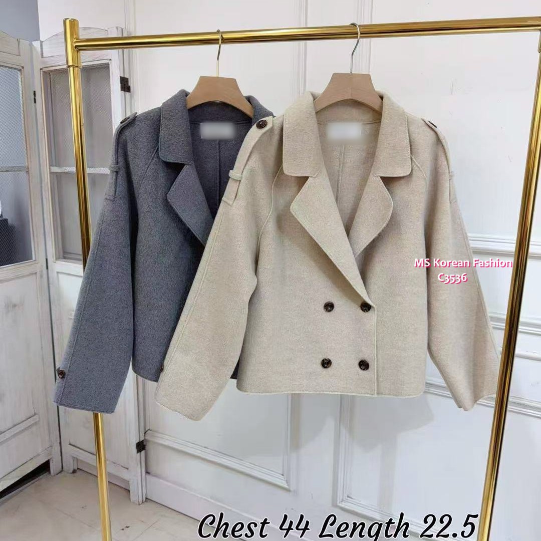 C3436 韓國🇰🇷孖襟短身絨褸