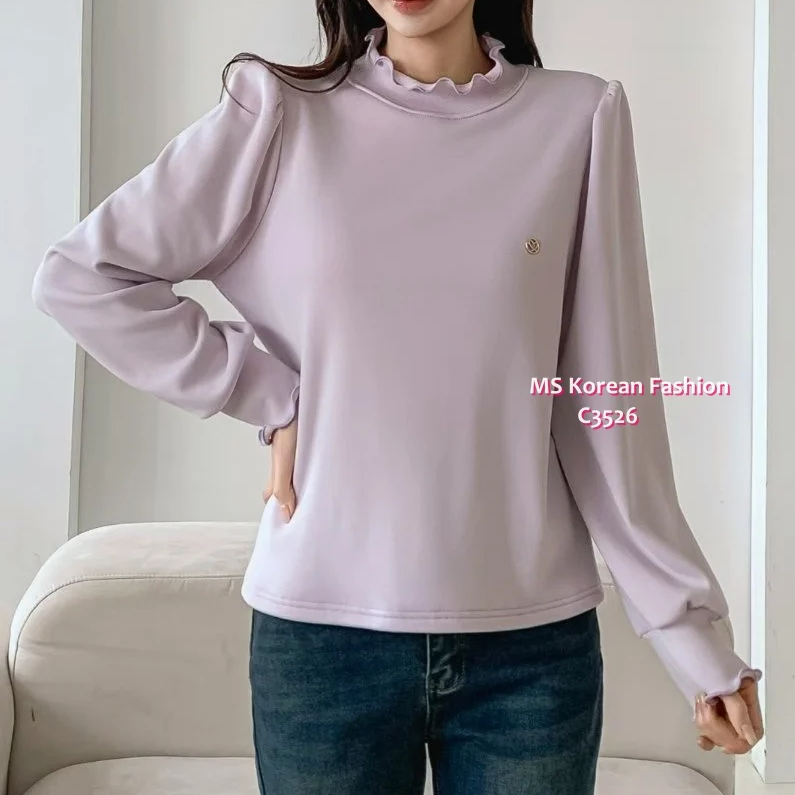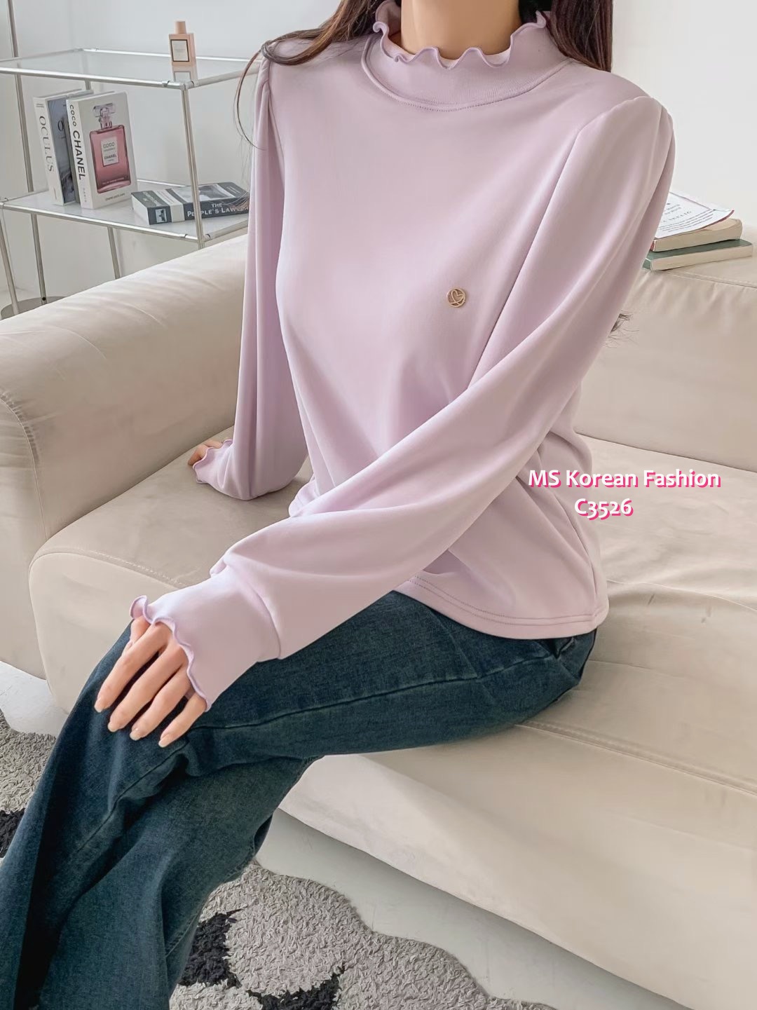 C3526 韓國🇰🇷淨色荷葉邊毛底top
