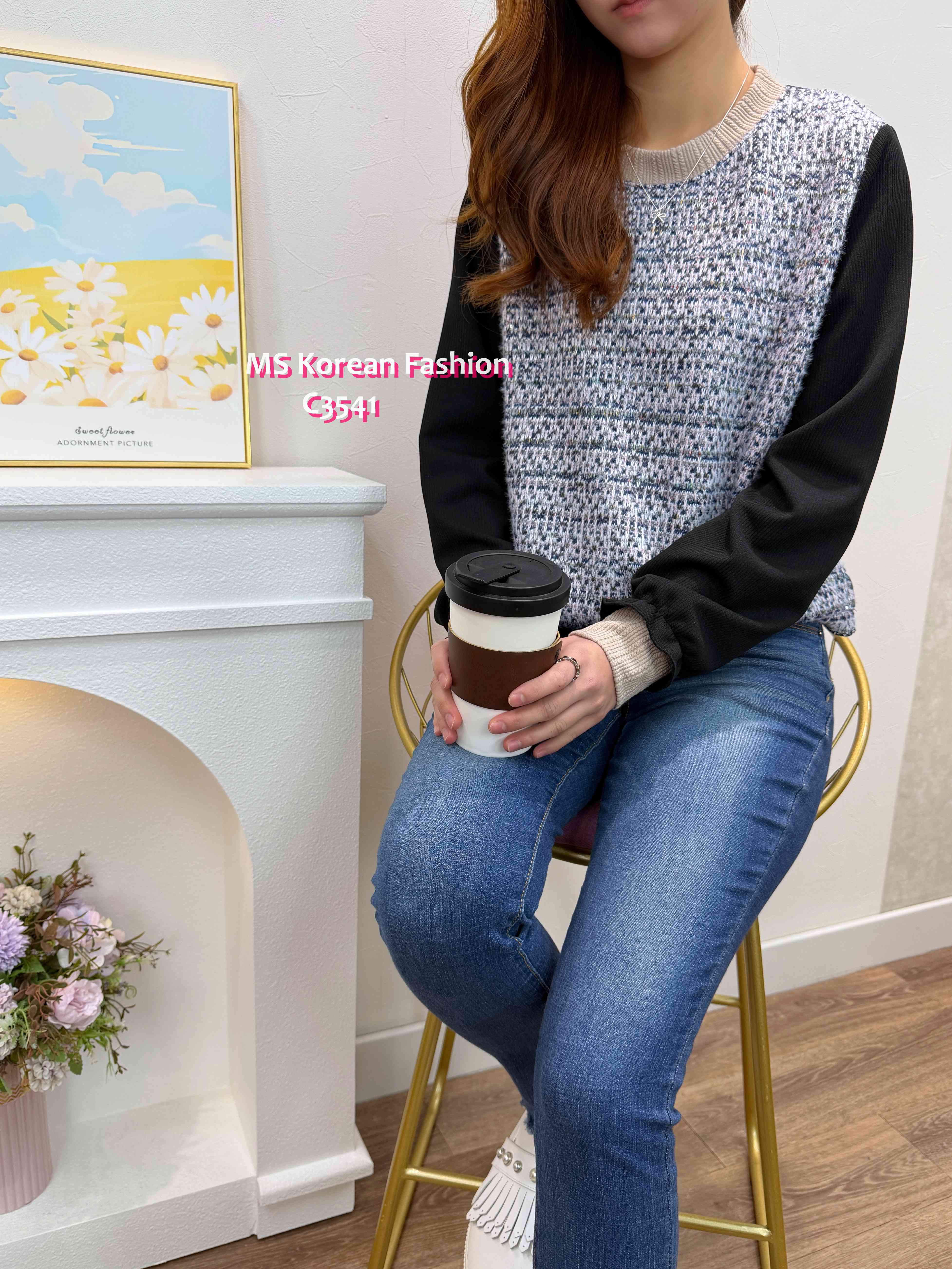 C3541 韓國🇰🇷拼袖top