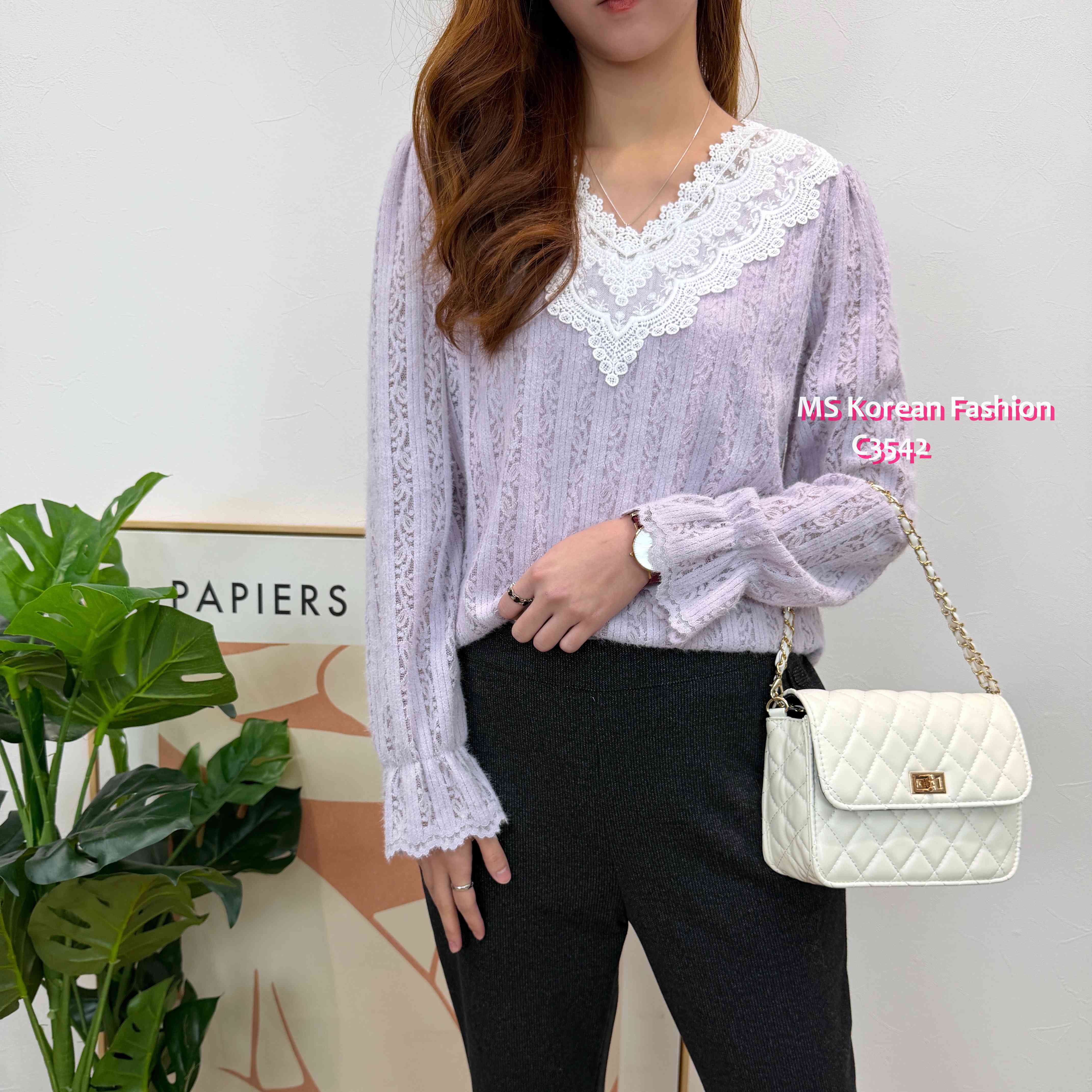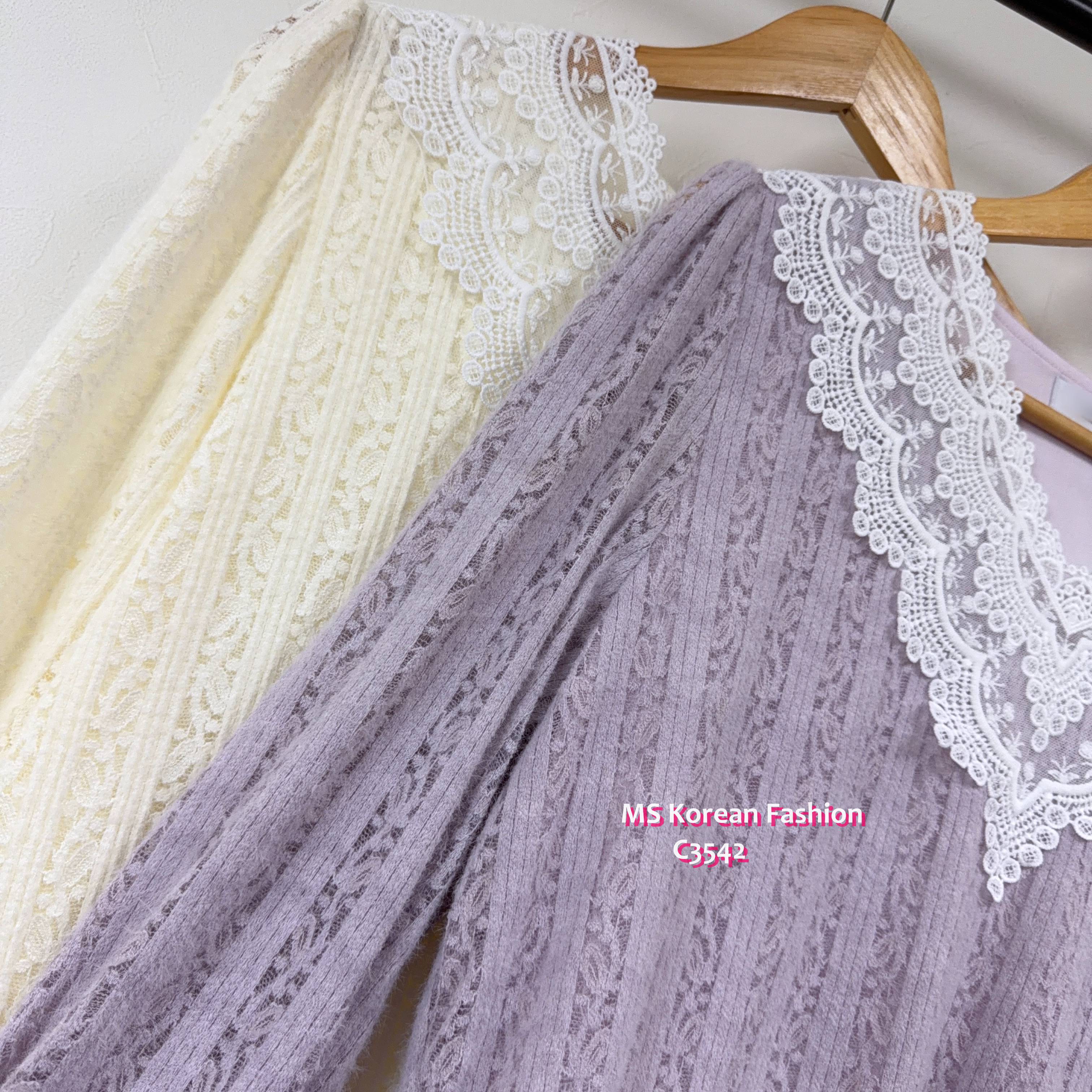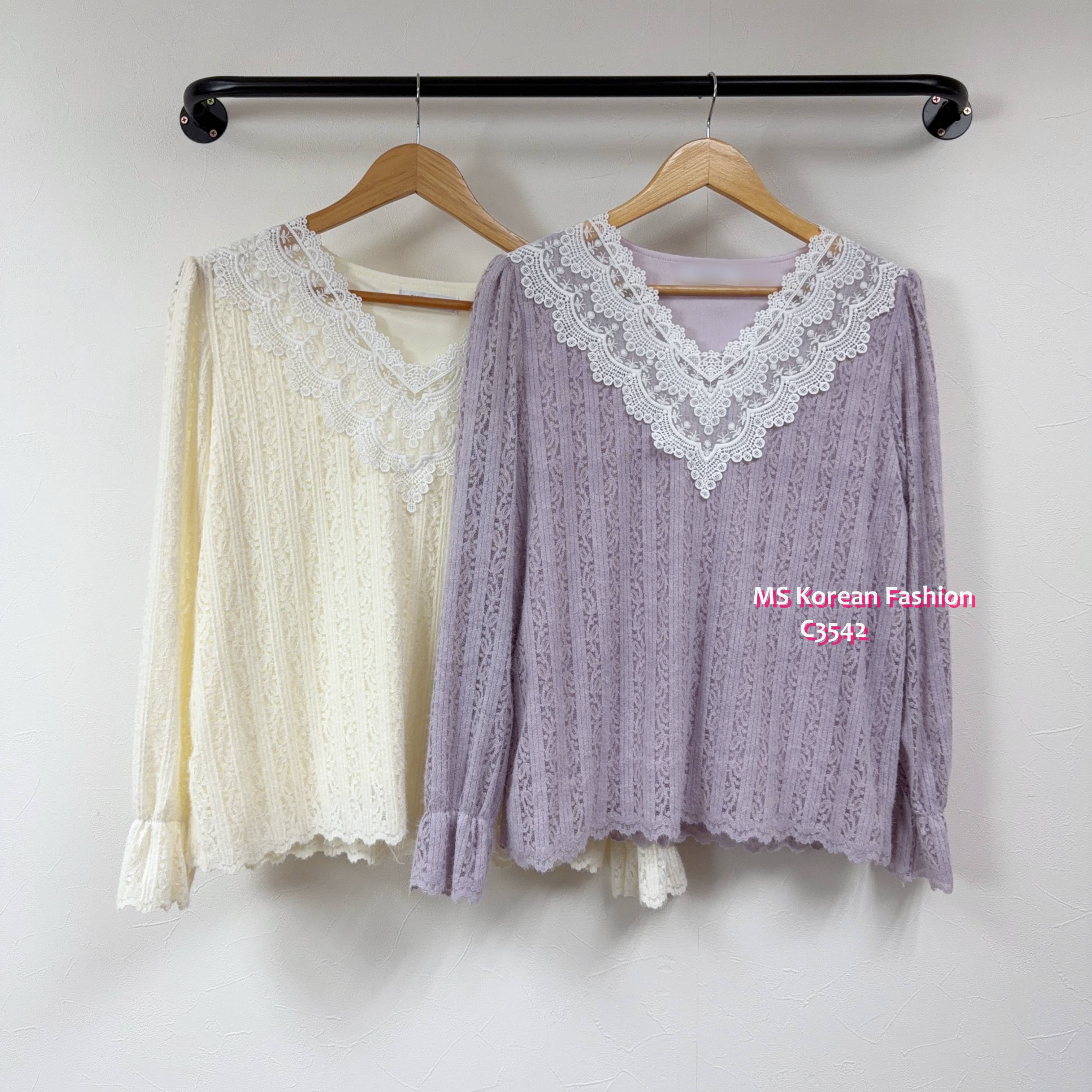 [訂貨約7-10個工作天] 💰💞Happy Price: $179 V領lace top lace pattern巧令令 衫身有內里唔駛另外打底架👍 斯文或casual look都carry到🥳 米白、紫 2色 尺寸 肩16"/胸40"/長24.5" 📫1件加$15包順豐站/自助櫃,2件包順豐(順豐站/自助櫃/工商/住宅) 📱查詢及Order可Inbox或Whatsapp 6317 3061