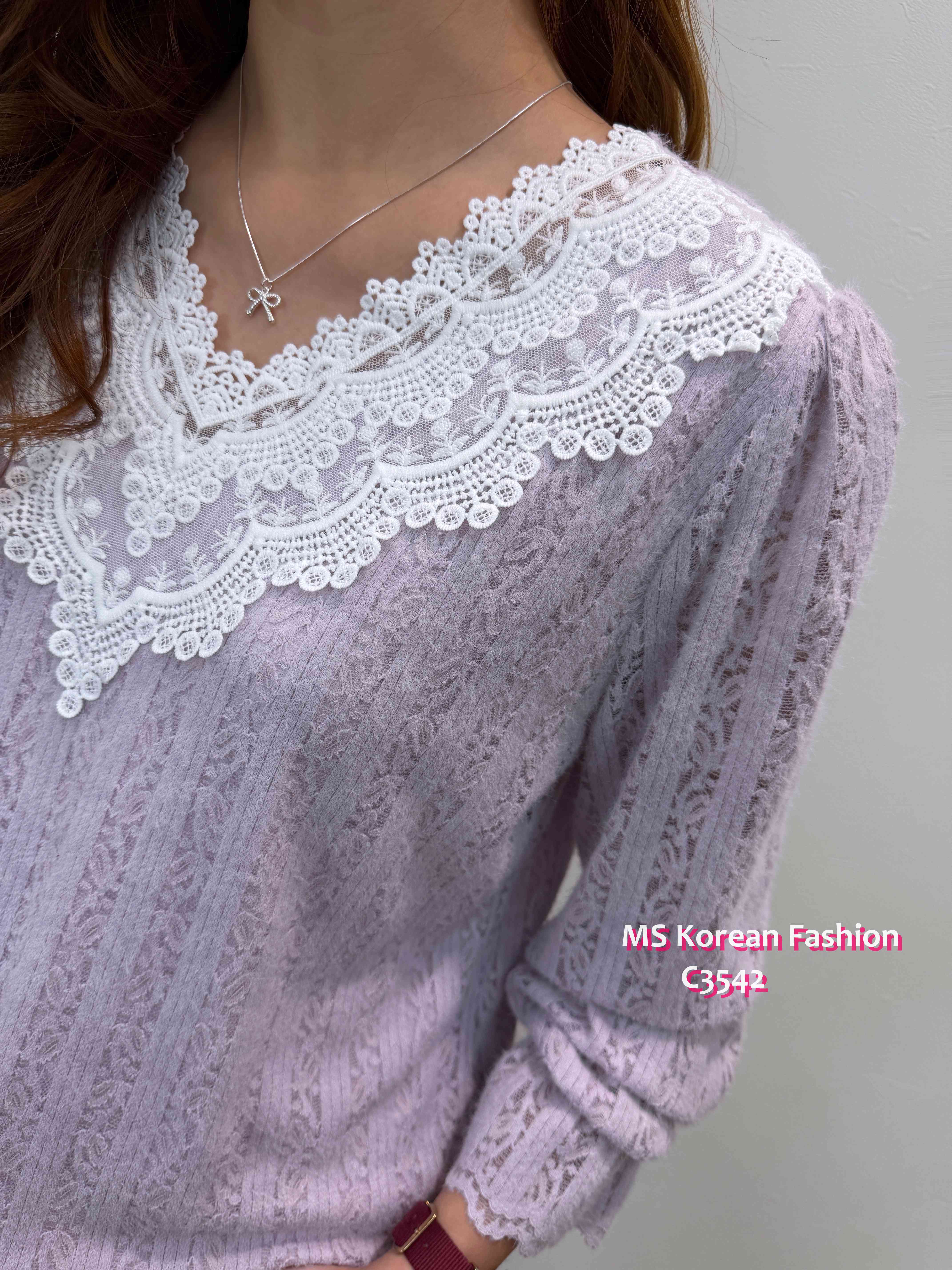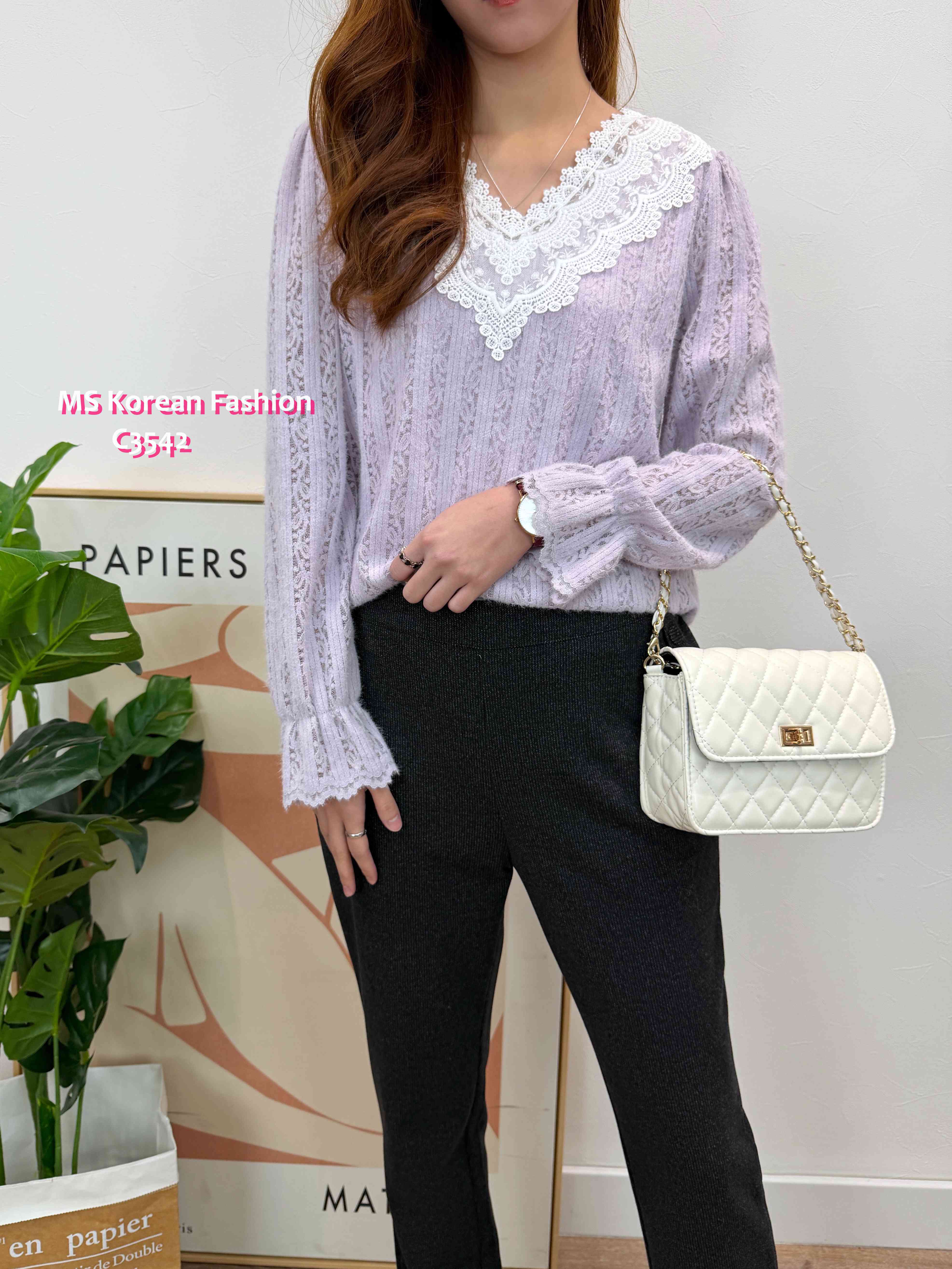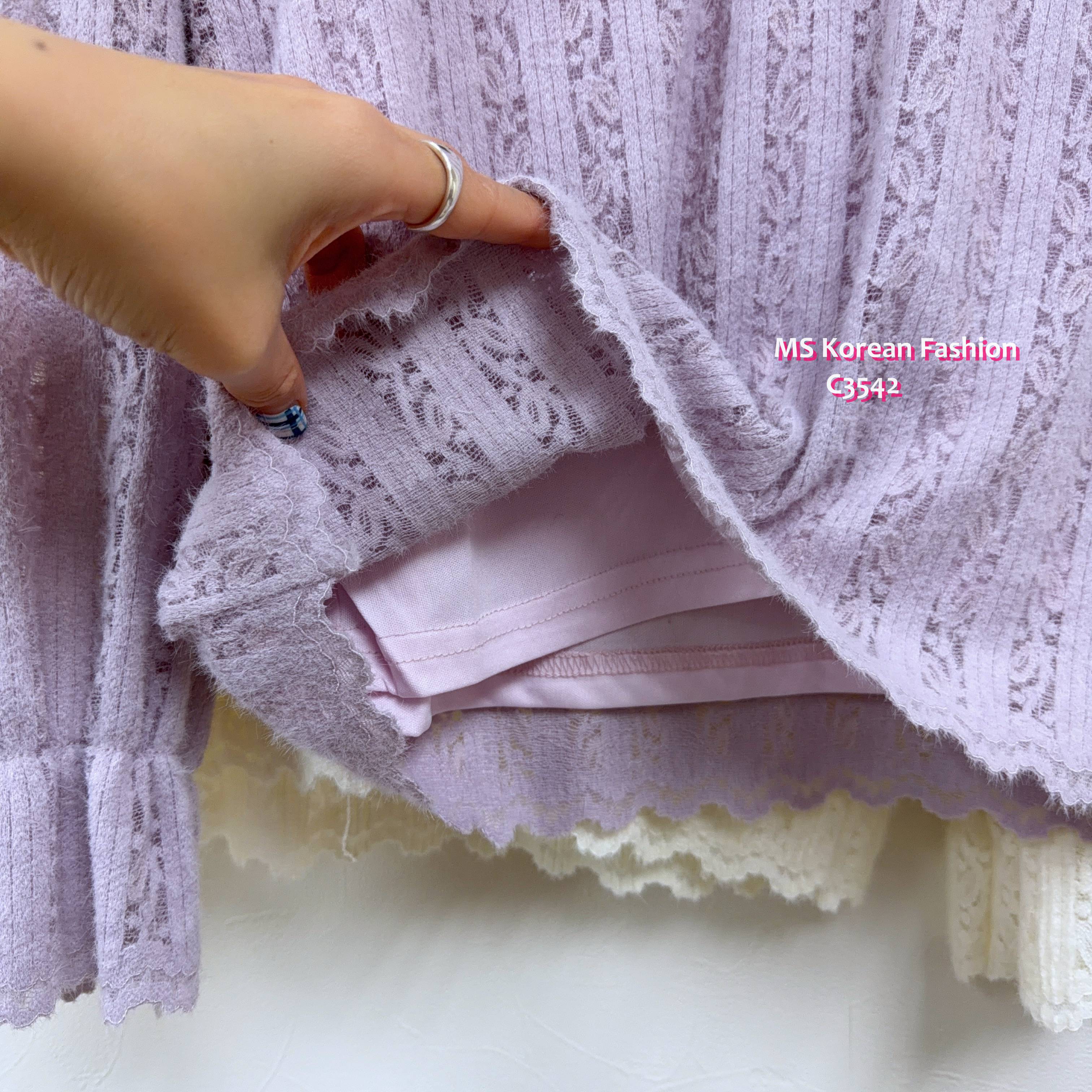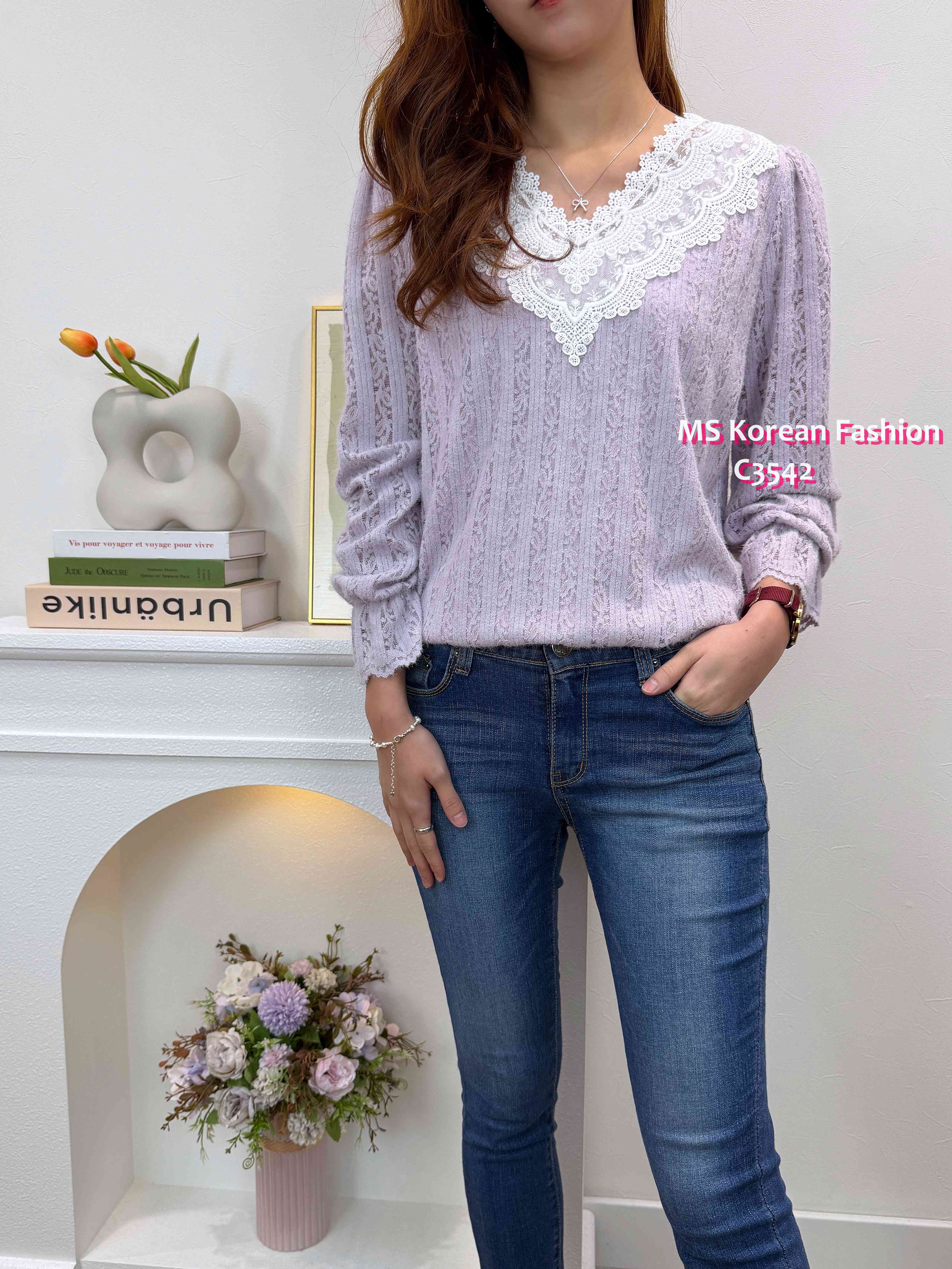 [訂貨約7-10個工作天] 💰💞Happy Price: $179 V領lace top lace pattern巧令令 衫身有內里唔駛另外打底架👍 斯文或casual look都carry到🥳 米白、紫 2色 尺寸 肩16"/胸40"/長24.5" 📫1件加$15包順豐站/自助櫃,2件包順豐(順豐站/自助櫃/工商/住宅) 📱查詢及Order可Inbox或Whatsapp 6317 3061
