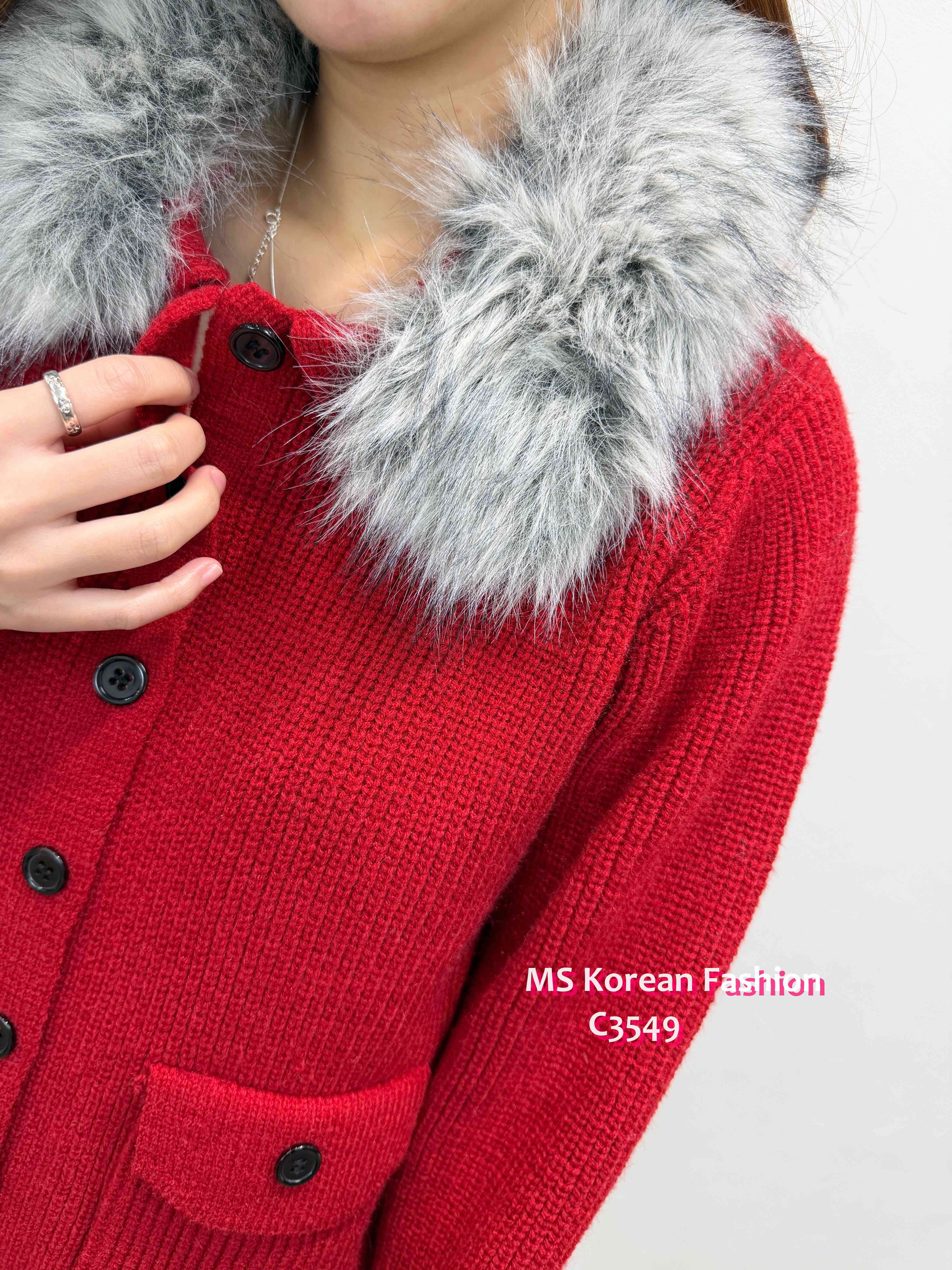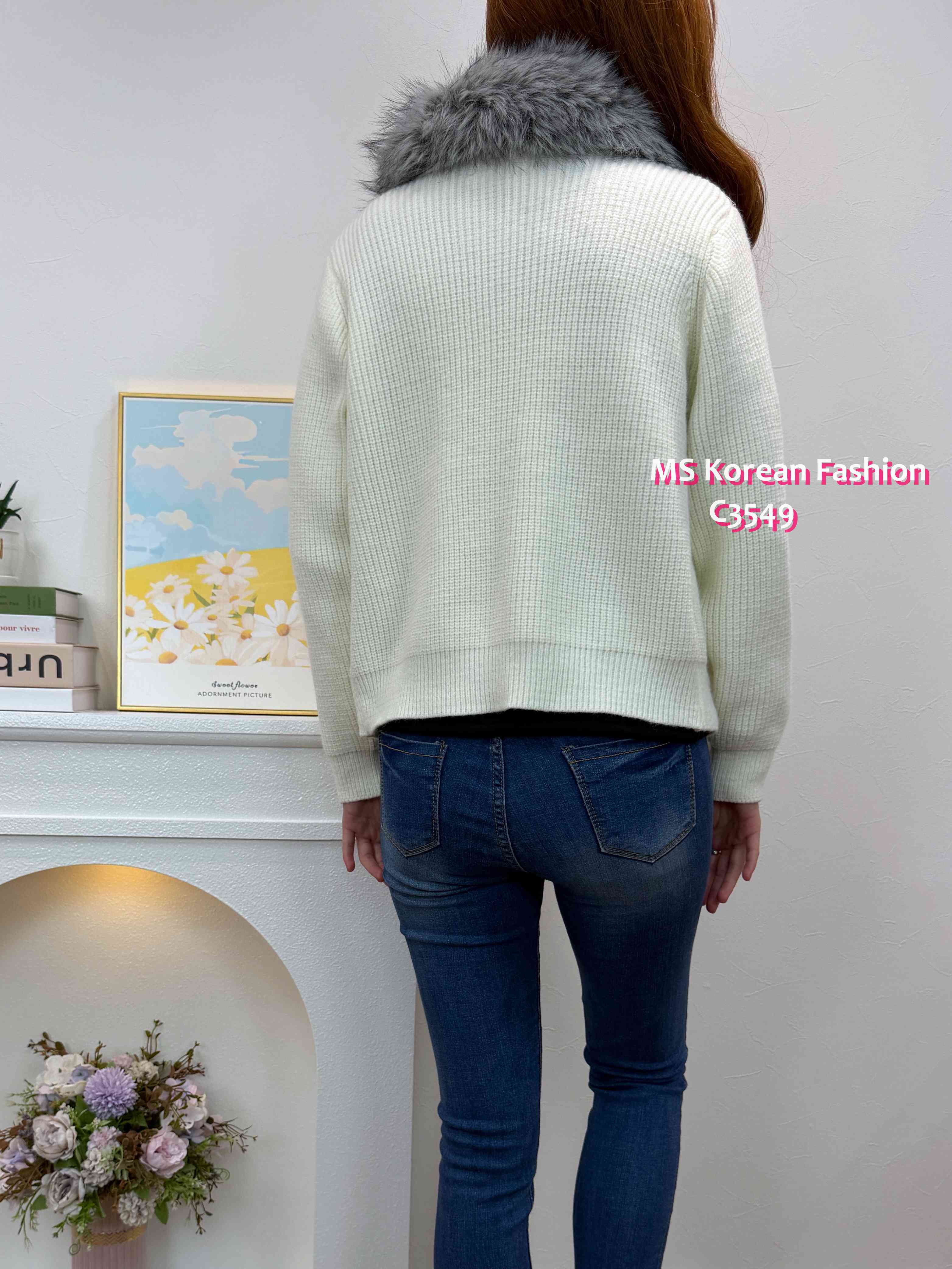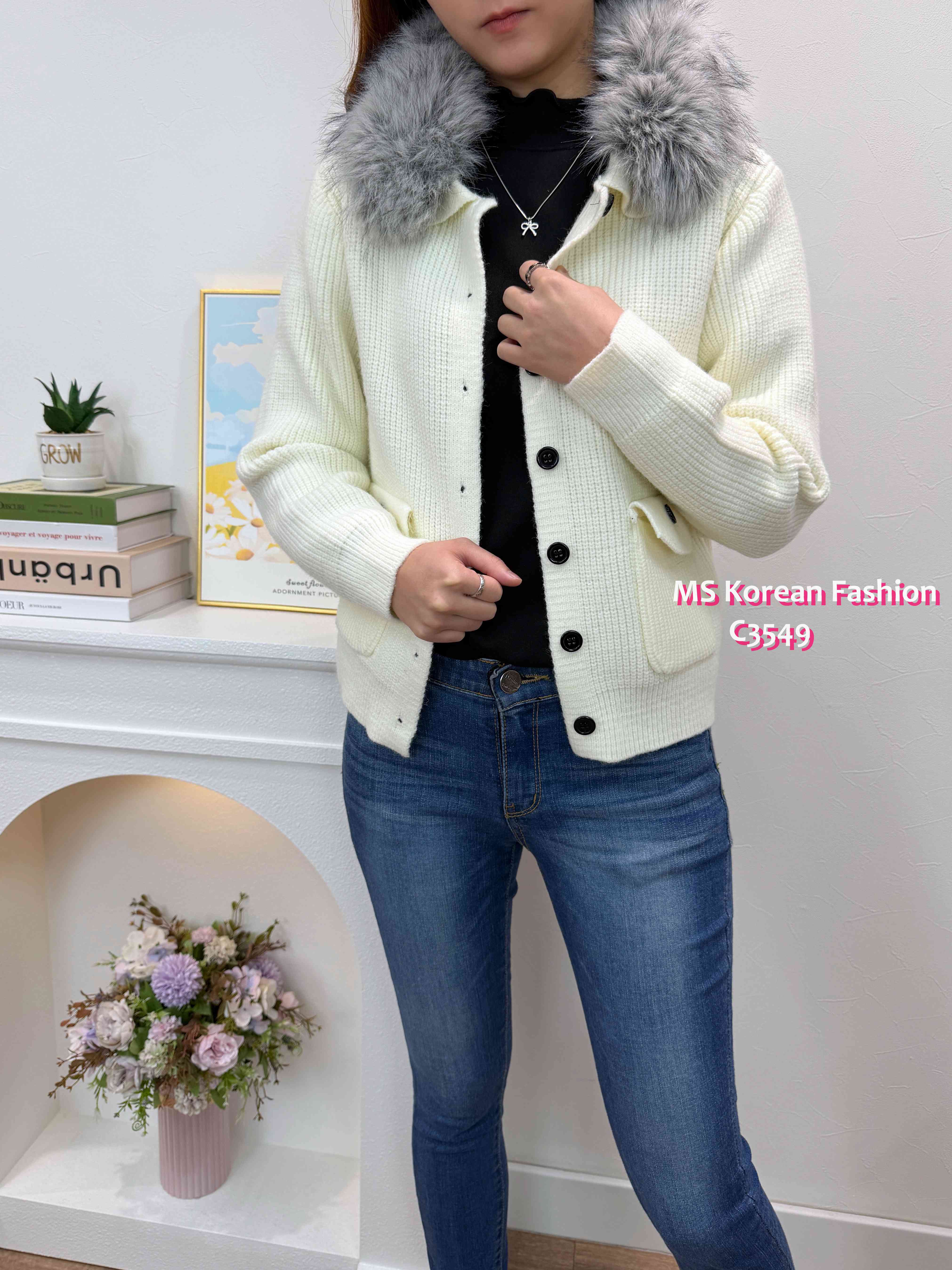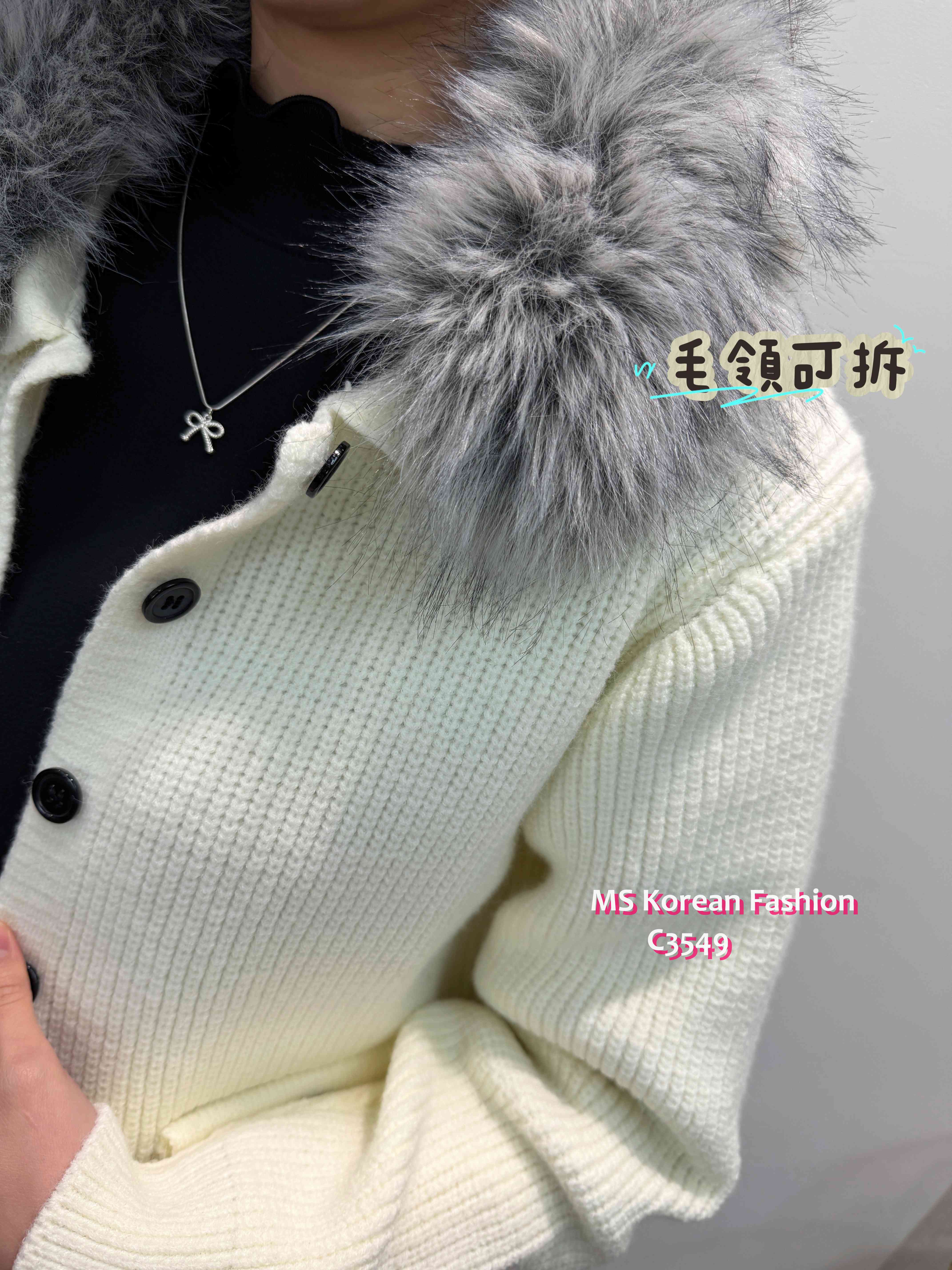 C3549 韓國🇰🇷淨色毛領冷外套