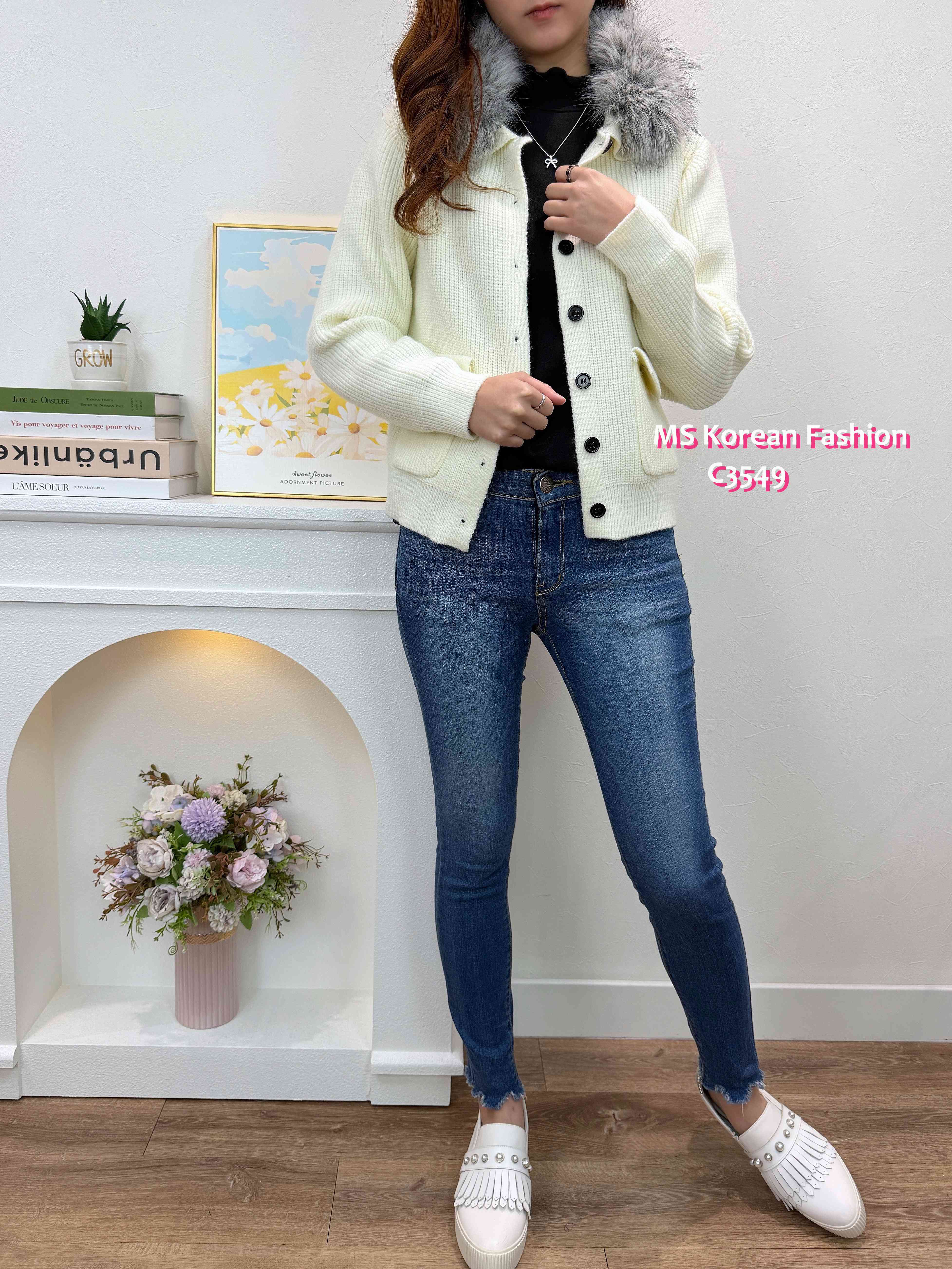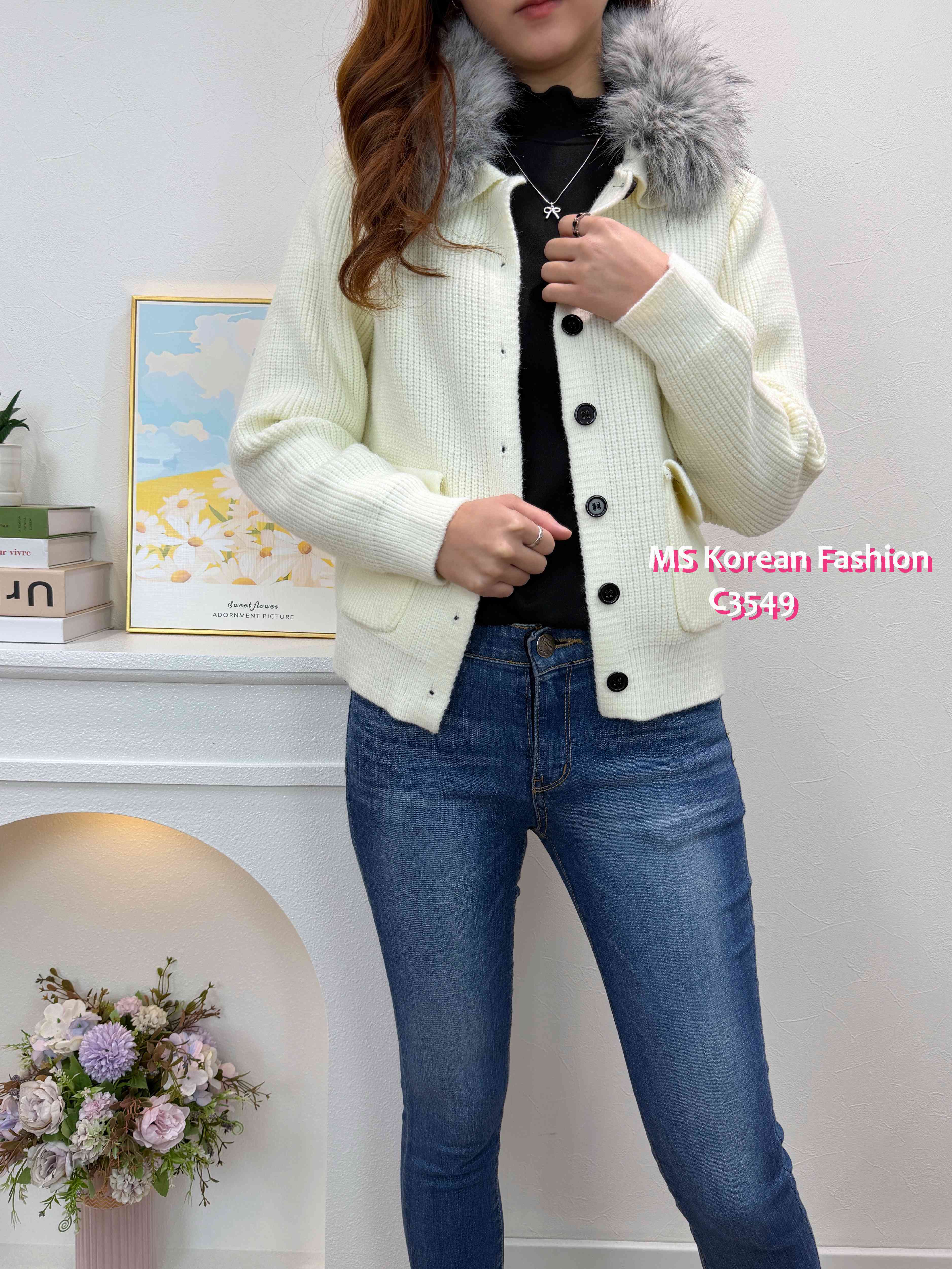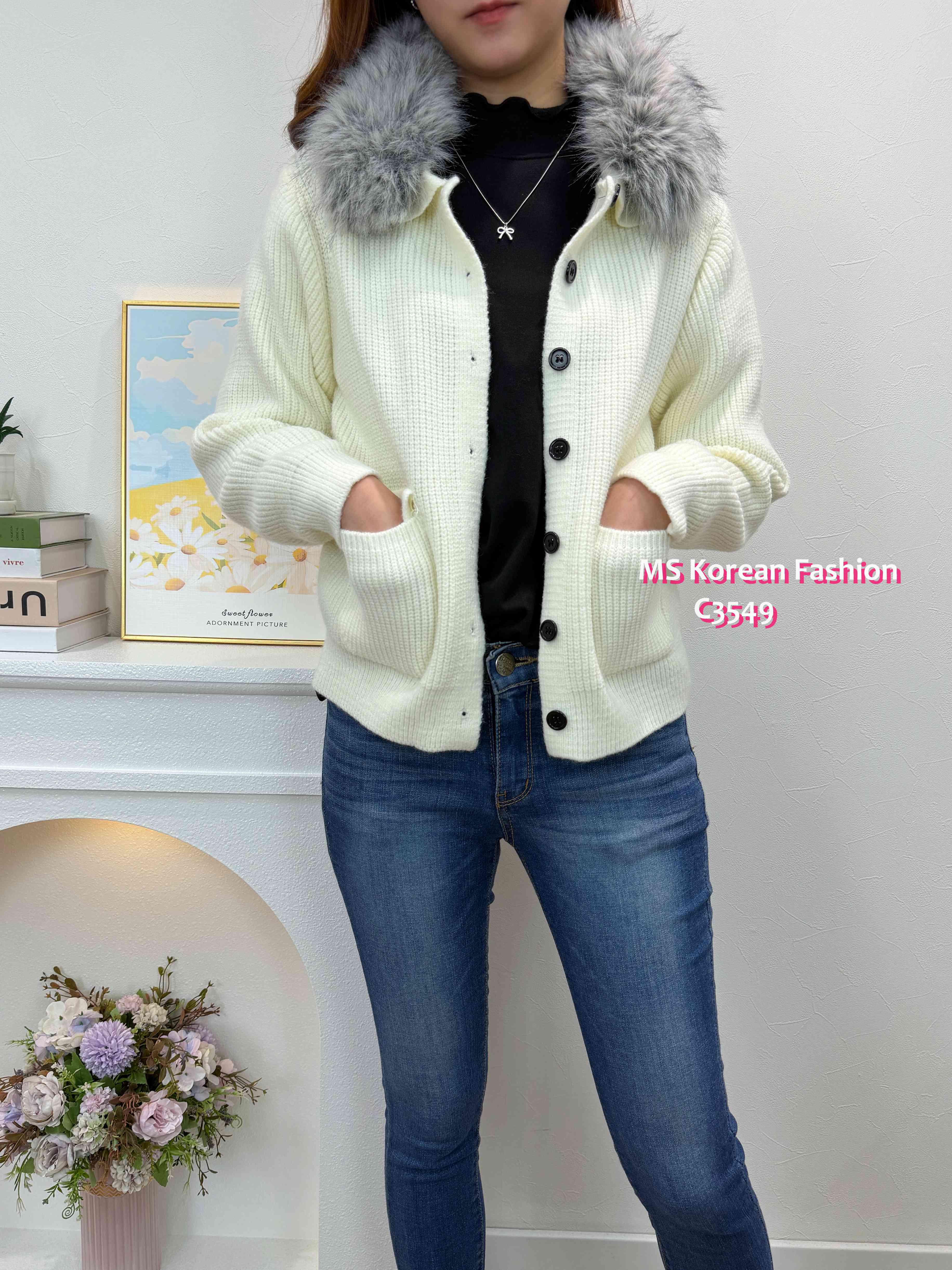 C3549 韓國🇰🇷淨色毛領冷外套