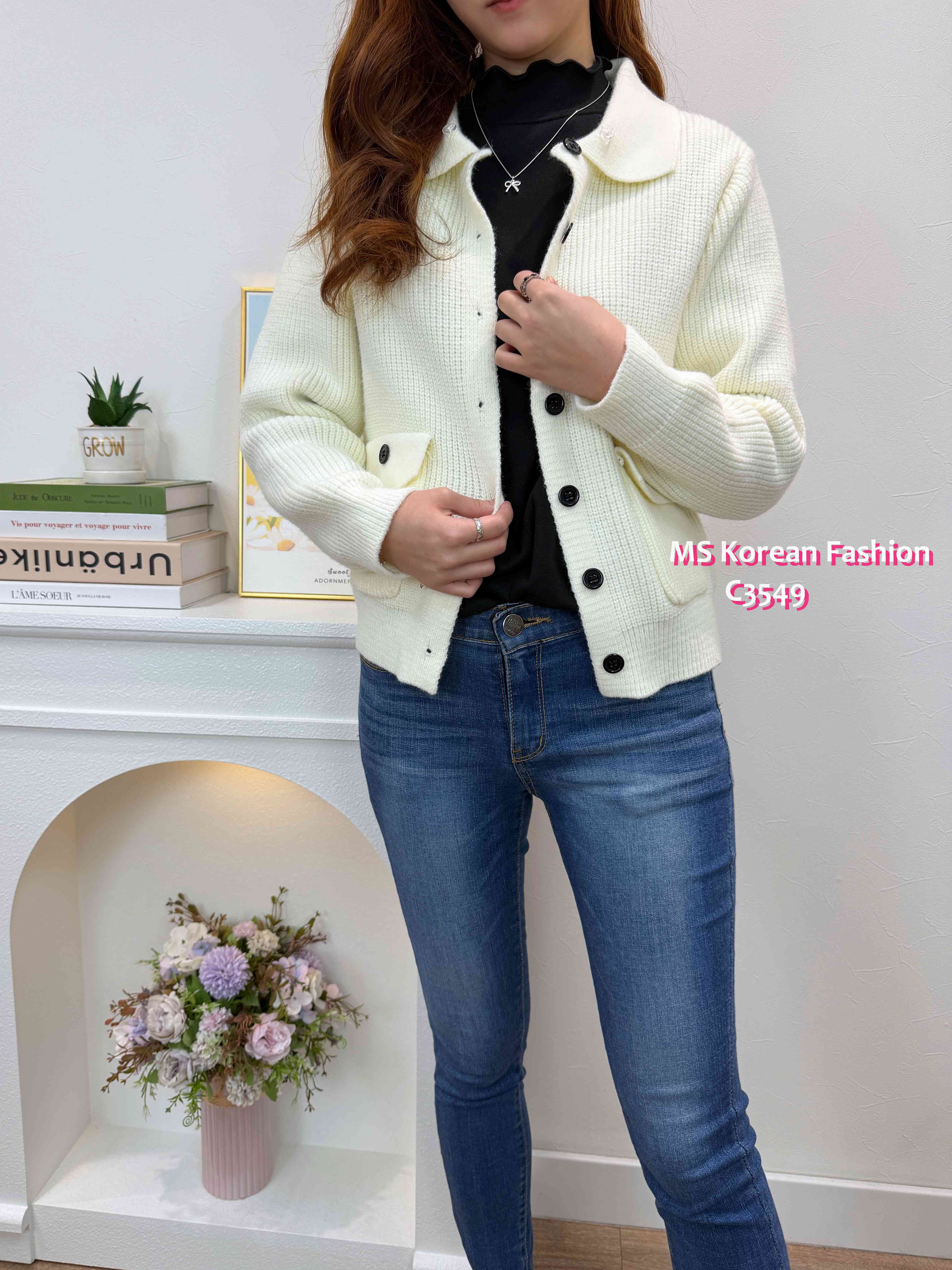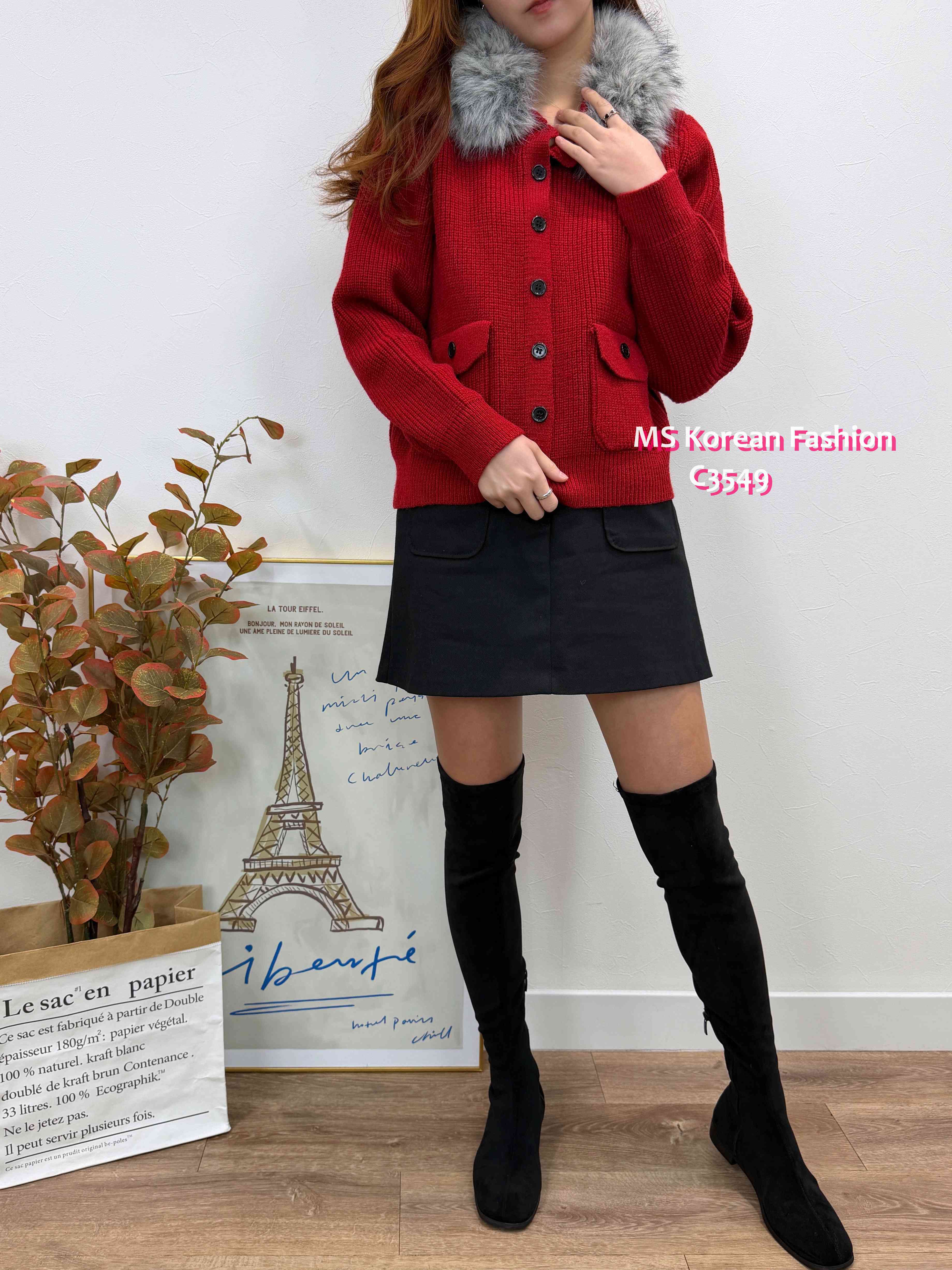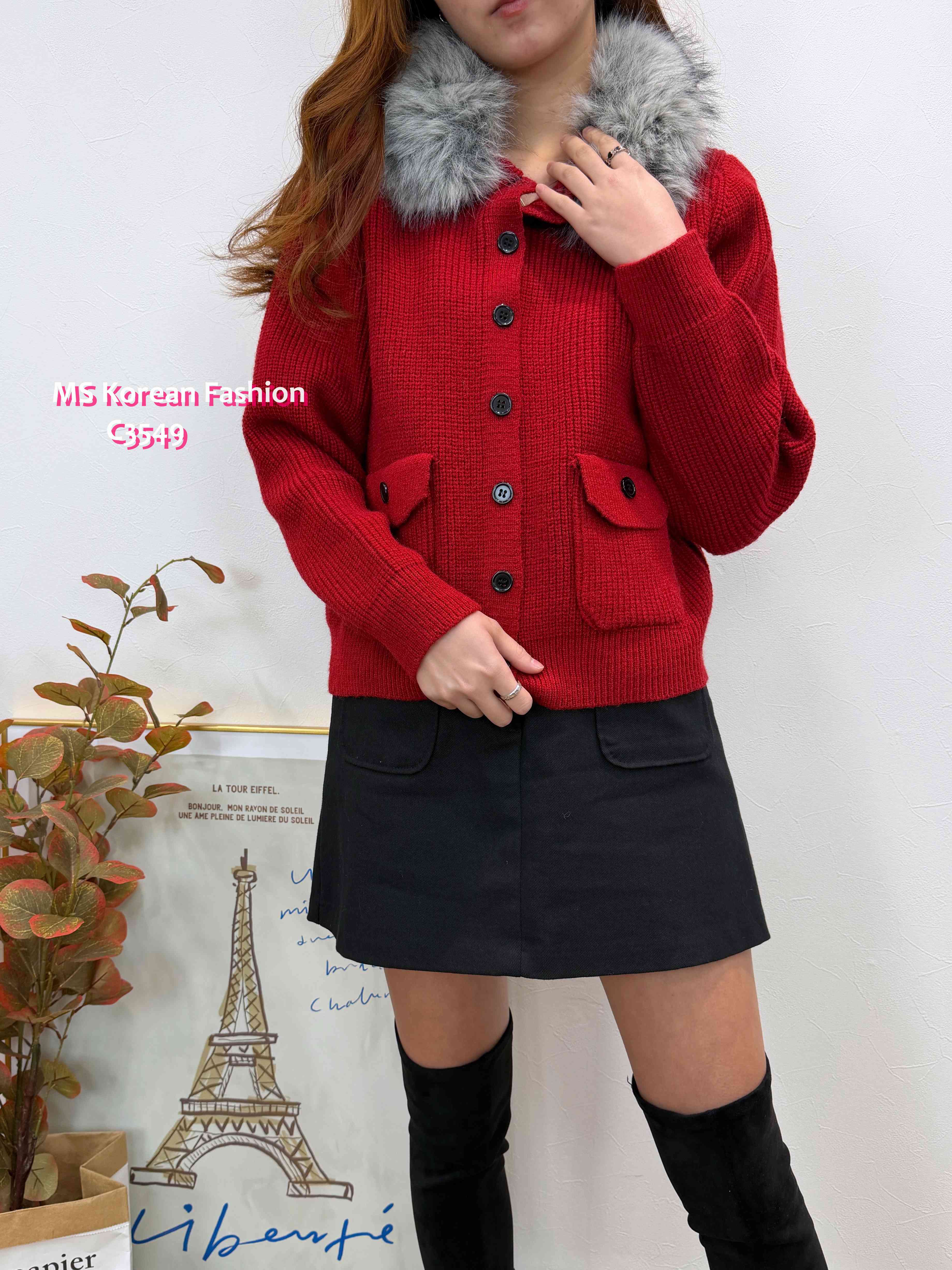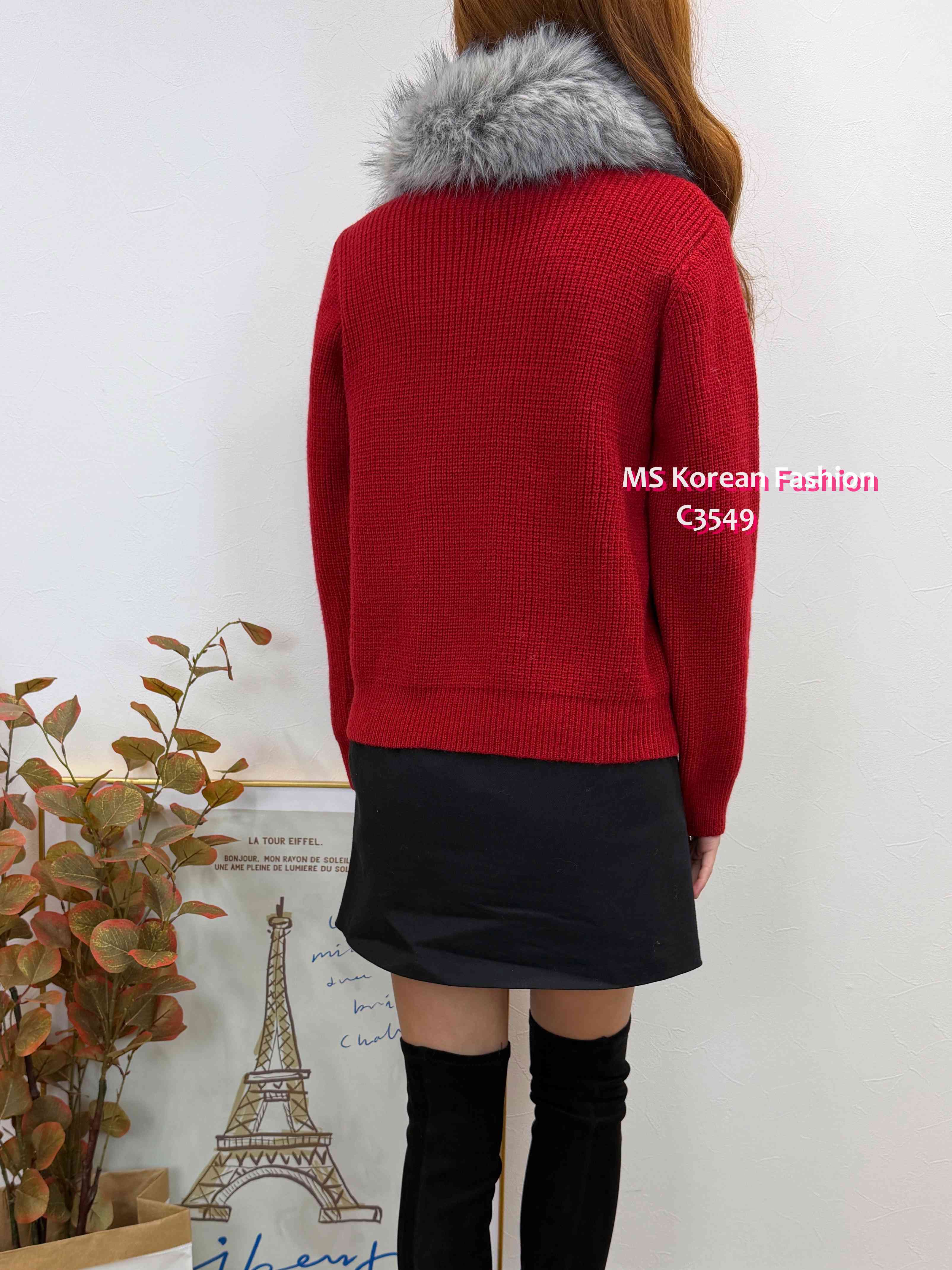C3549 韓國🇰🇷淨色毛領冷外套