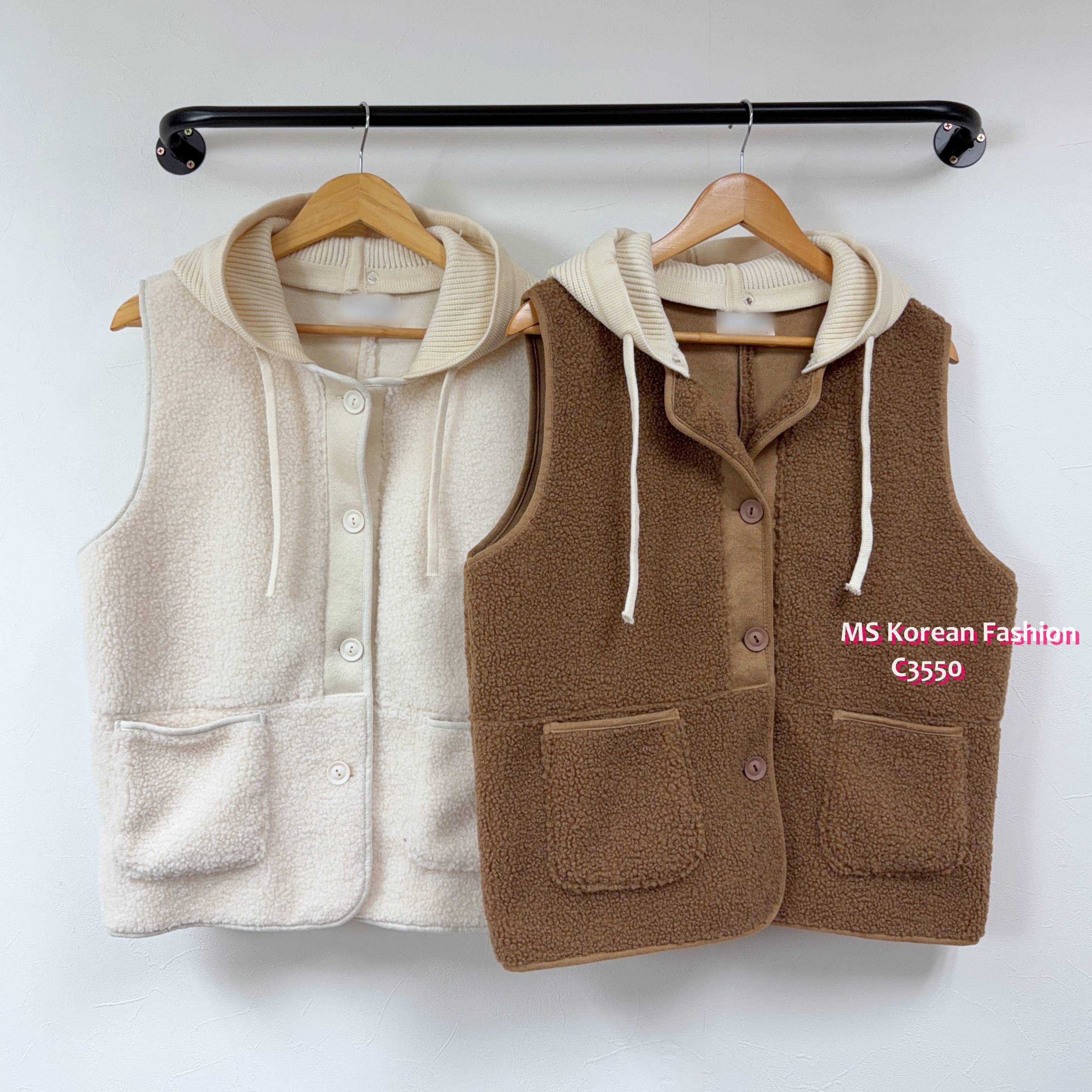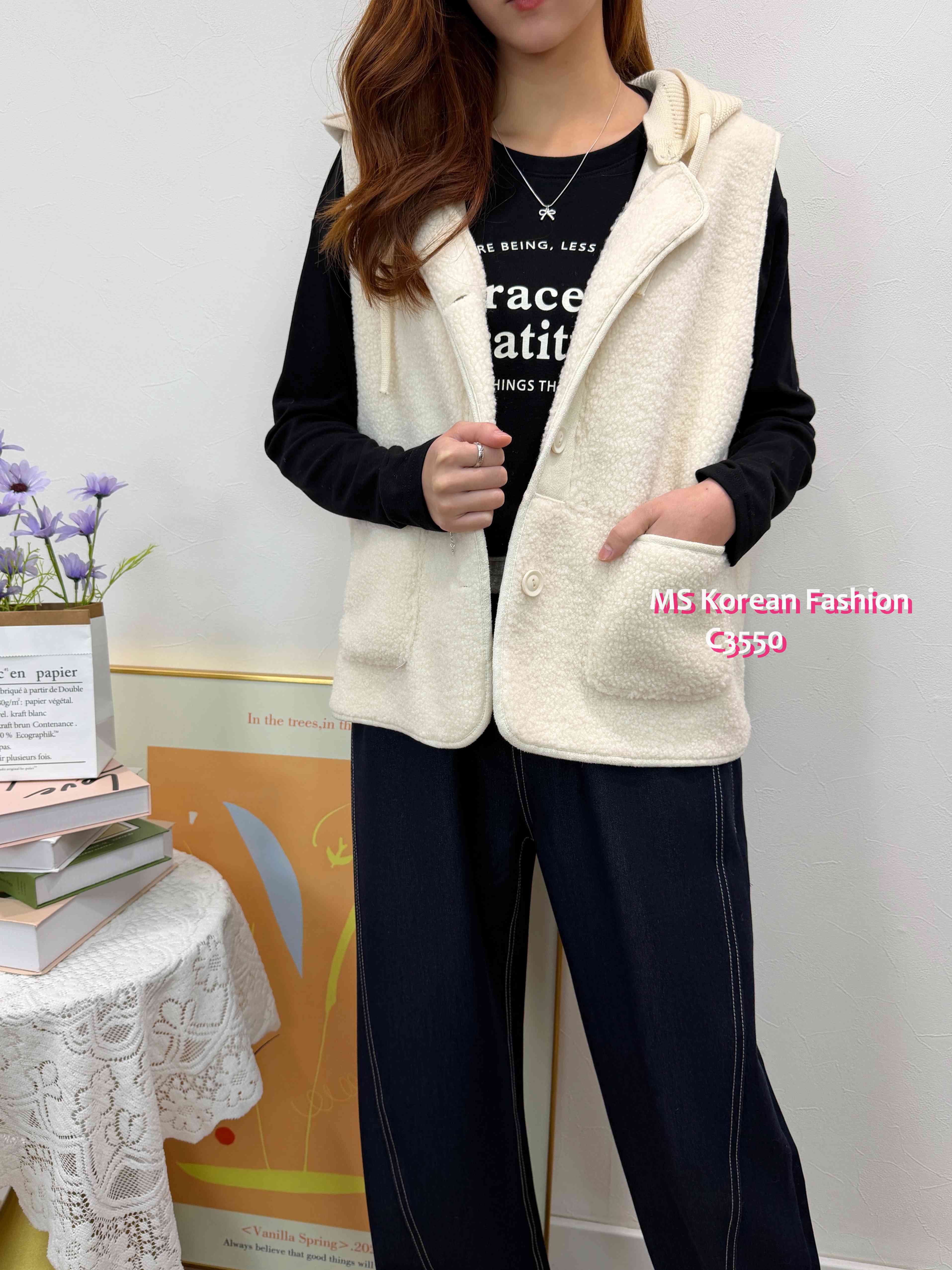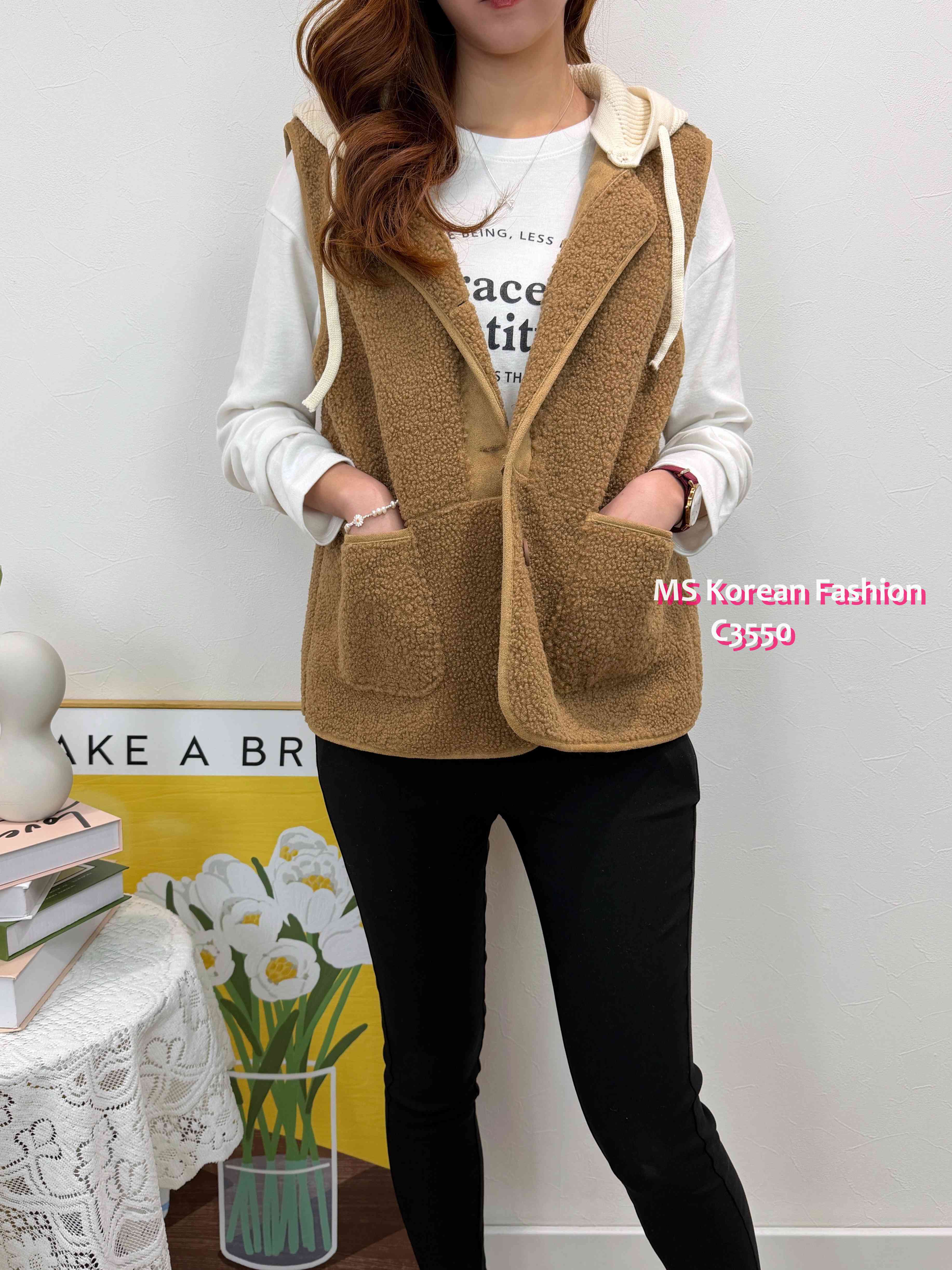 C3550 韓國🇰🇷毛毛背心連帽馬甲