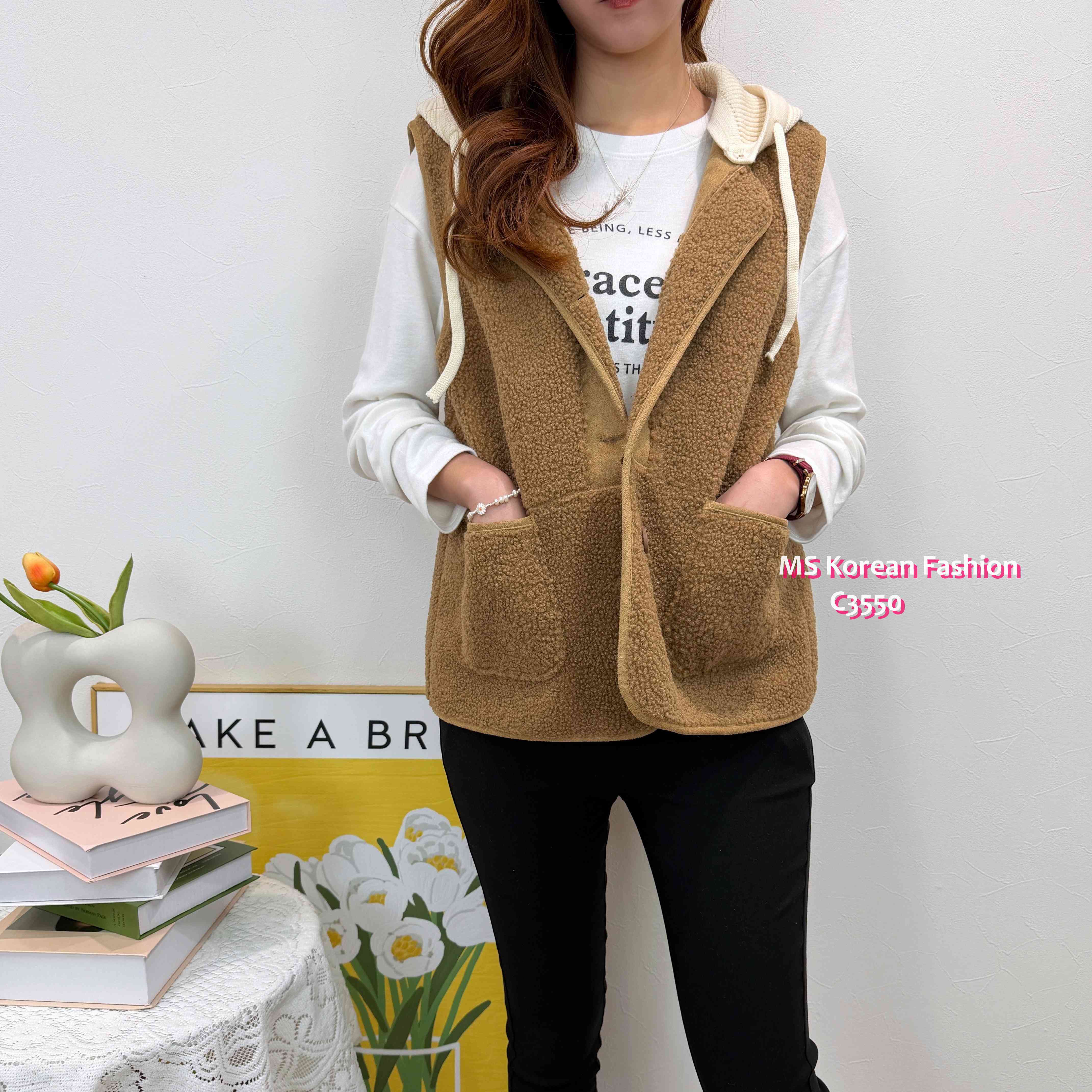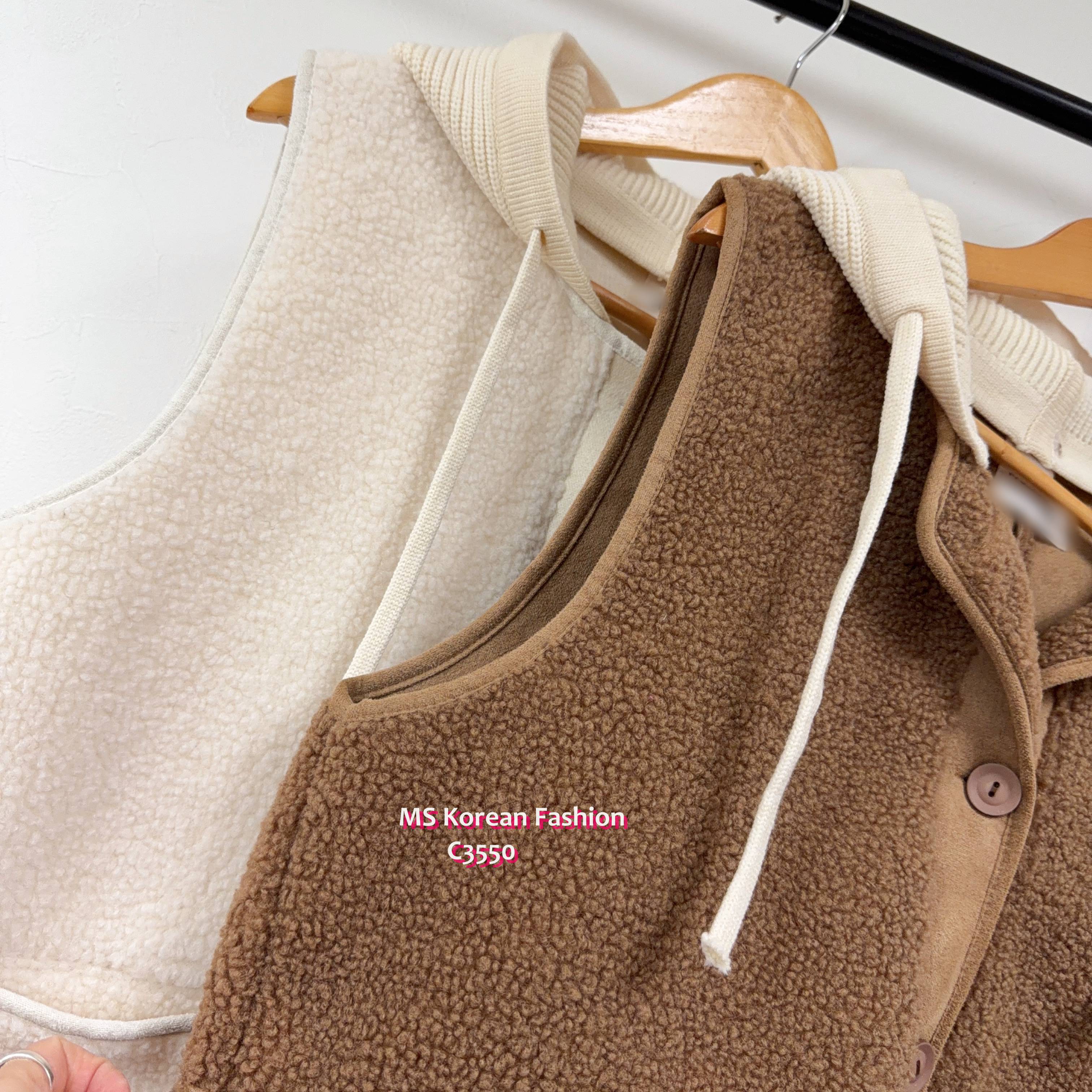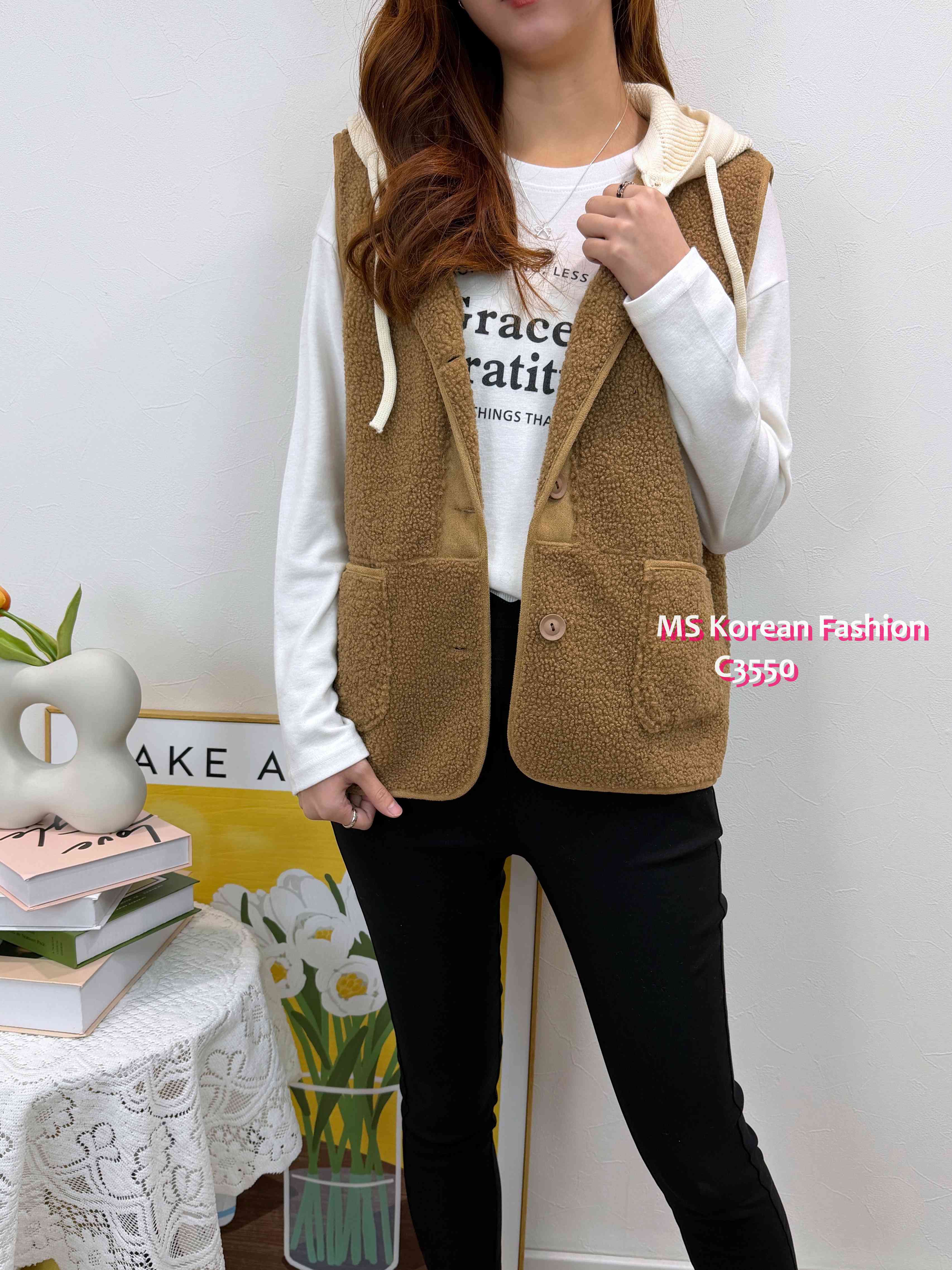 C3550 韓國🇰🇷毛毛背心連帽馬甲