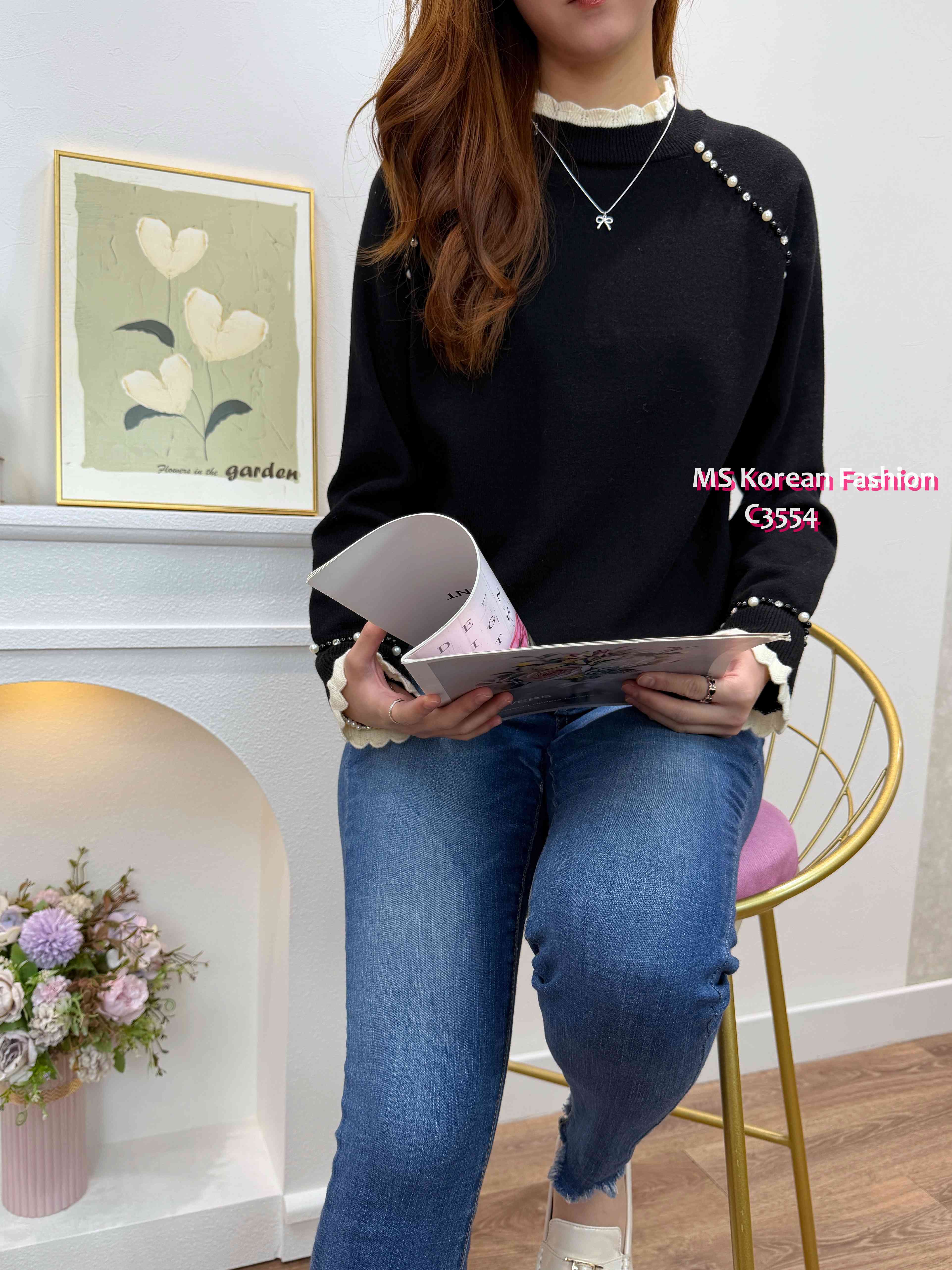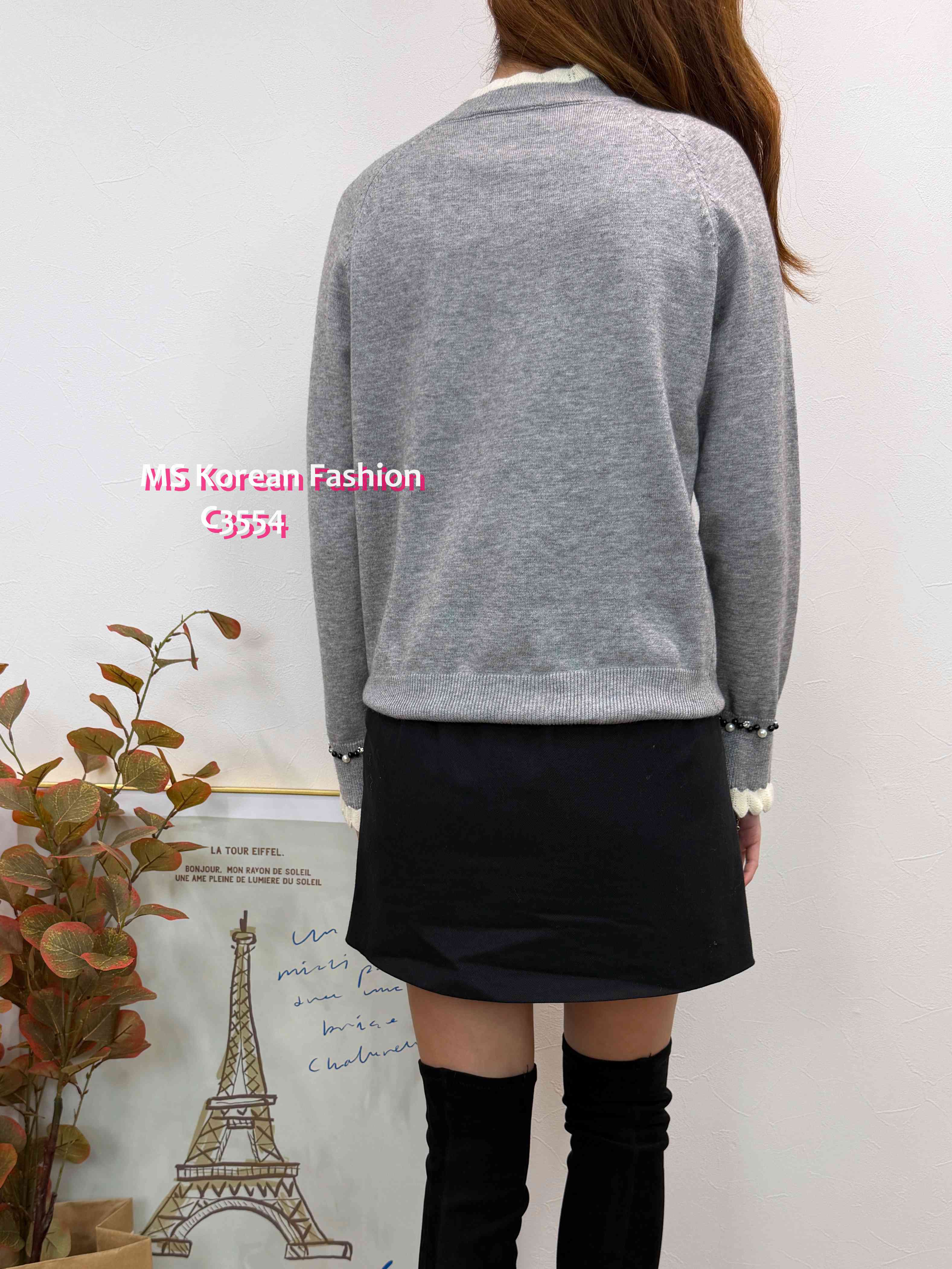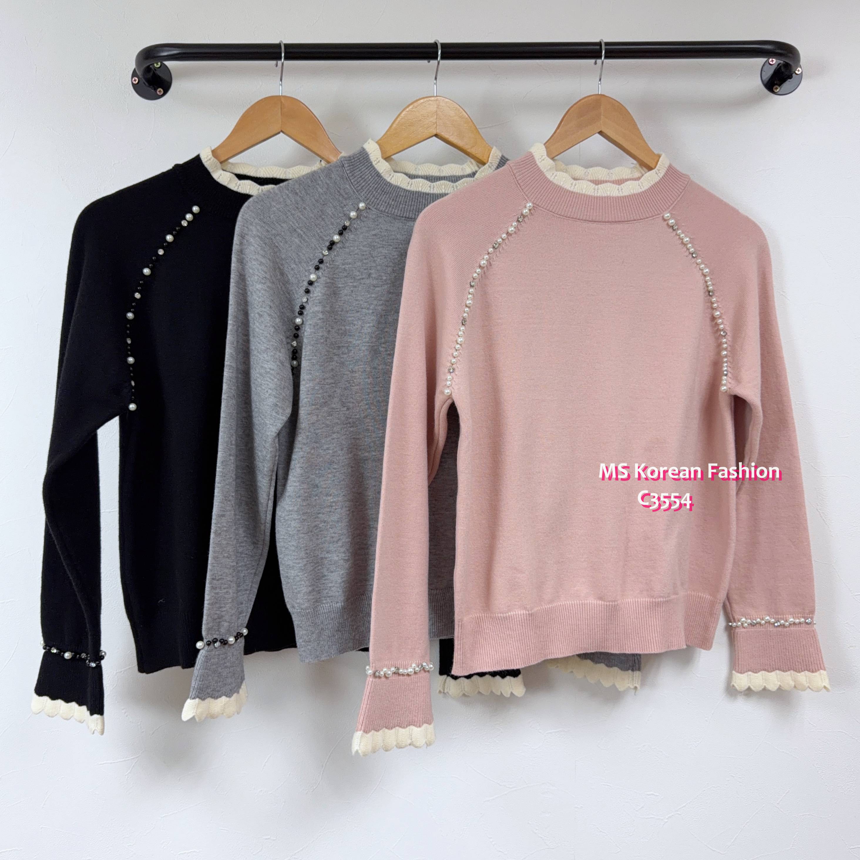 [訂貨約7-10個工作天] 💰💞Happy Price: $179 靚色針織top 領口同袖口拼色波浪邊設計🎈 兩邊肩同袖口加左閃石同珠珠點綴 單著襯襯外套都一流😻 黑、灰、粉 3色 尺寸 胸37">拉開46"/長22" 📫1件加$15包順豐站/自助櫃,2件包順豐(順豐站/自助櫃/工商/住宅) 📱查詢及Order可Inbox或Whatsapp 6317 3061