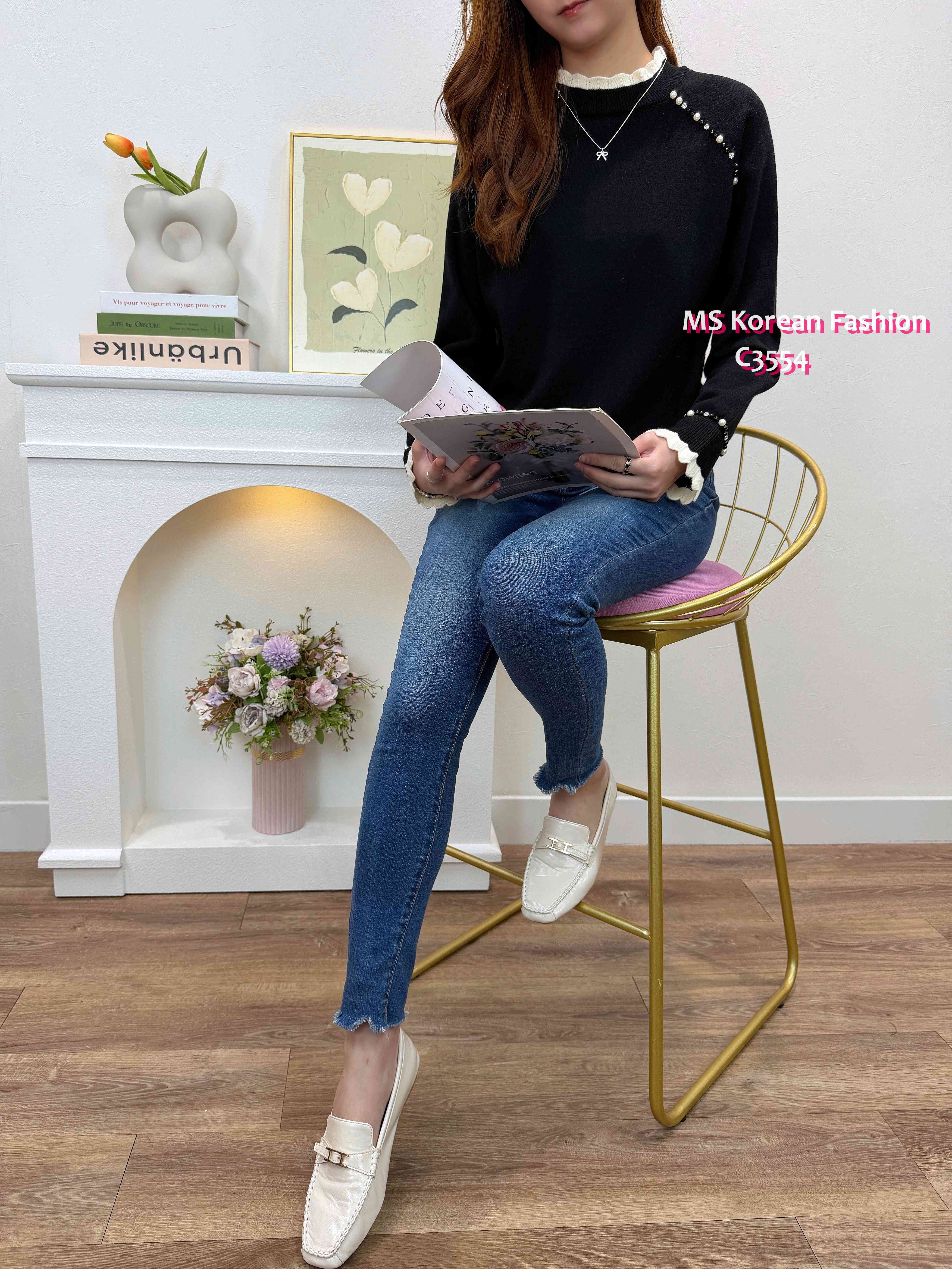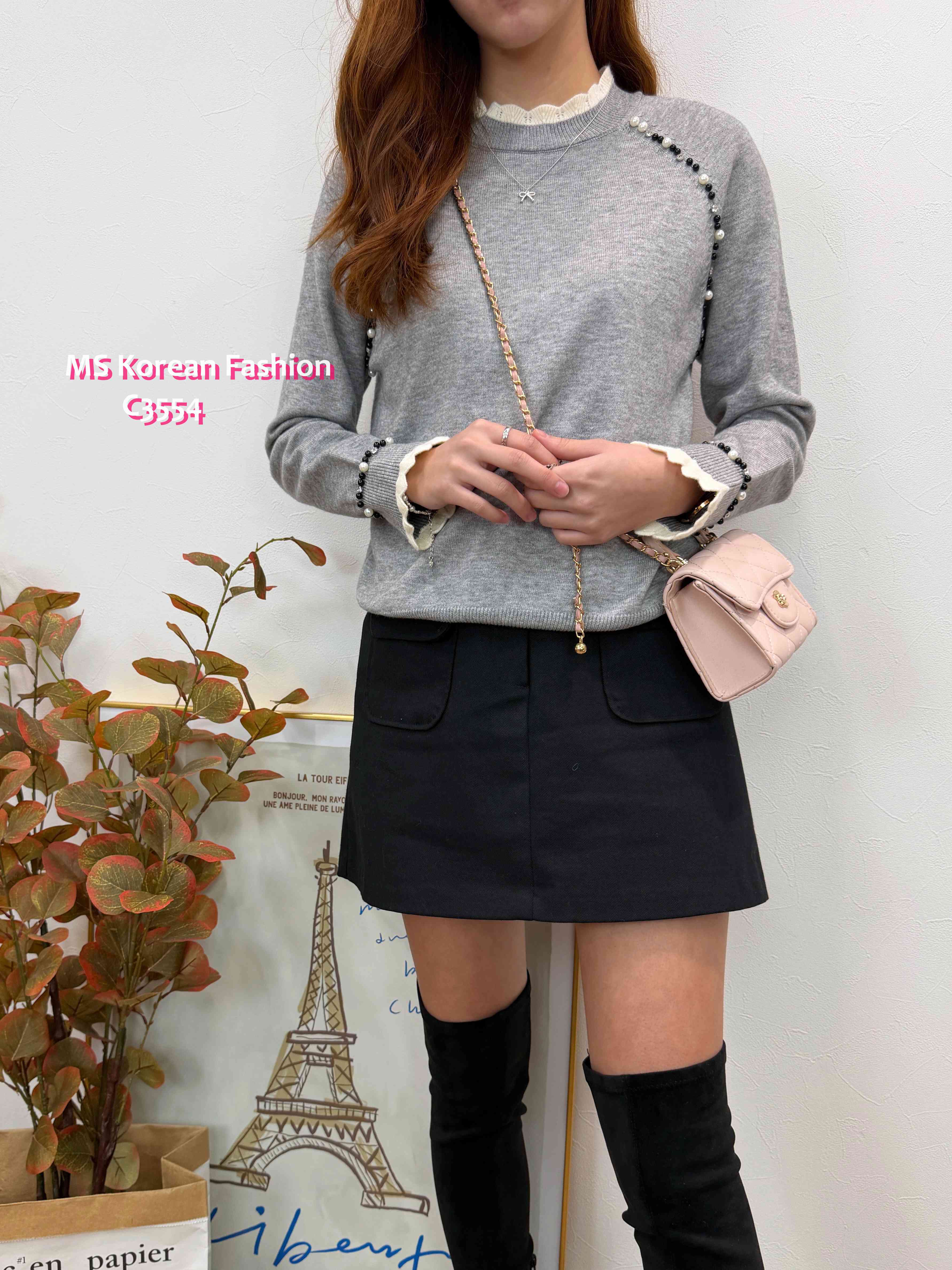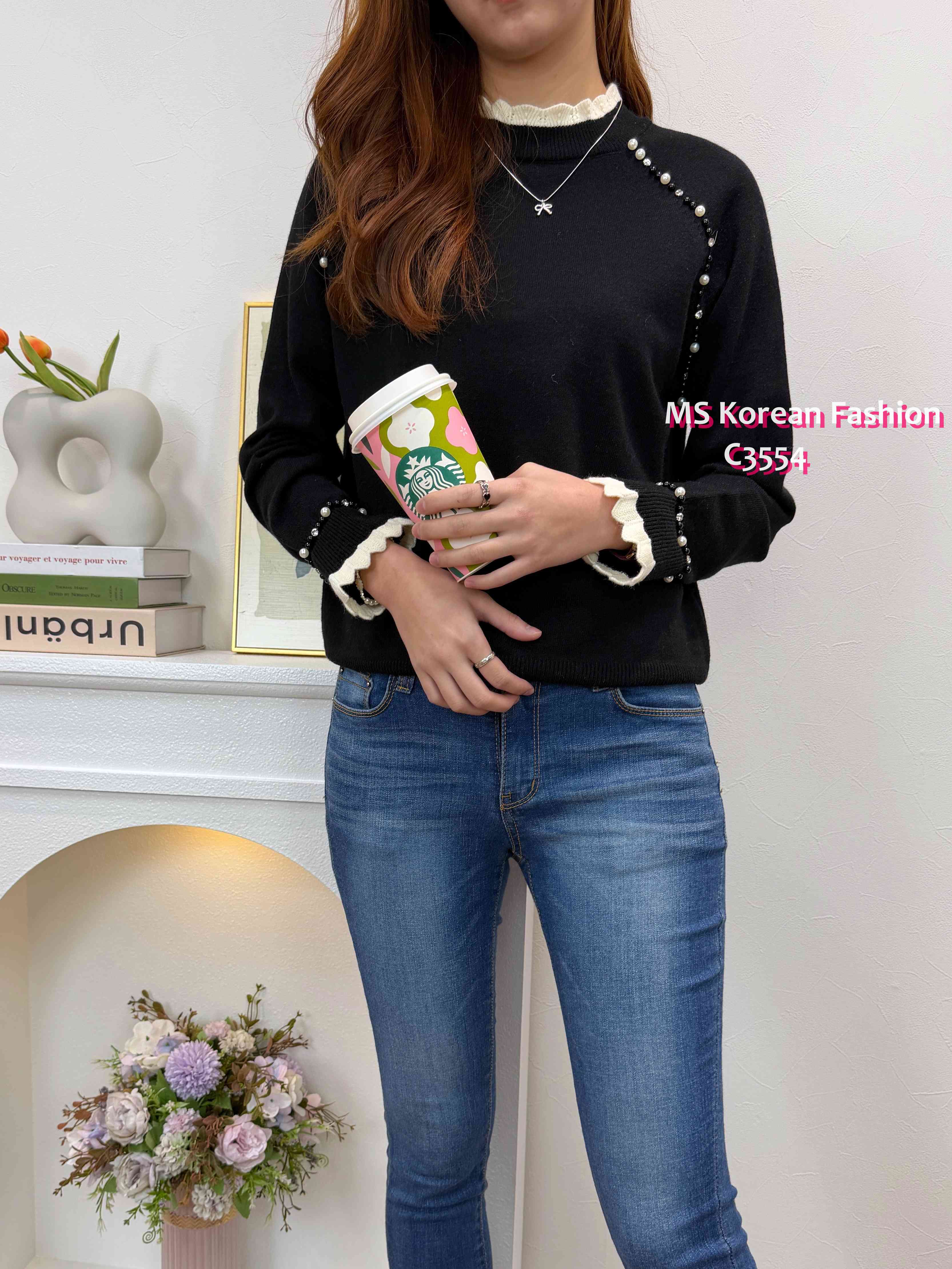 [訂貨約7-10個工作天] 💰💞Happy Price: $179 靚色針織top 領口同袖口拼色波浪邊設計🎈 兩邊肩同袖口加左閃石同珠珠點綴 單著襯襯外套都一流😻 黑、灰、粉 3色 尺寸 胸37">拉開46"/長22" 📫1件加$15包順豐站/自助櫃,2件包順豐(順豐站/自助櫃/工商/住宅) 📱查詢及Order可Inbox或Whatsapp 6317 3061