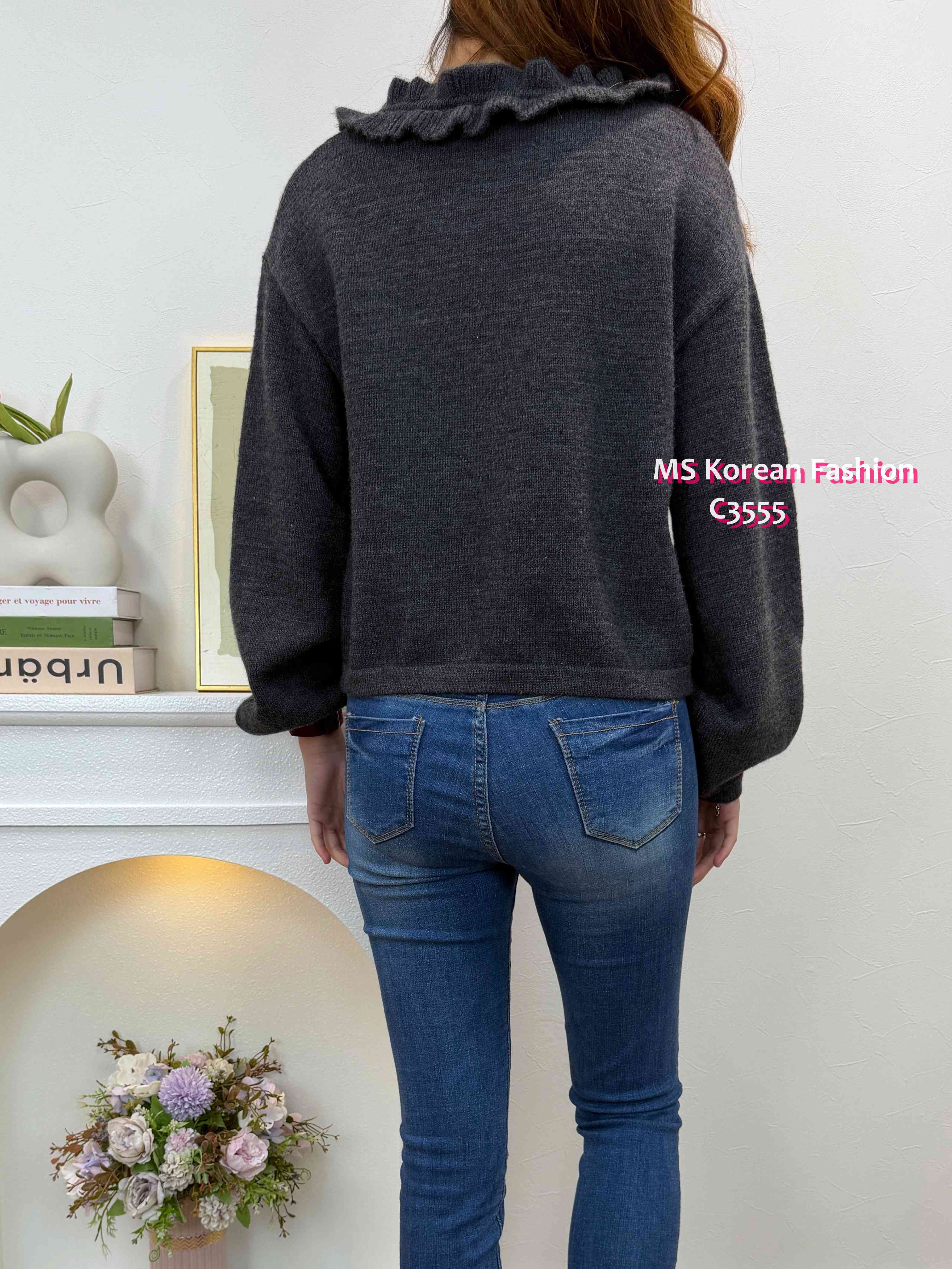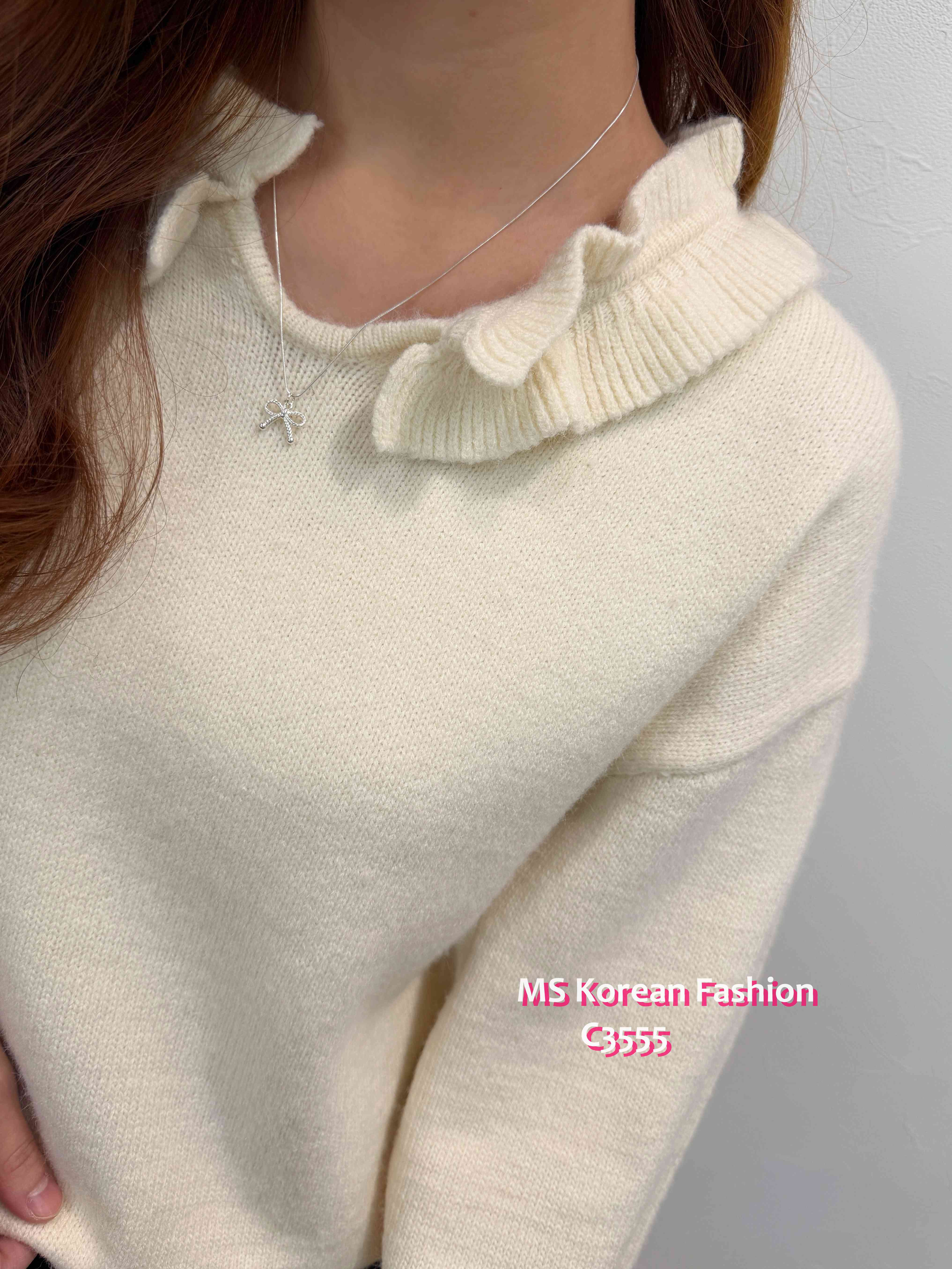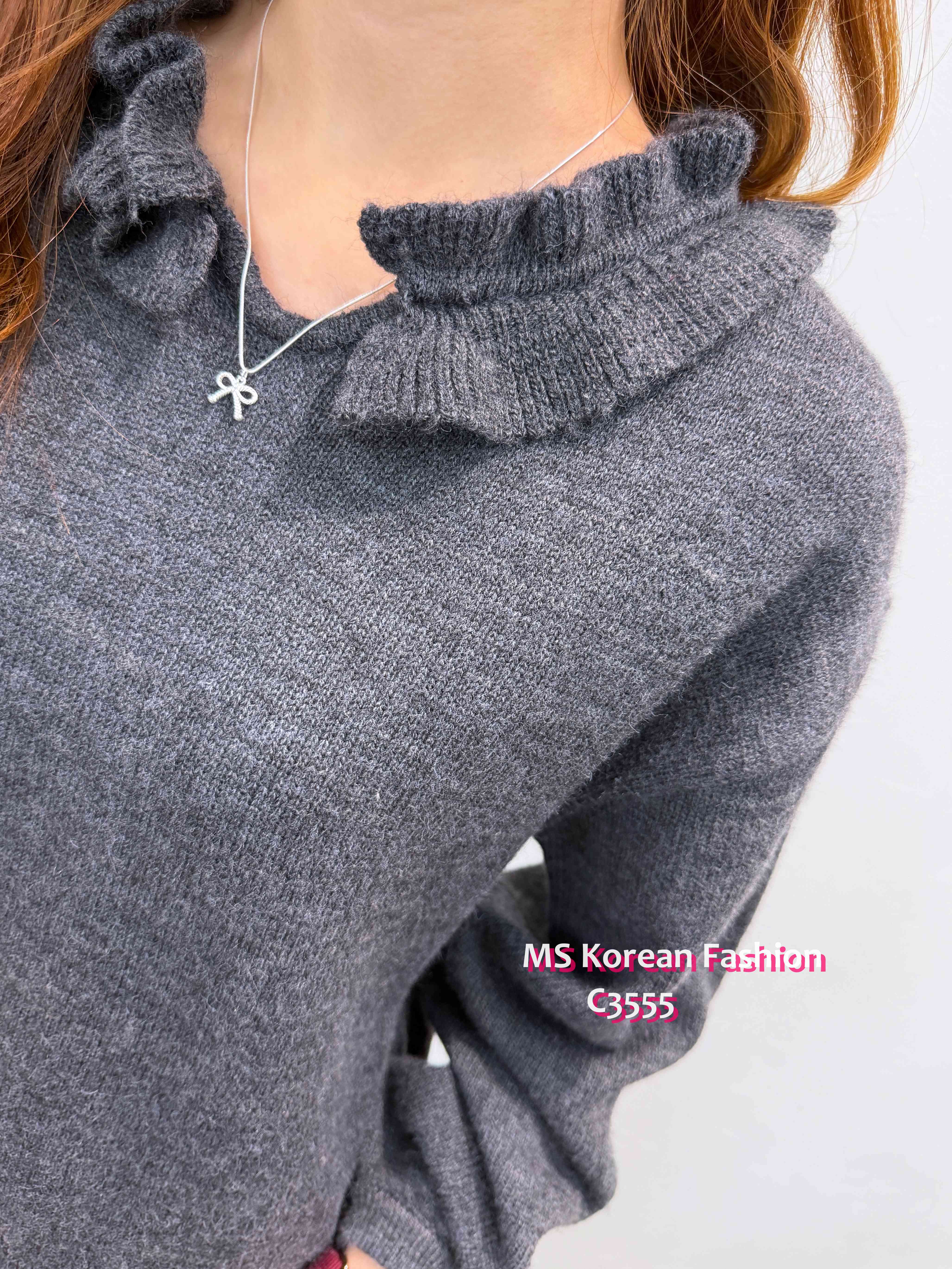C3555 韓國🇰🇷小V領ruffle邊top