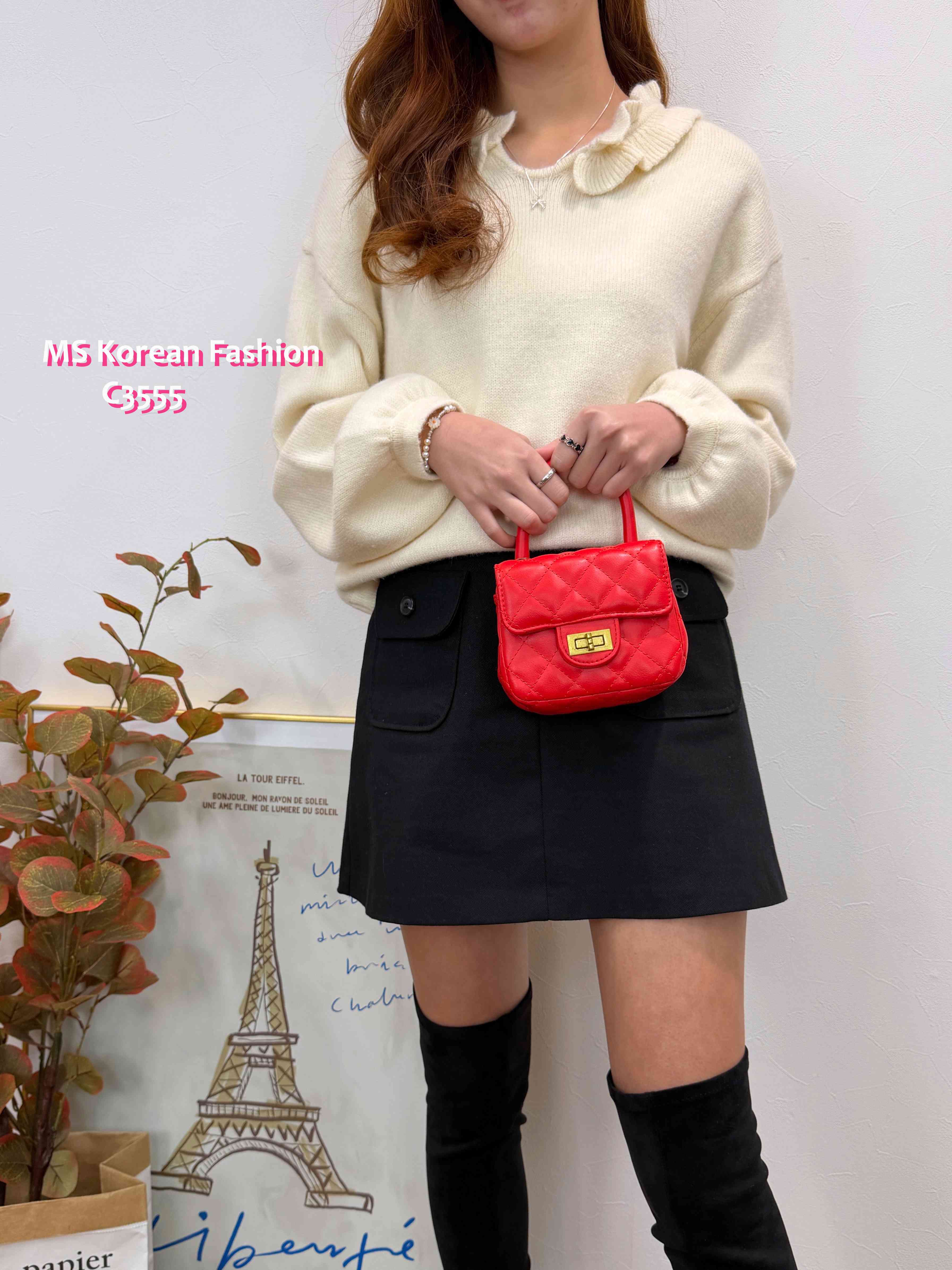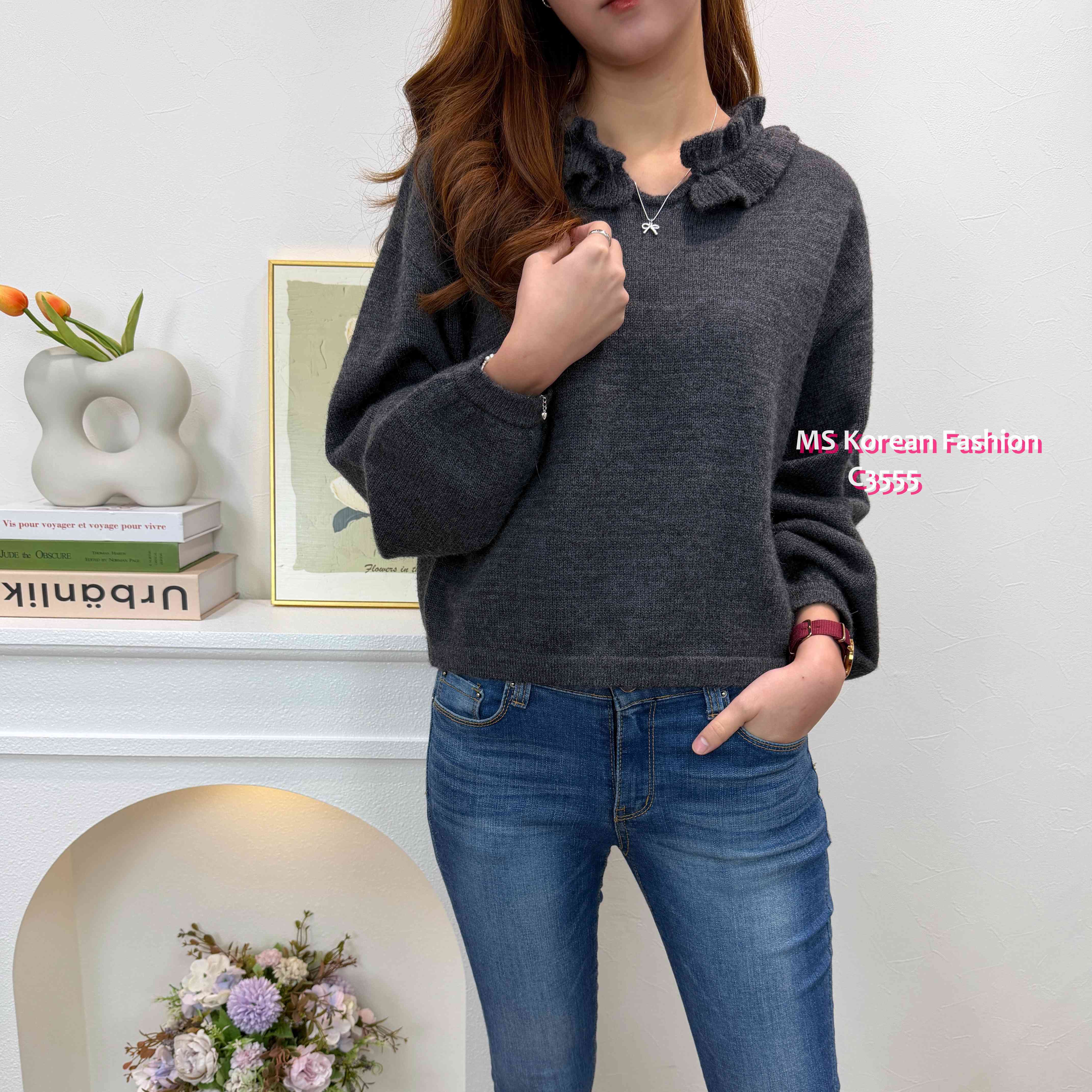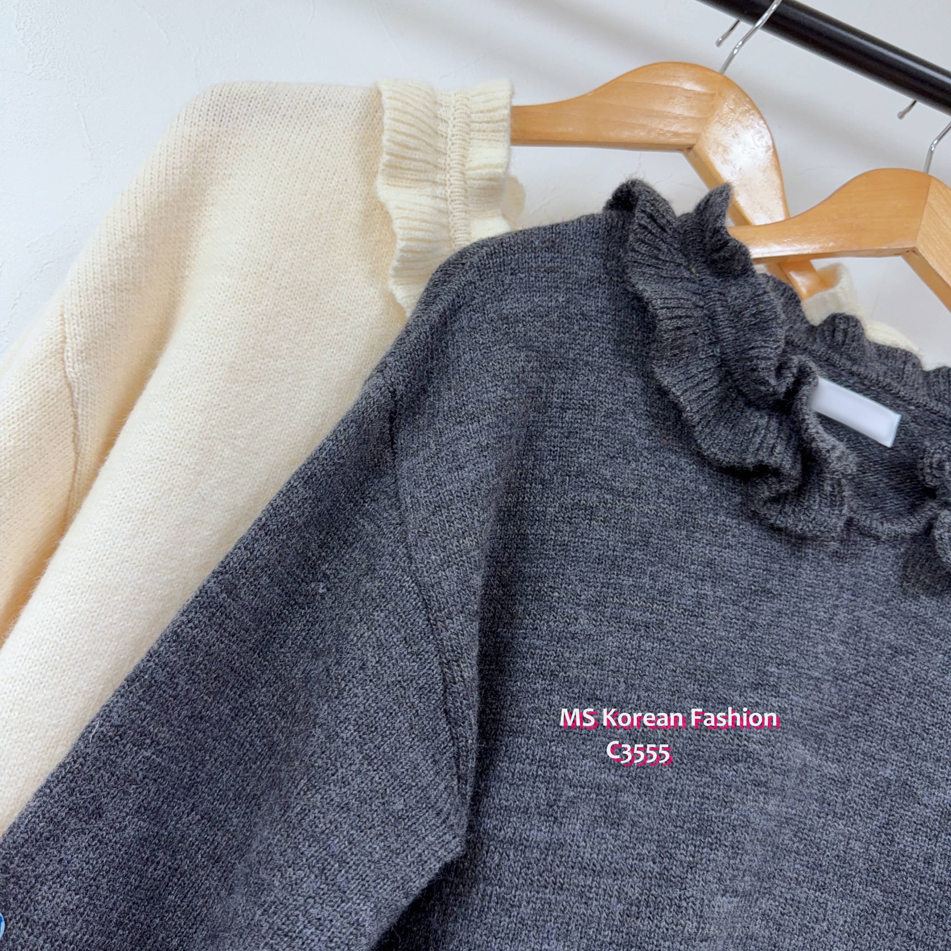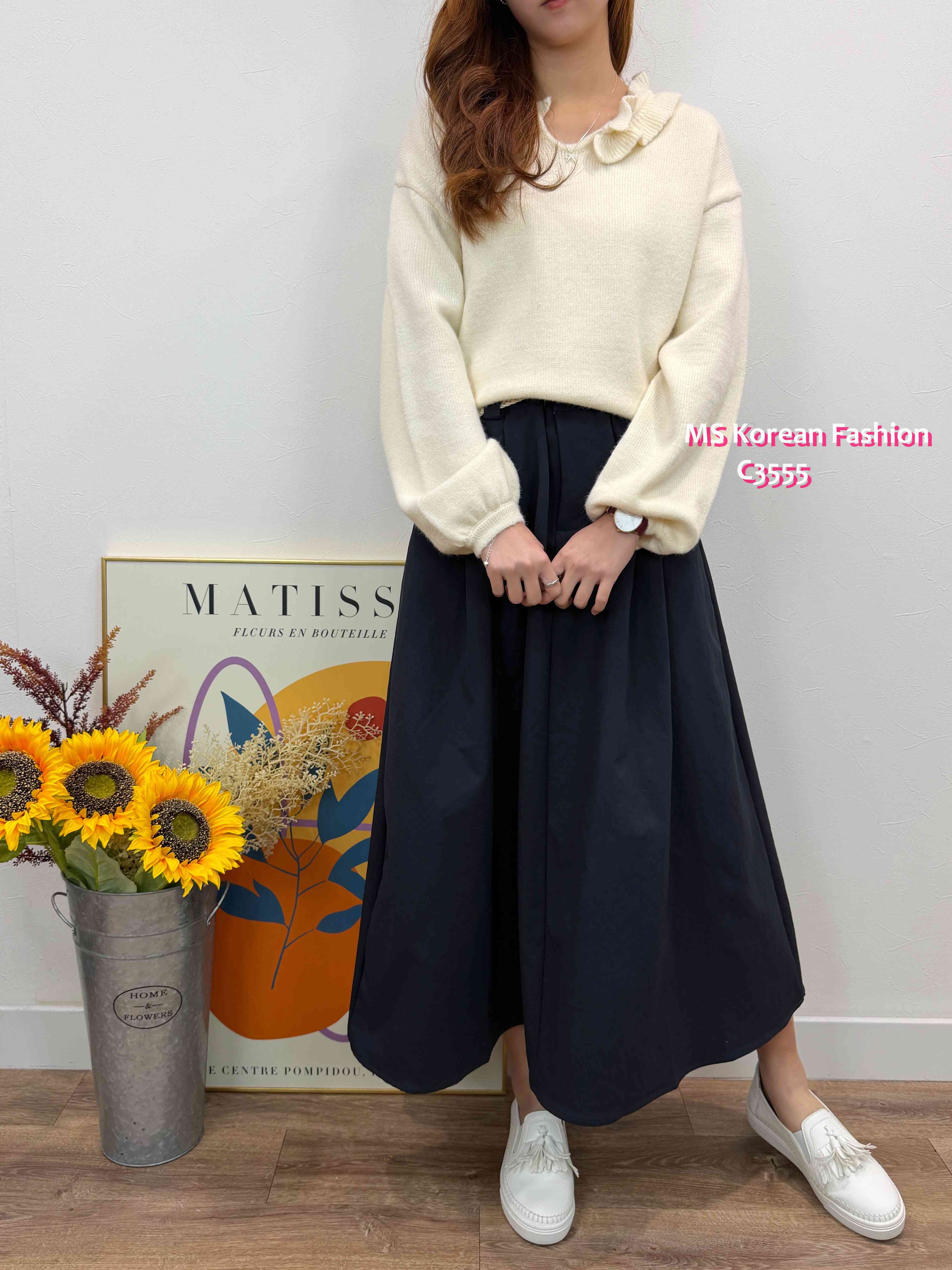 C3555 韓國🇰🇷小V領ruffle邊top