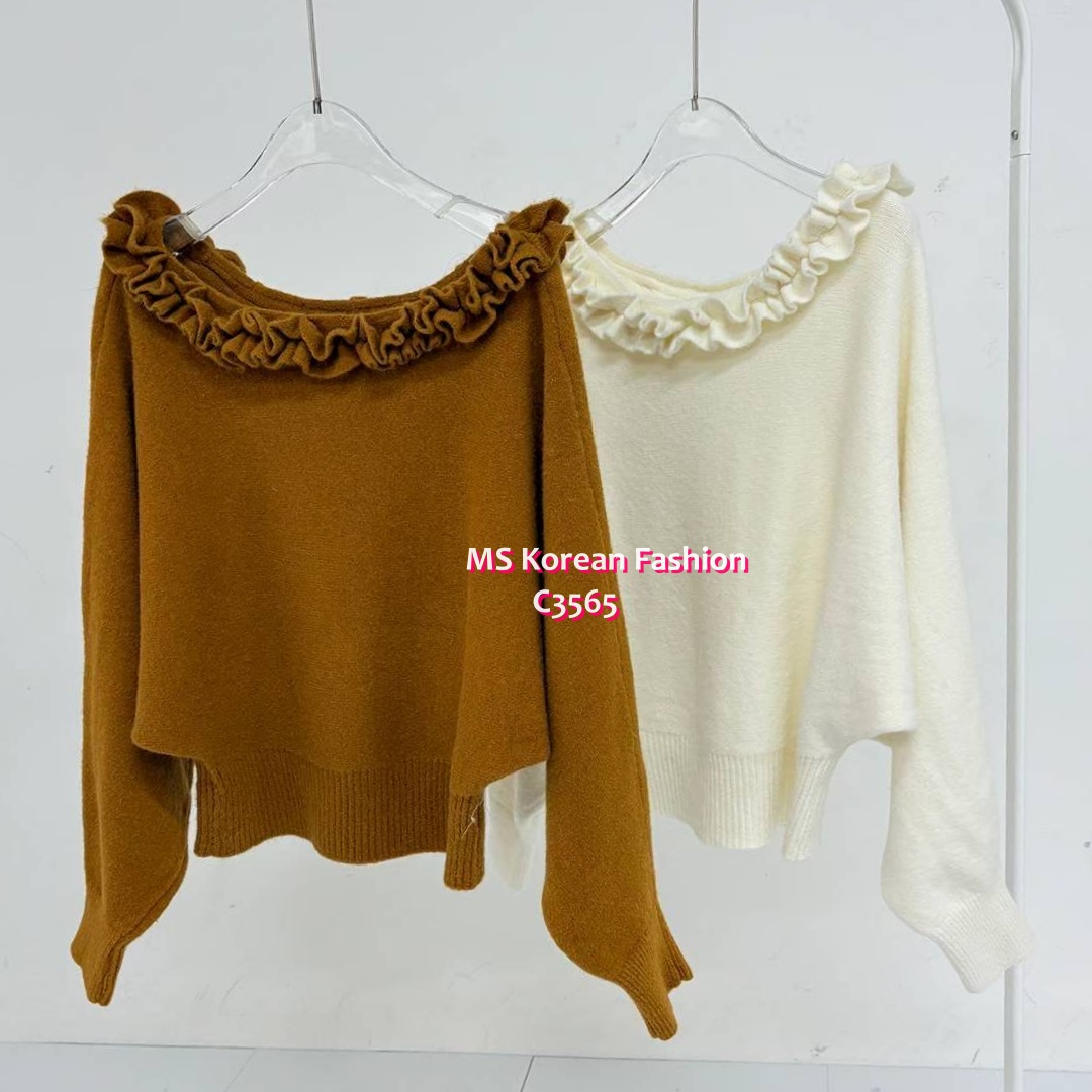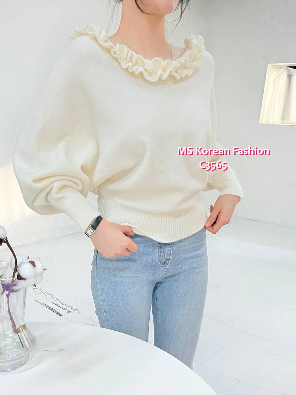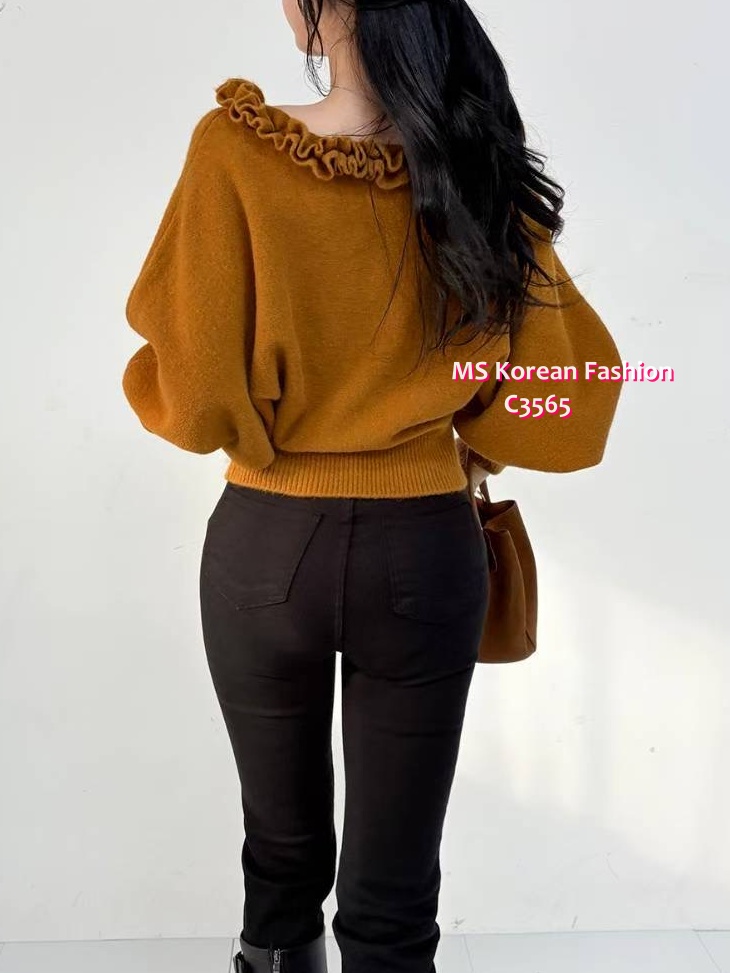 C3565 韓國🇰🇷特色ruffle大領top