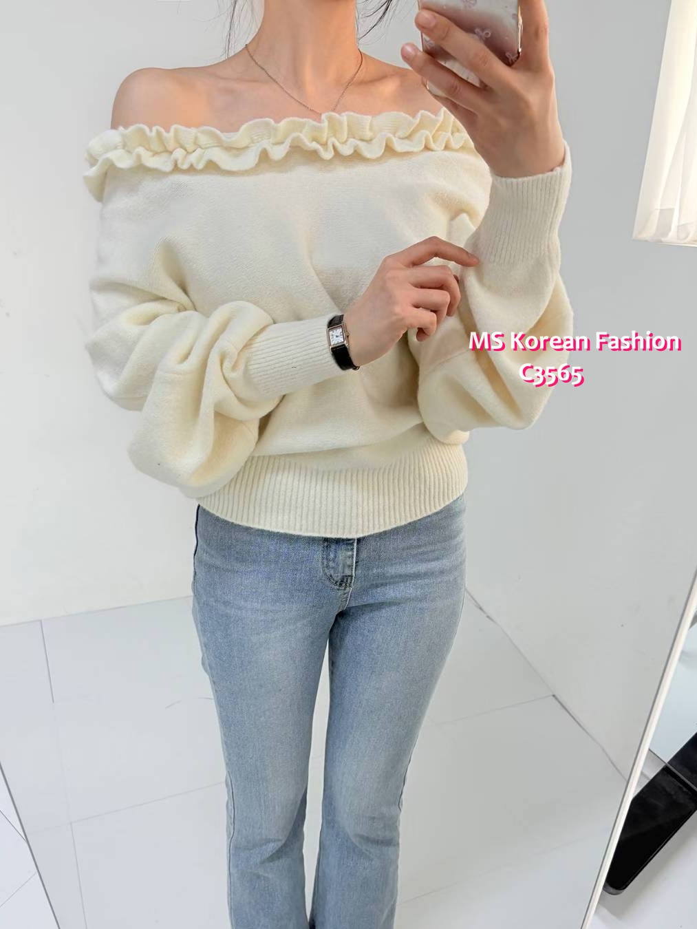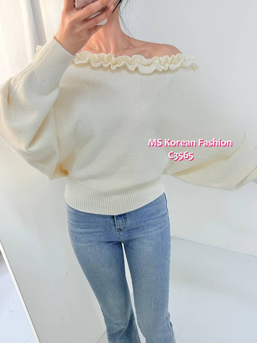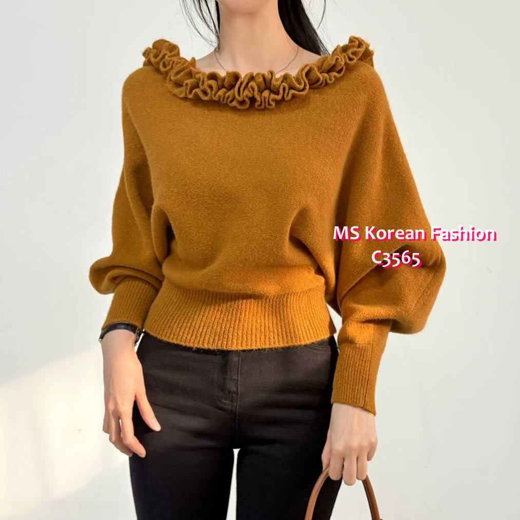 C3565 韓國🇰🇷特色ruffle大領top