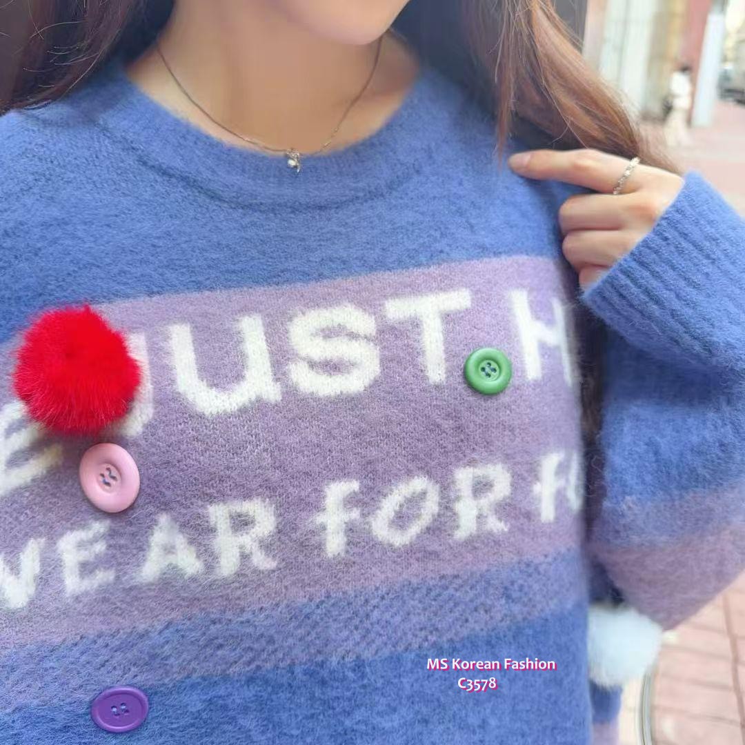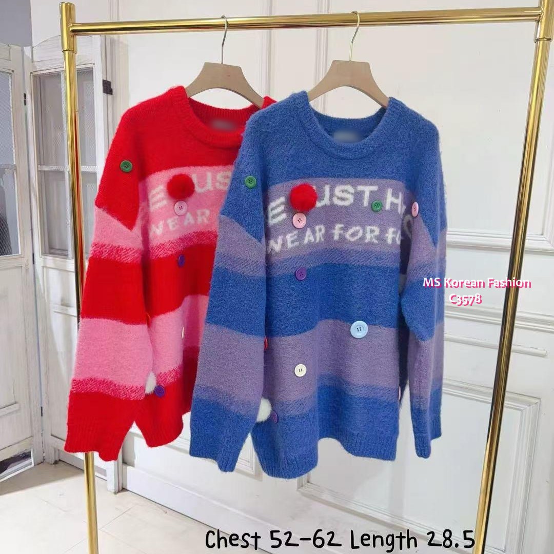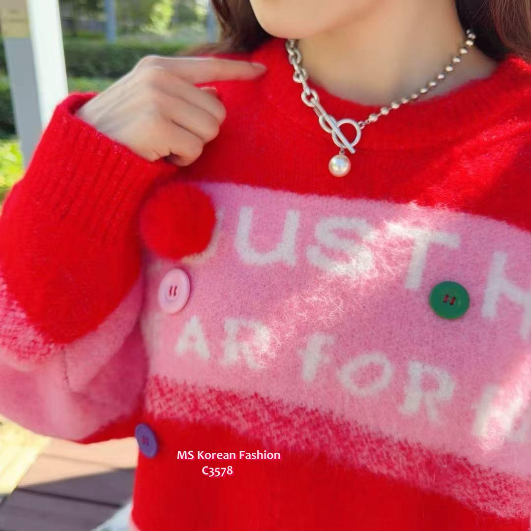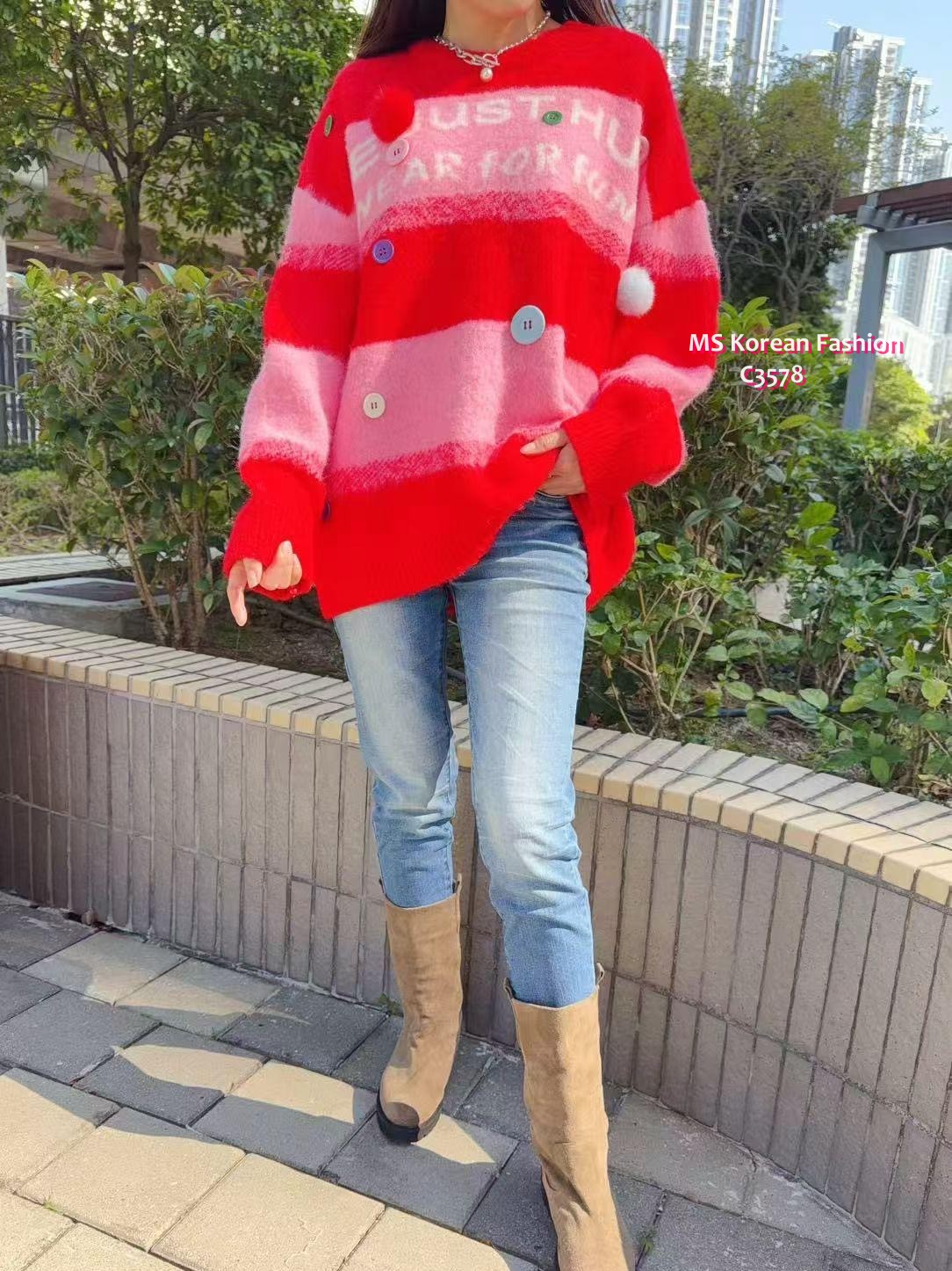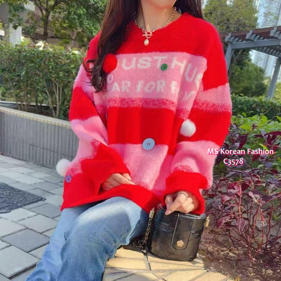 [訂貨約7-10個工作天] 💰💞Happy Price: $239 靚色橫間冷衫🌈 可愛毛毛球夠晒eye catching 紅色過年著一流呀🧧 紅、藍 2色 尺寸 胸52"/長28.5" 📫1件加$15包順豐站/自助櫃,2件包順豐(順豐站/自助櫃/工商/住宅) 📱查詢及Order可Inbox或Whatsapp 6317 3061