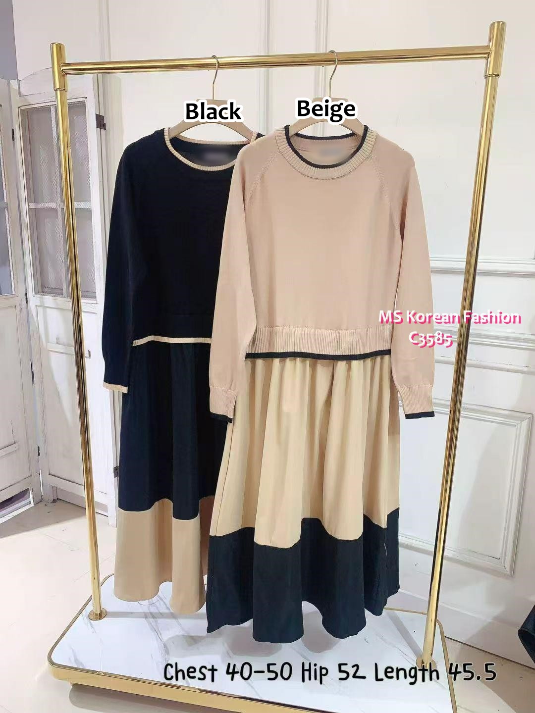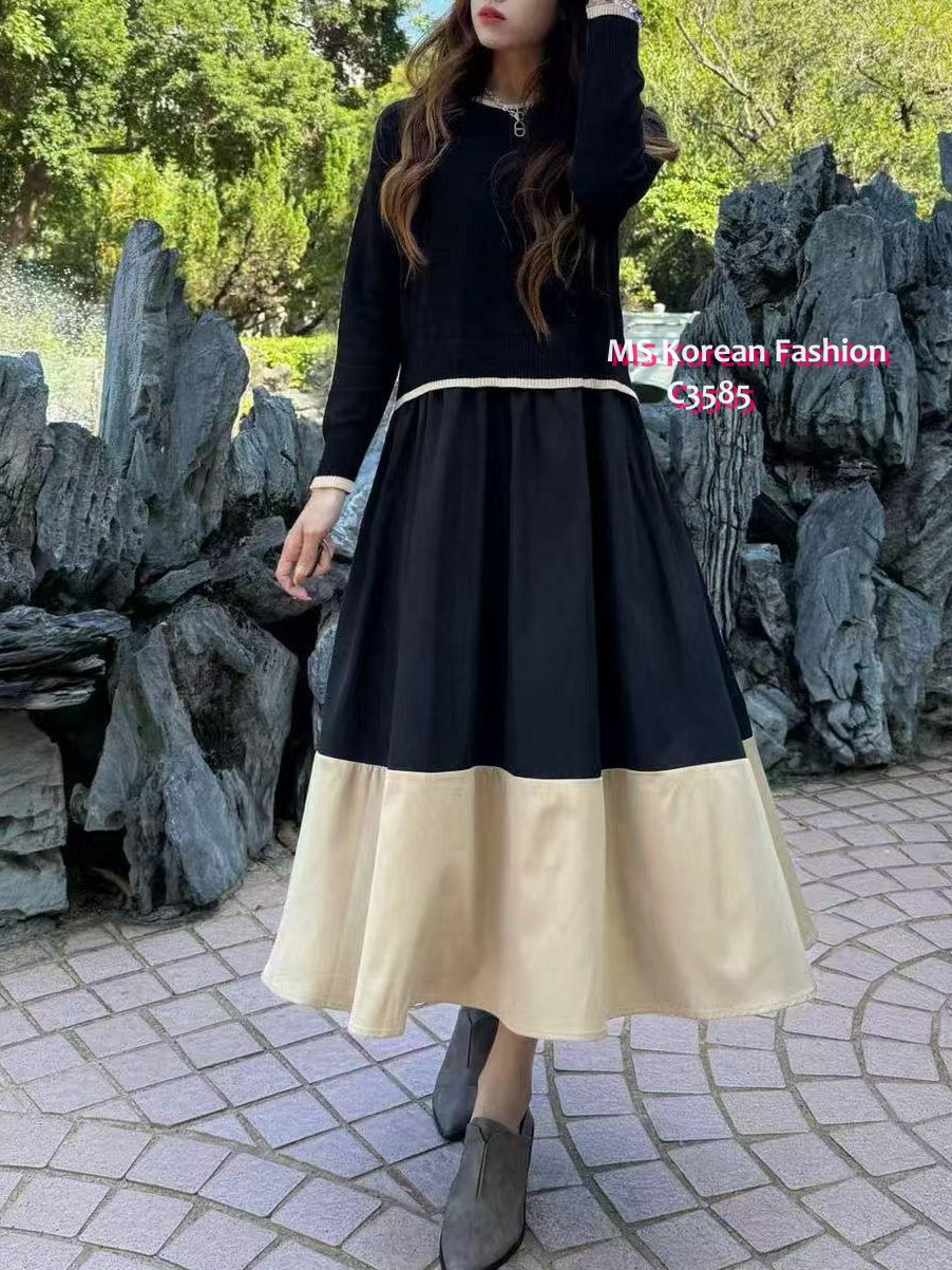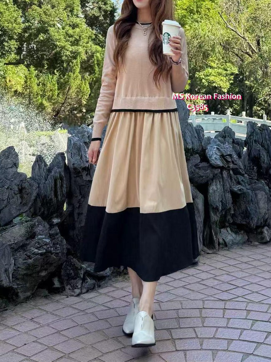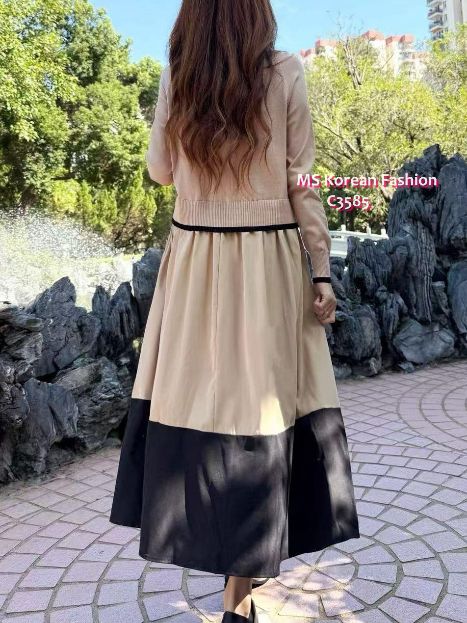 C3585 韓國🇰🇷假兩件拼色連身裙