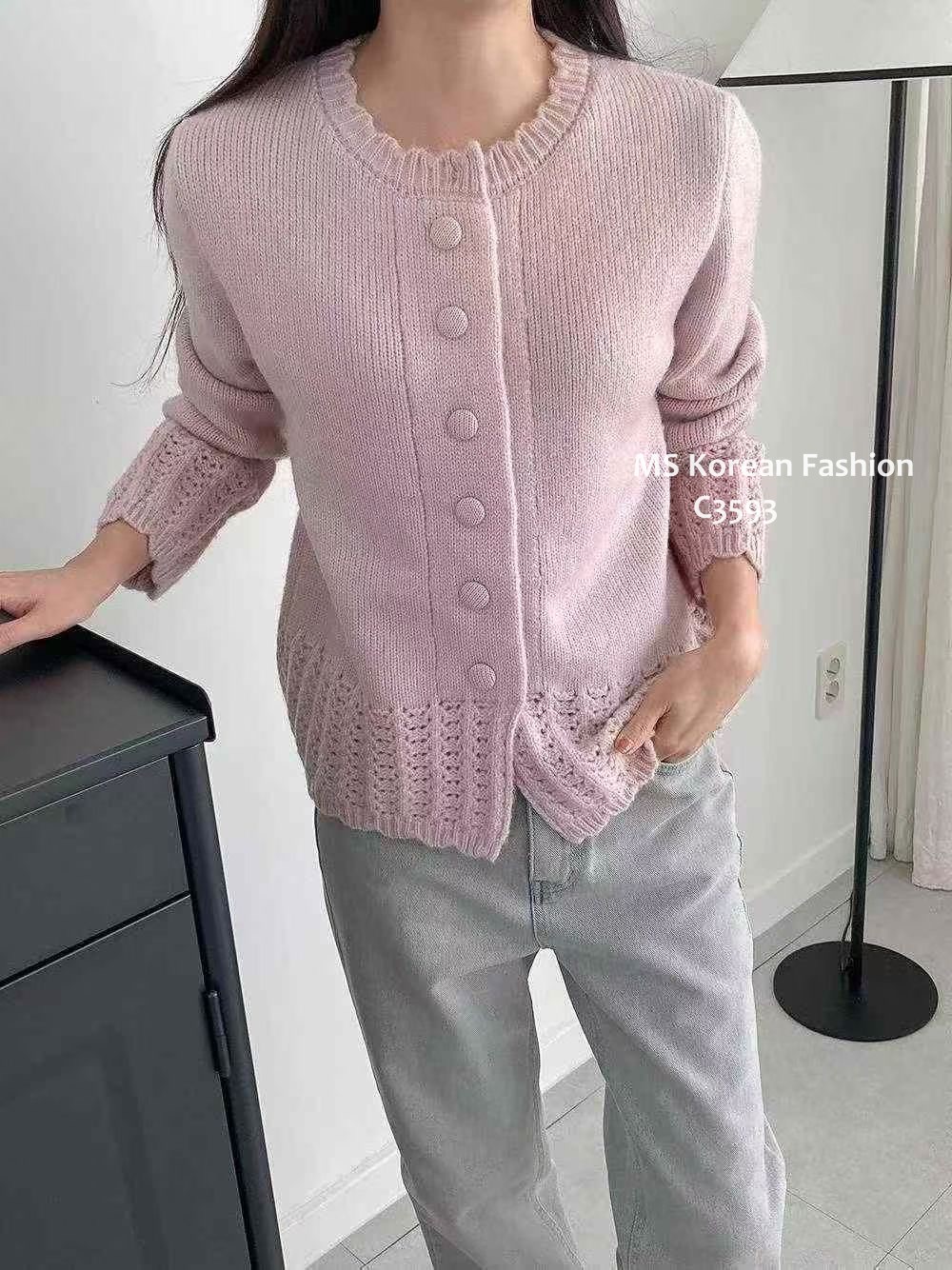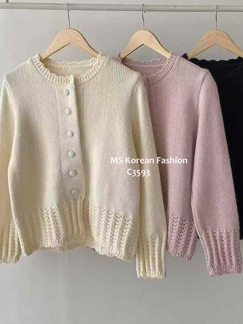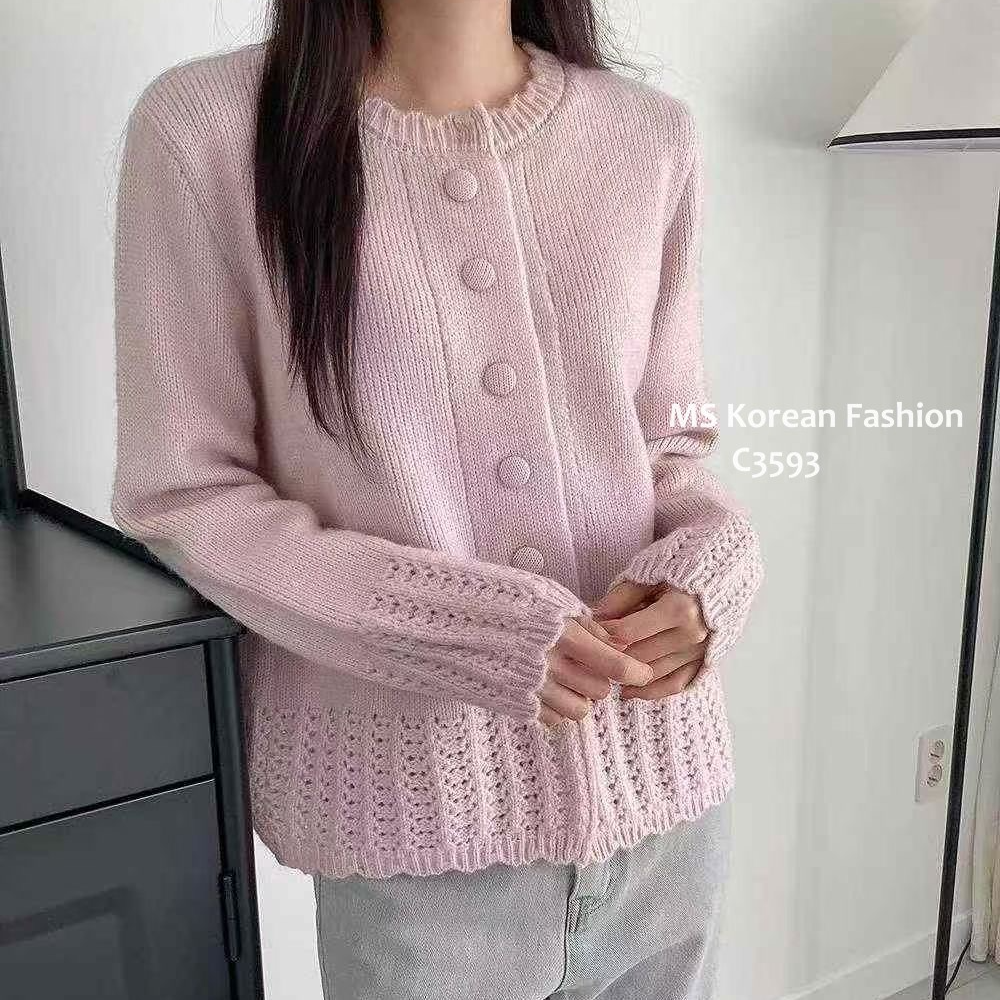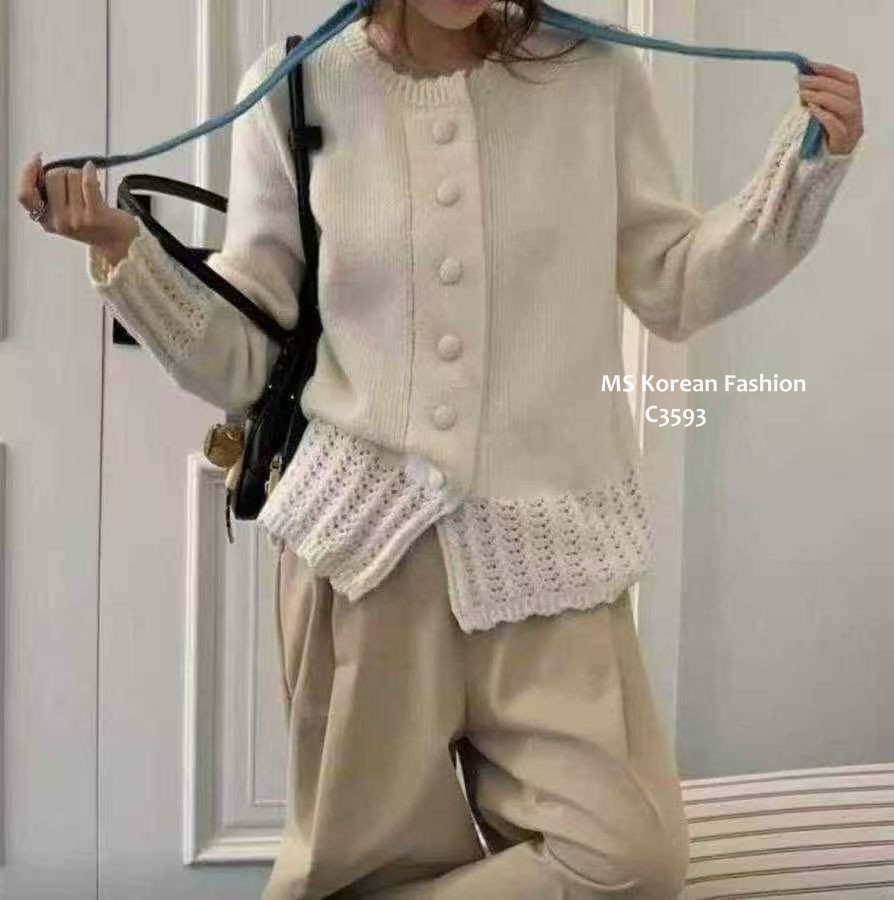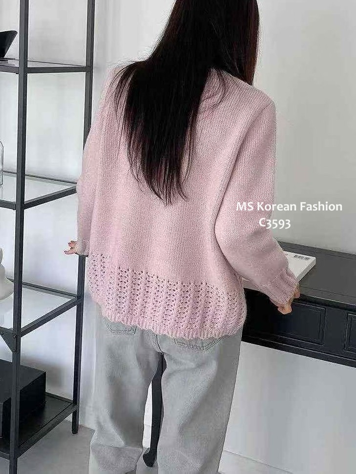 C3593 韓國🇰🇷淨色勾花針織外套