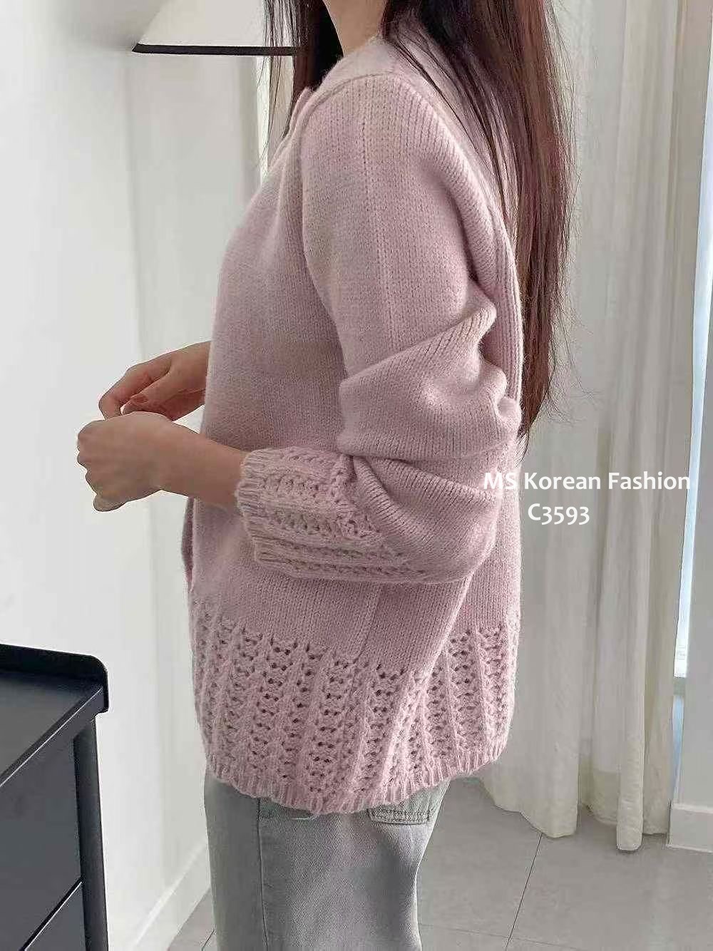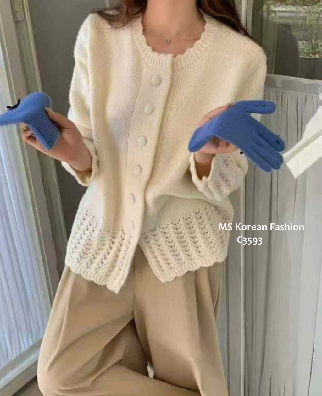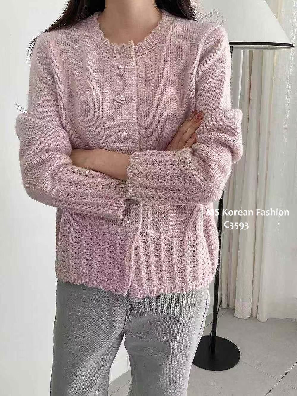 C3593 韓國🇰🇷淨色勾花針織外套