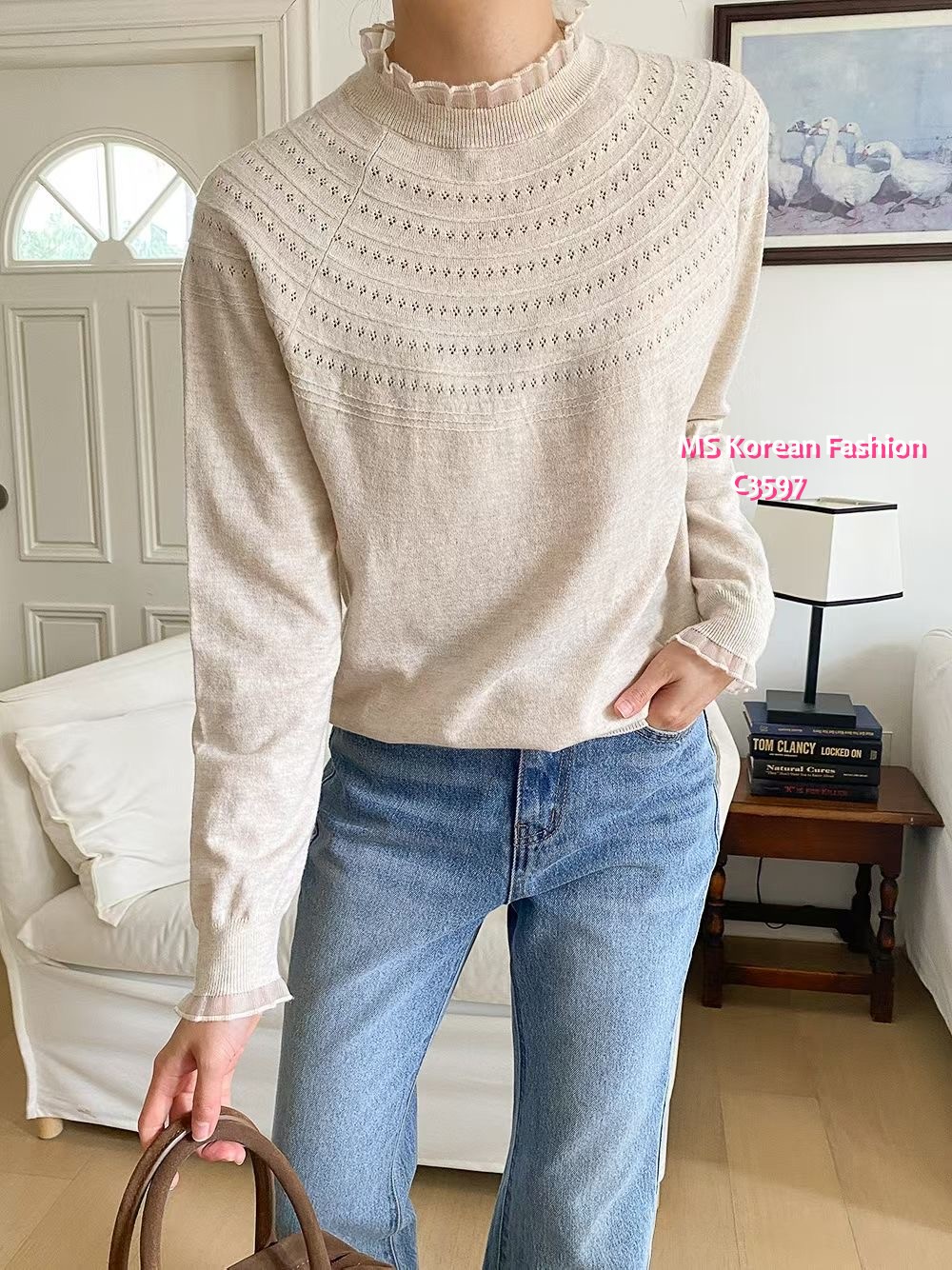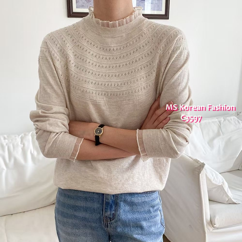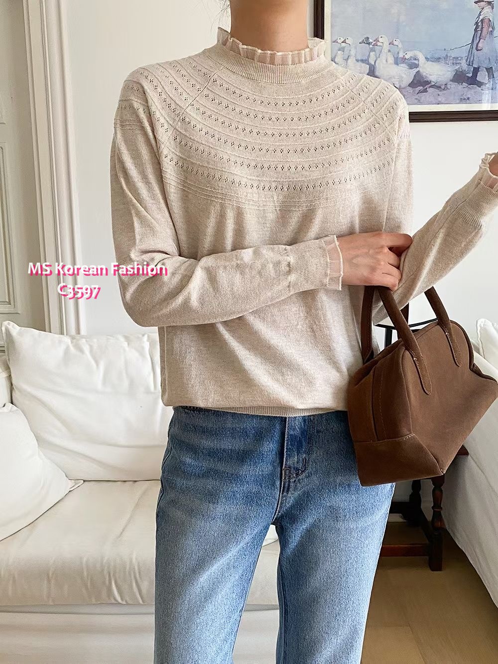 [訂貨約7-10個工作天] 💰💞Happy Price: $179 靚靚通花top🌼 舒服親膚針織料質地唔厚 領口同袖口加左透視ruffle邊點綴好有睇頭🥰 單著或襯外套都正呀✌ 杏、黑 2色 尺寸 胸40"/長22.5" 📫1件加$15包順豐站/自助櫃,2件包順豐(順豐站/自助櫃/工商/住宅) 📱查詢及Order可Inbox或Whatsapp 6317 3061