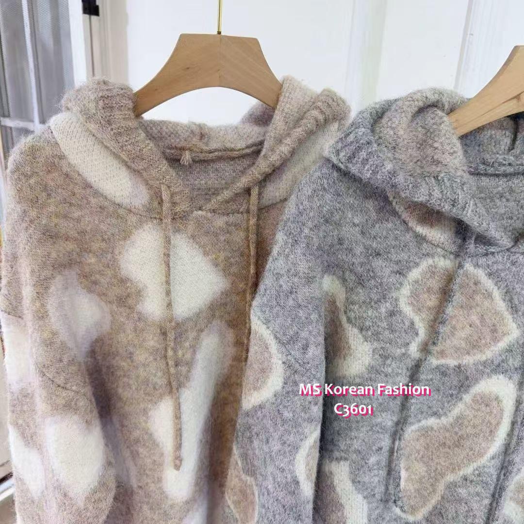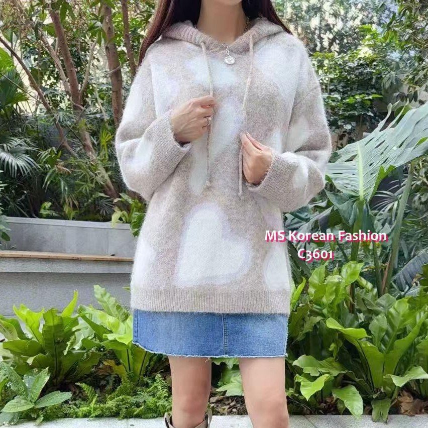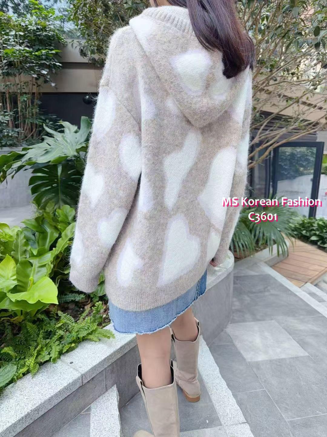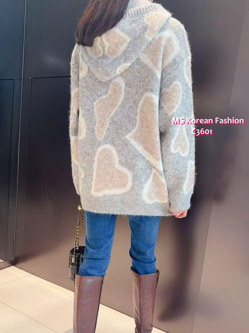 C3601 韓國🇰🇷心心pattern有帽冷衫