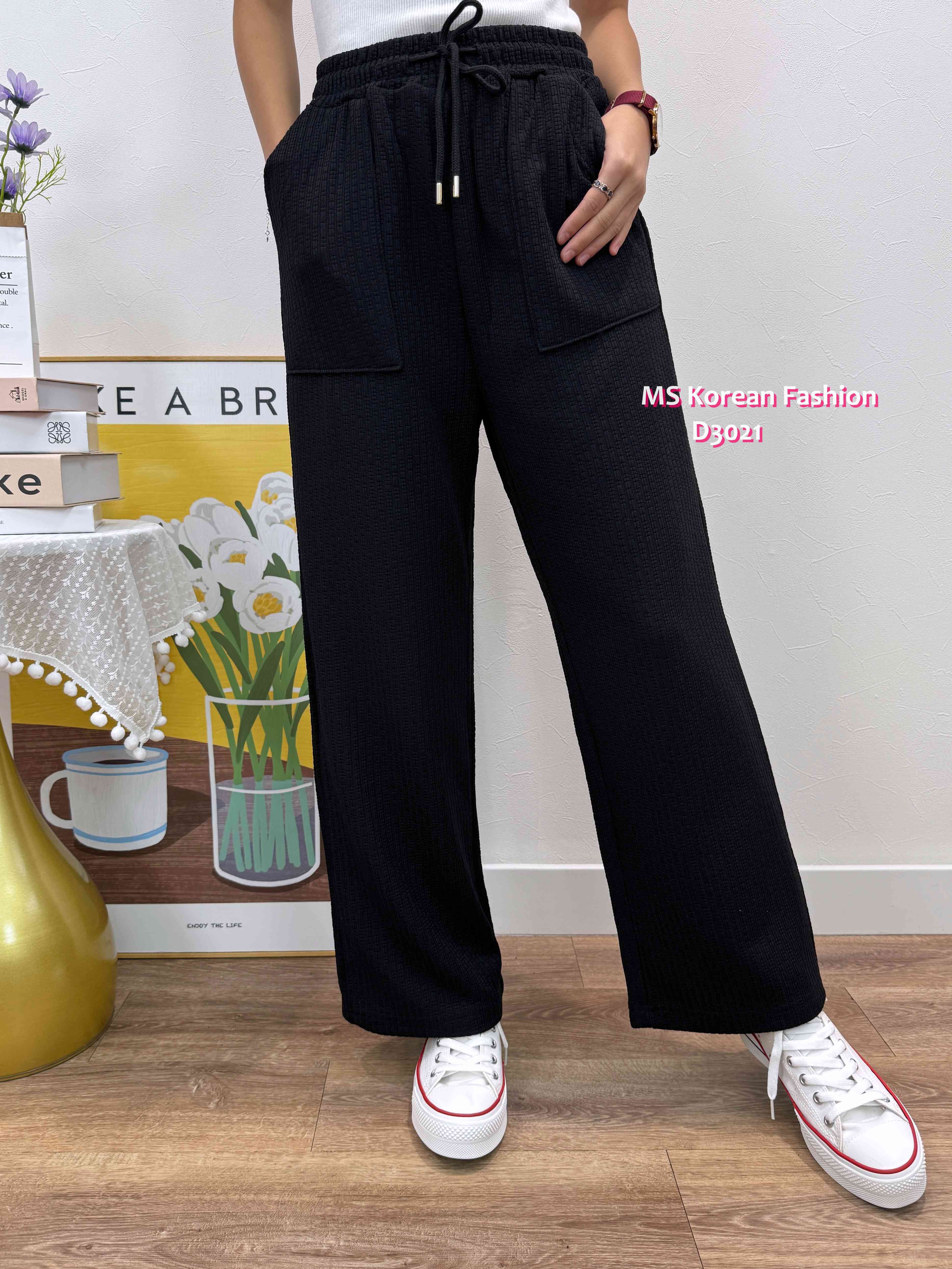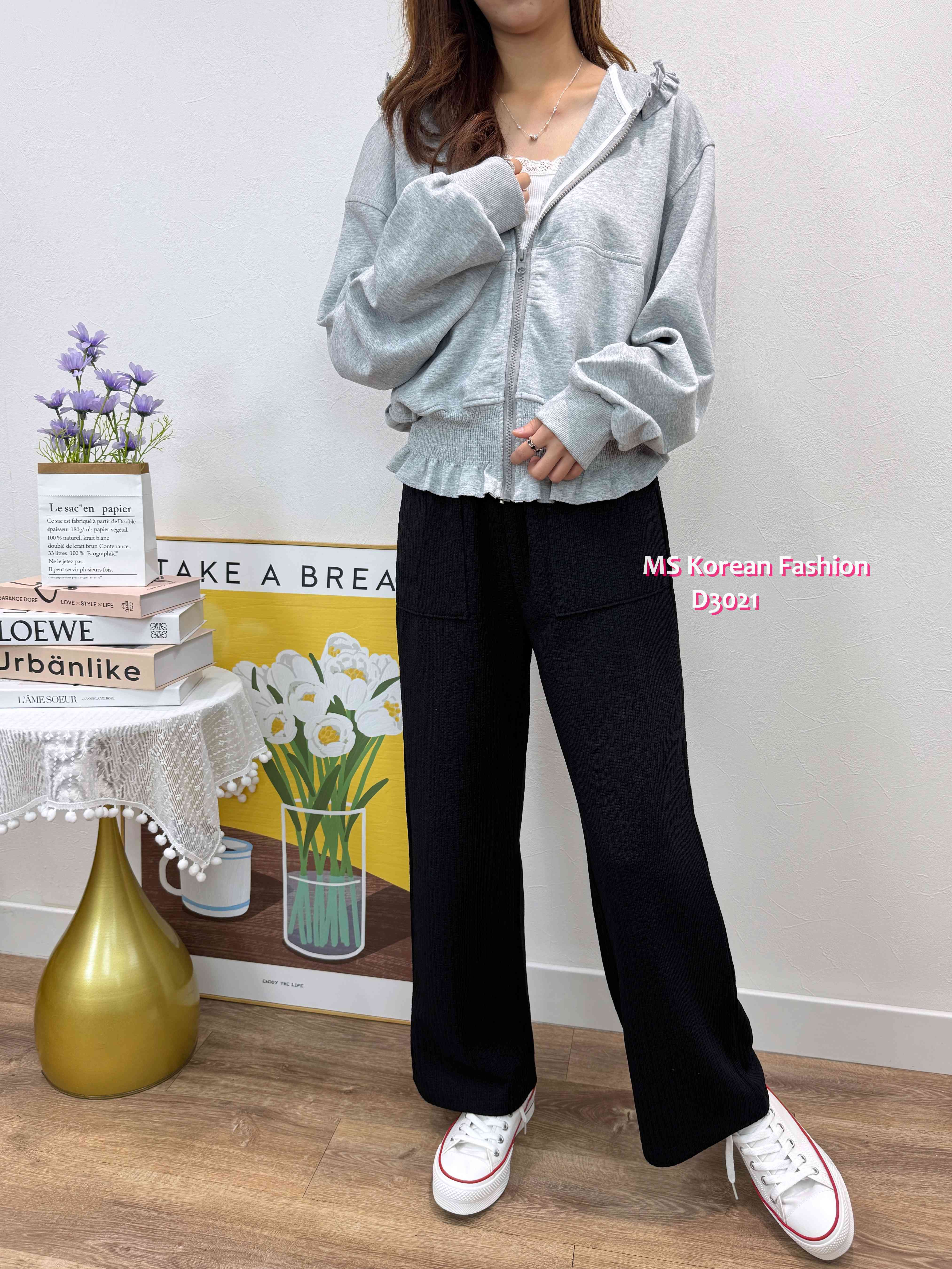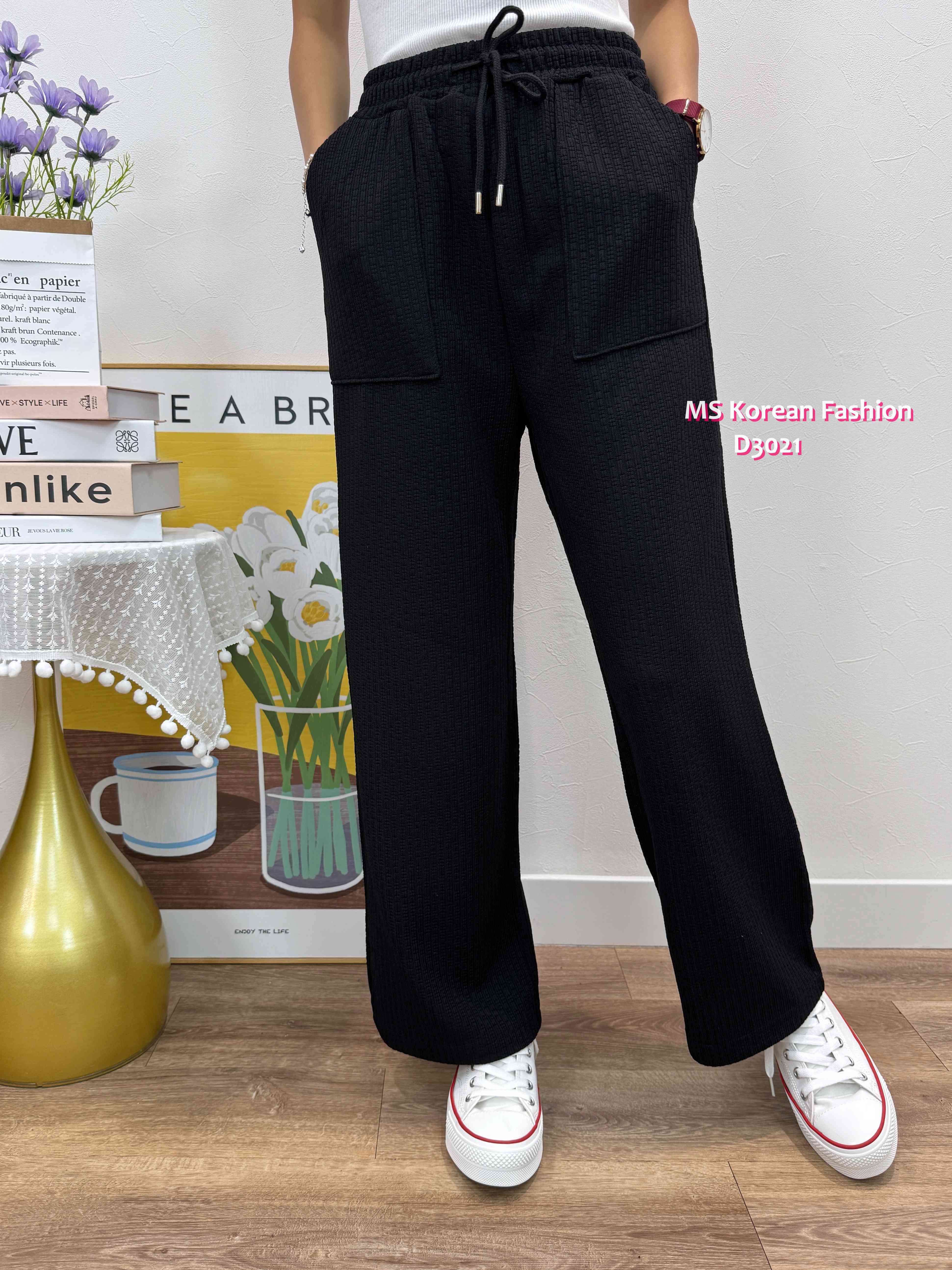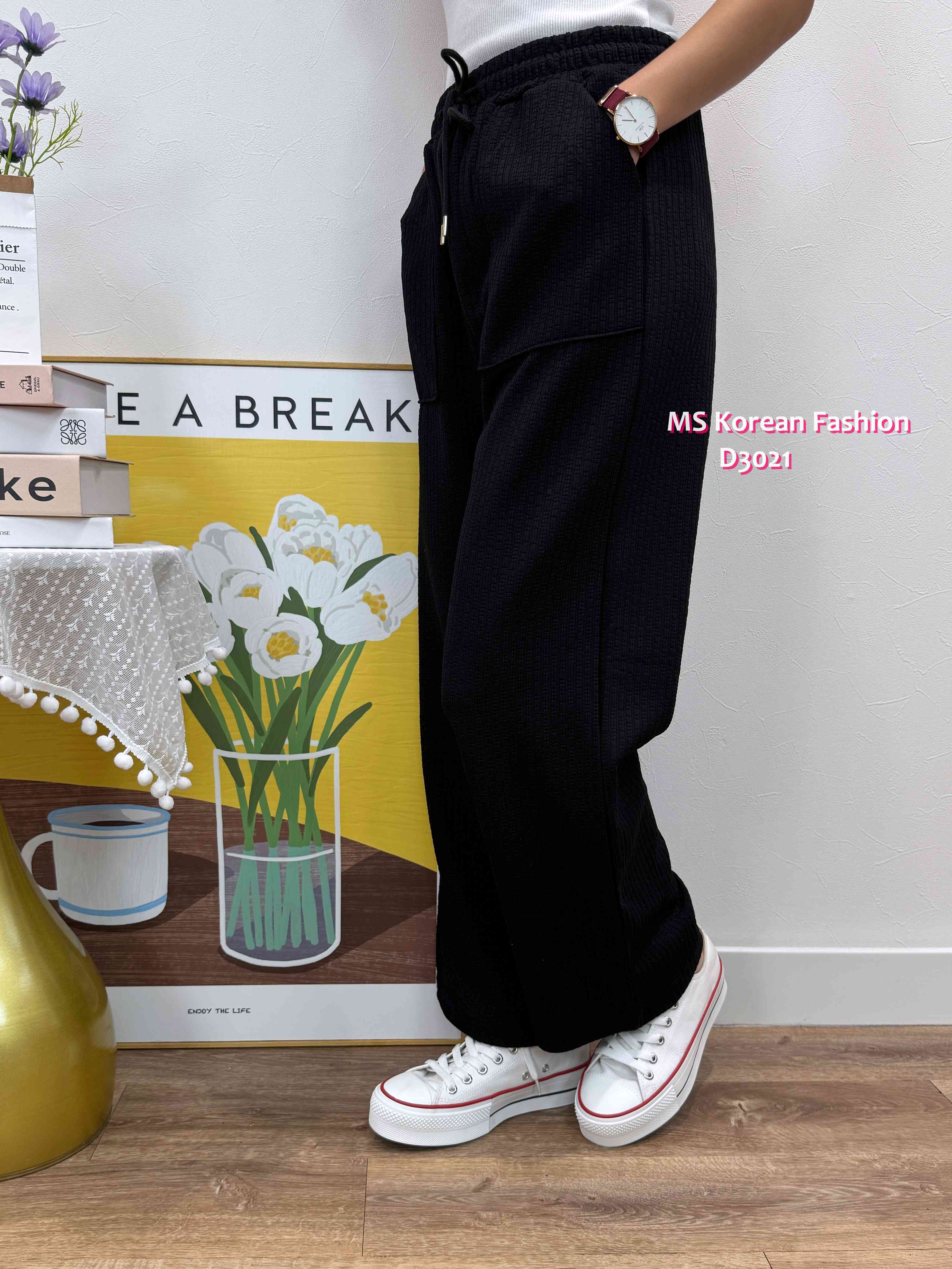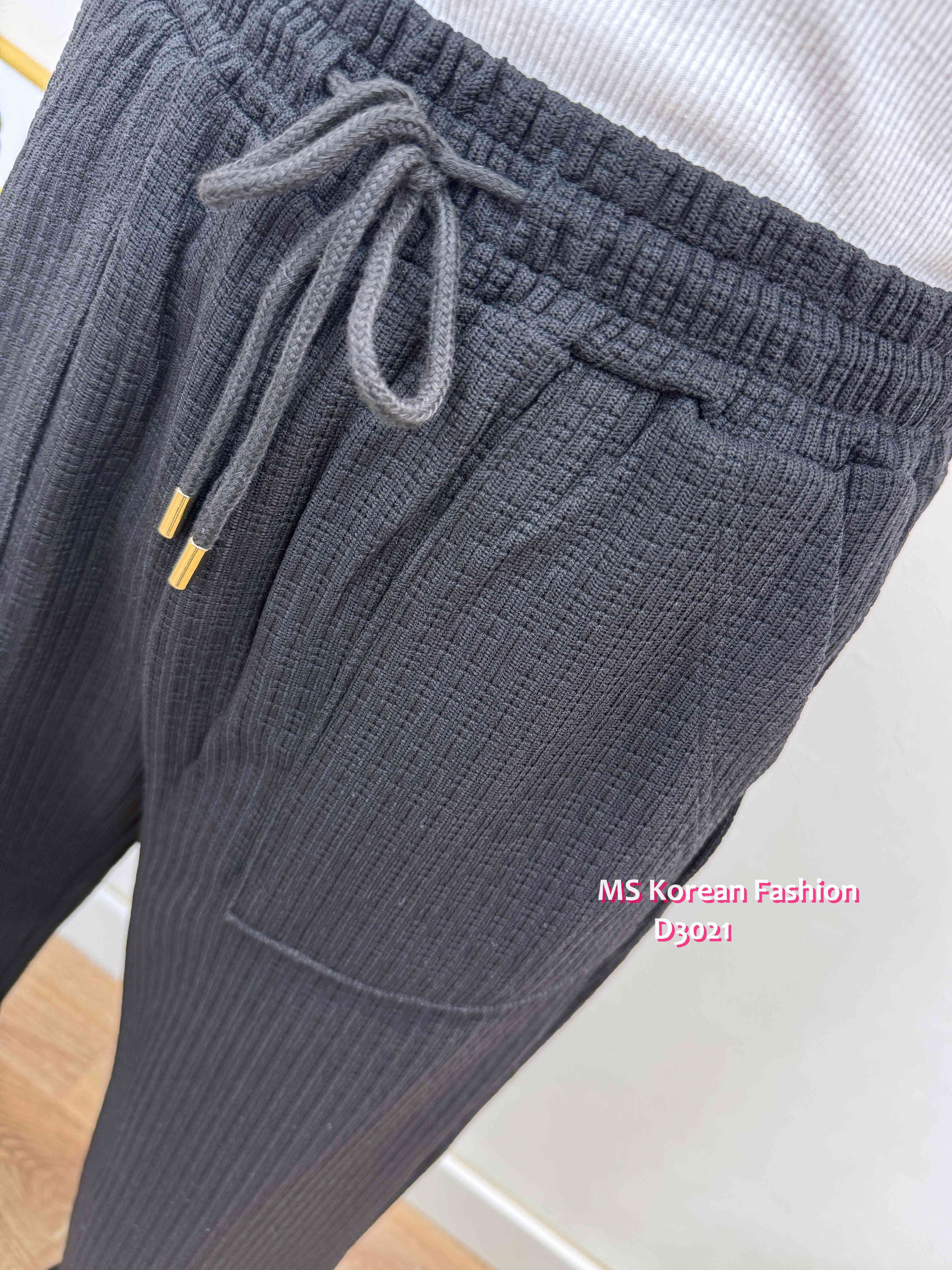 D3021 韓國🇰🇷暗直紋闊筒休閒褲