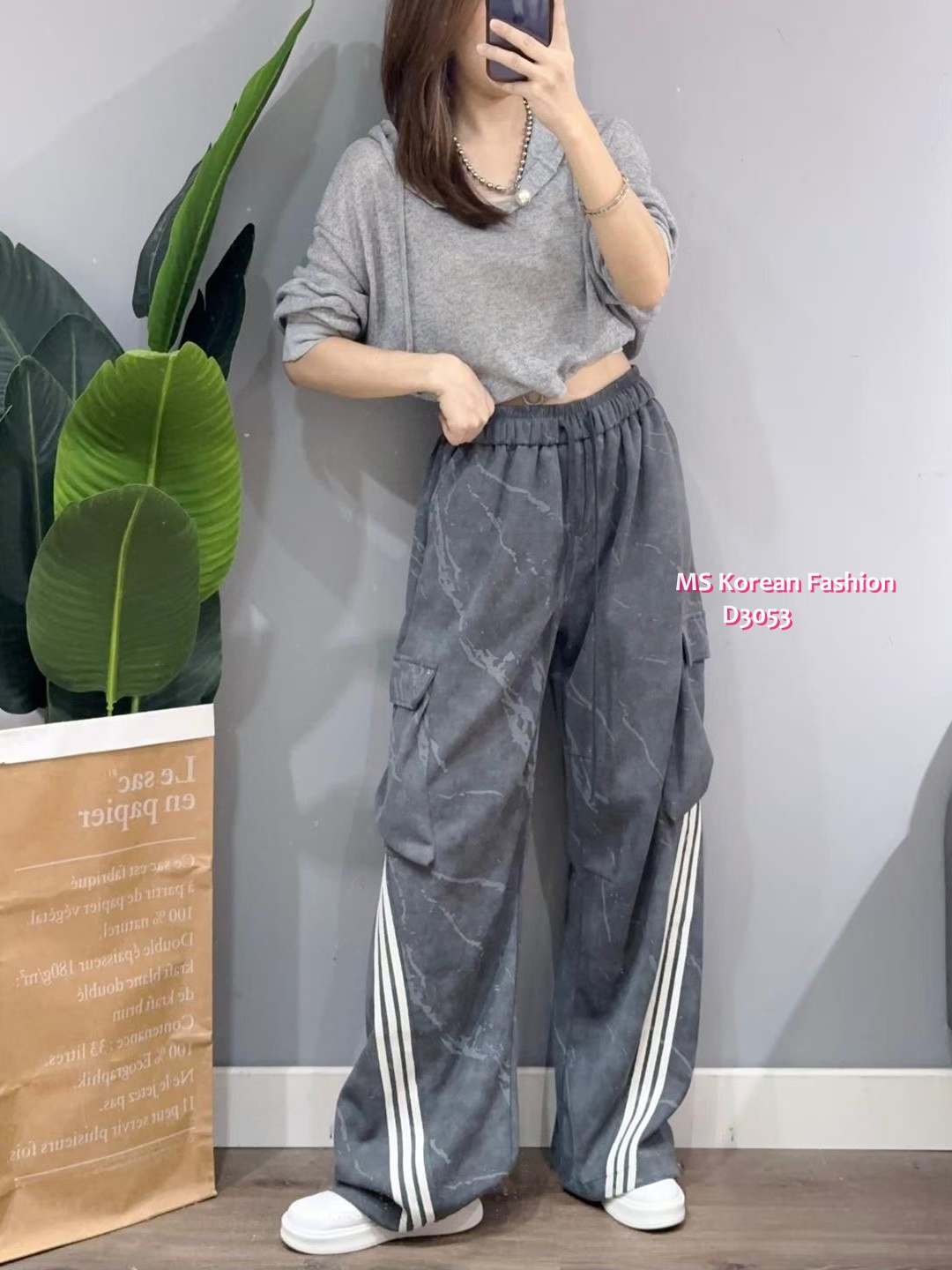 D3053 韓國🇰🇷型格三間闊筒褲