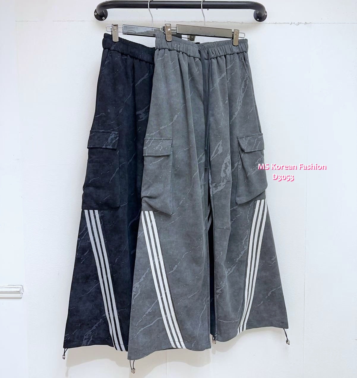 [訂貨約7-10個工作天] 💰💞Happy Price: $199 型格三間闊筒褲 全橡筋腰可索繩 前後都有袋好方便👍 褲腳可以索繩架 鬆身cutting舒服又stylish😎 黑、灰 2色 尺寸 腰27">拉開46"/坐圍46">拉開52"/長42" 📫1件加$15包順豐站/自助櫃,2件包順豐(順豐站/自助櫃/工商/住宅) 📱查詢及Order可Inbox或Whatsapp 6317 3061