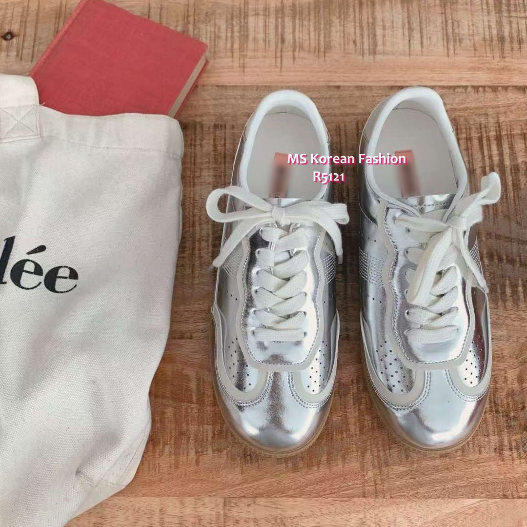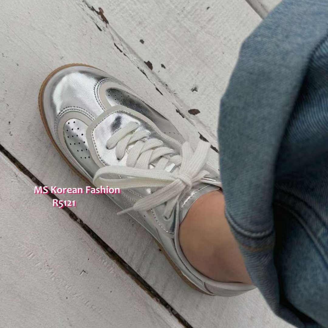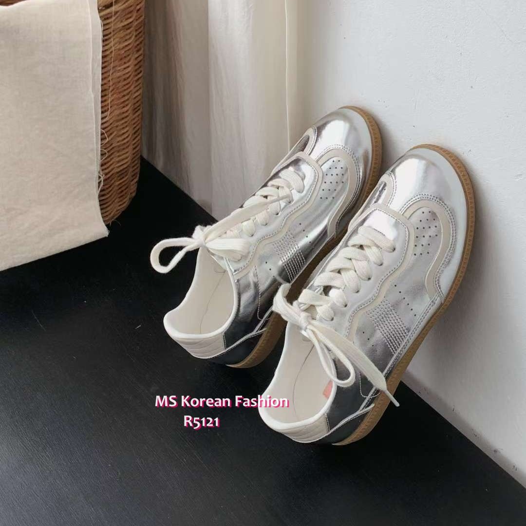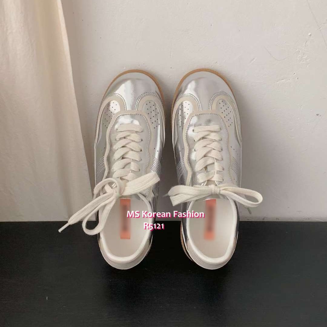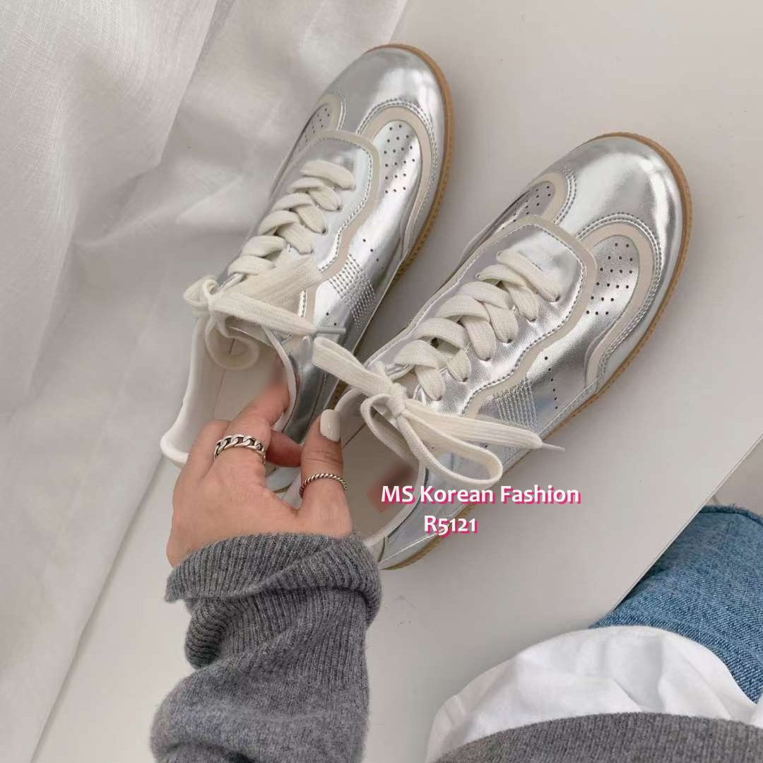 [訂貨約7-10個工作天] 💰💞Happy Price: $379(包順豐) 鍾意銀色鞋既靚靚呢款唔好錯過呀👏 勁靚銀白配雙色Sneakers👟 採用銀光堅韌卻柔軟的材質製作 搭配象牙白色皮革 呈現清新又時尚既感覺🌼 鞋面與側邊的弧形剪裁完美修飾腳型 讓雙腳睇起黎更加纖細優雅💯 內有1.5cm軟鞋墊 著上腳好舒服 加埋鞋底防滑設計夠晒貼心 😎😎 Size 230-250(偏細/著開37可訂240) 📏韓國鞋正常尺碼對照📏 230=36碼 235=37碼 240=38碼 245=39碼 250=40碼 📫1對包順豐(順豐站/自助櫃/工商/住宅) 📱查詢及Order可Inbox或Whatsapp 6317 3061