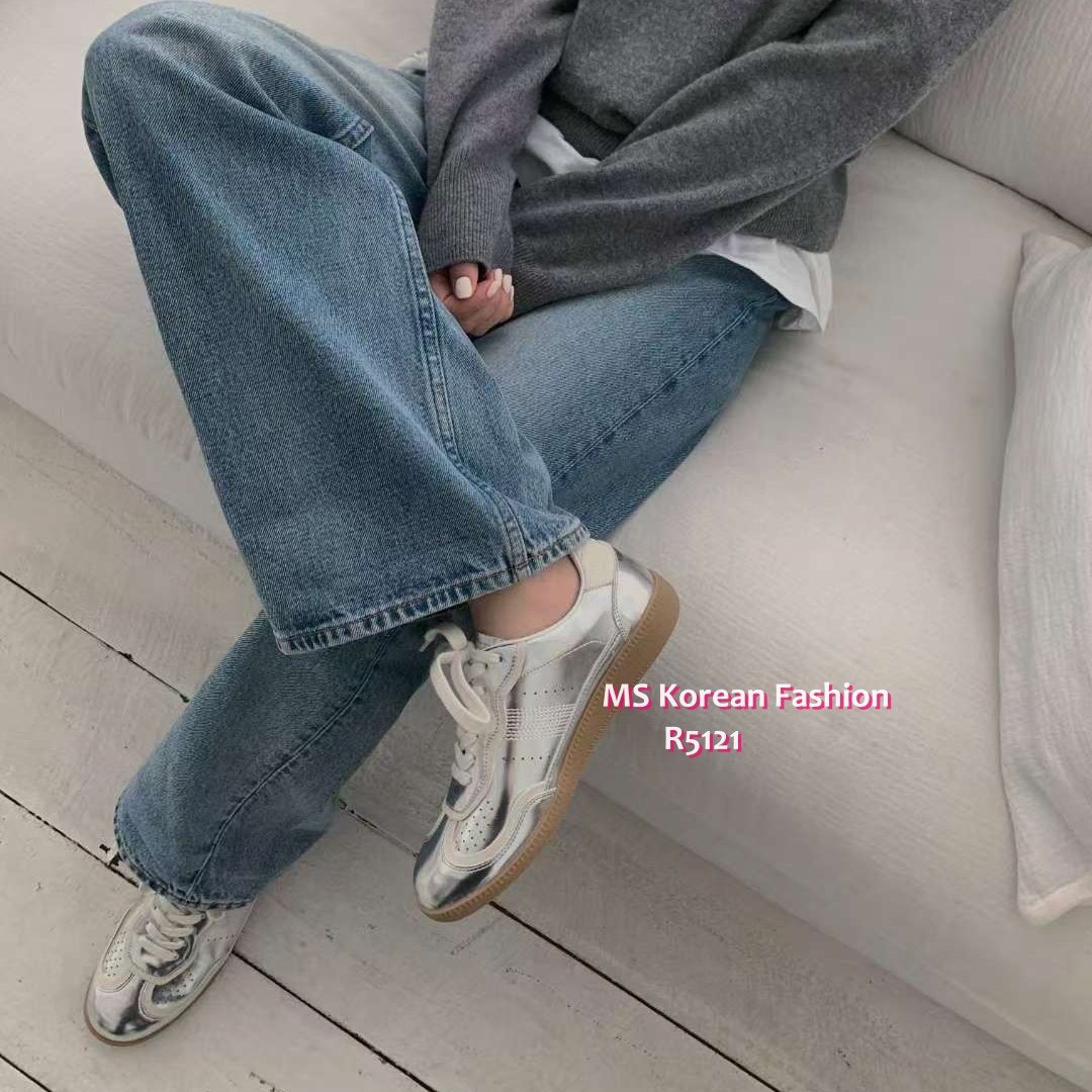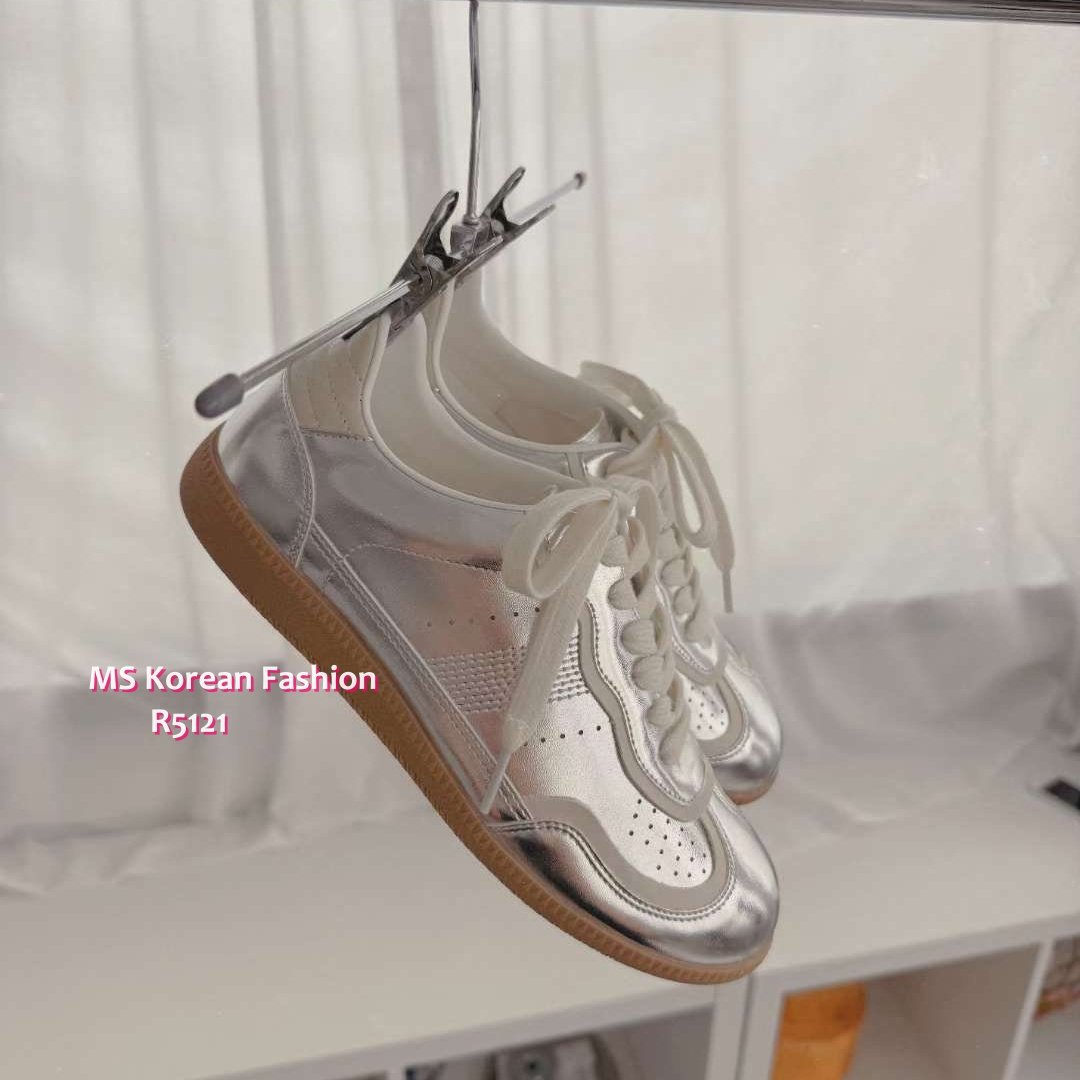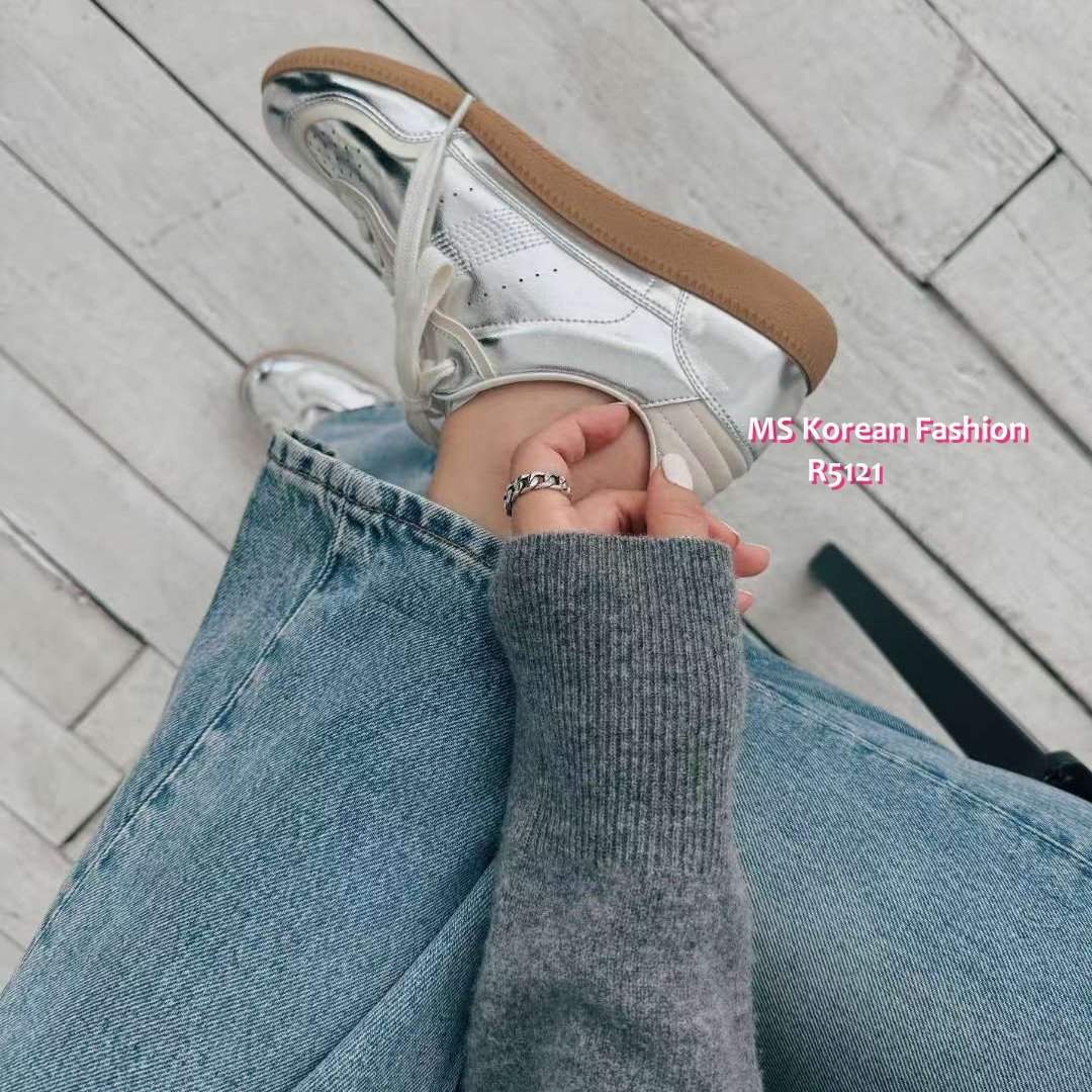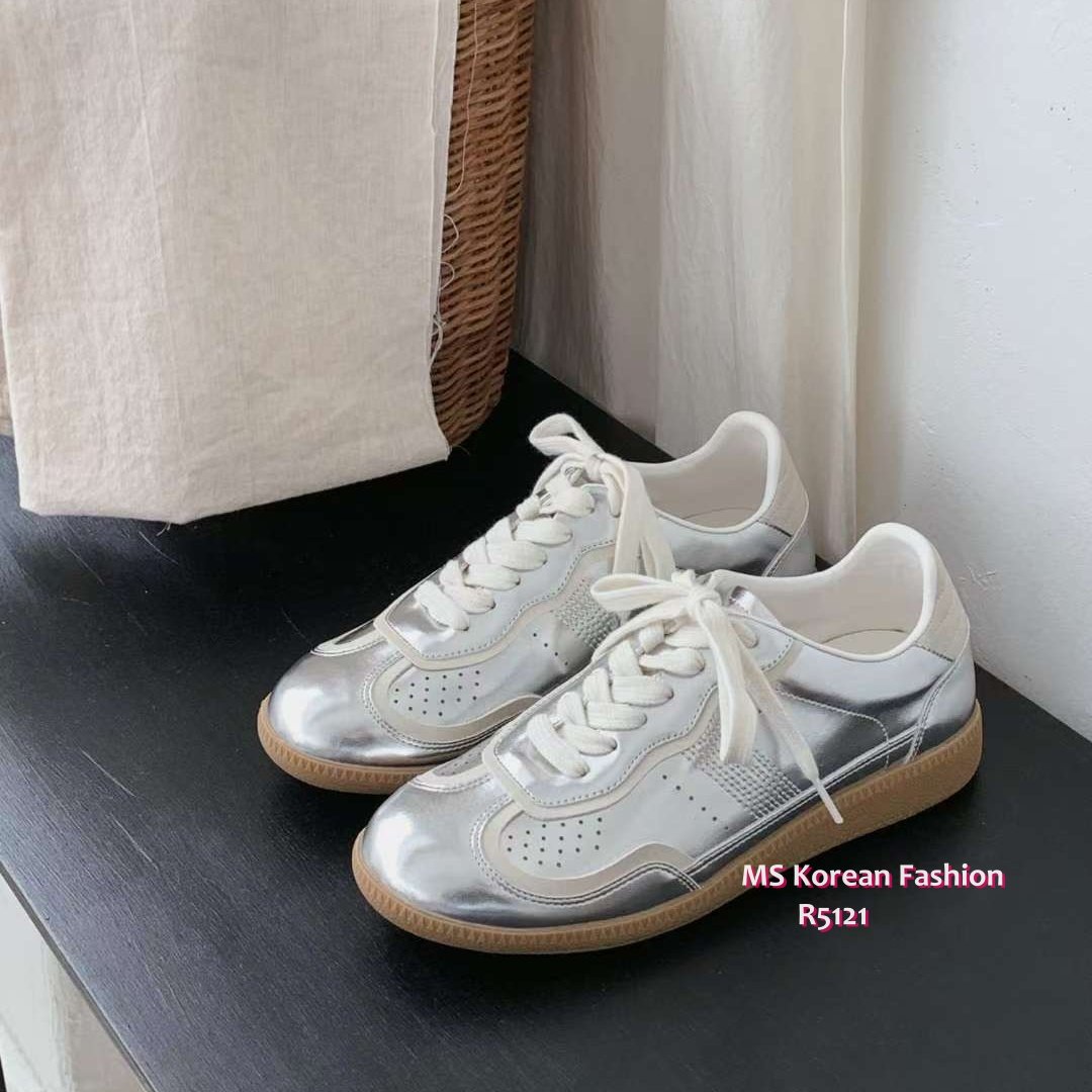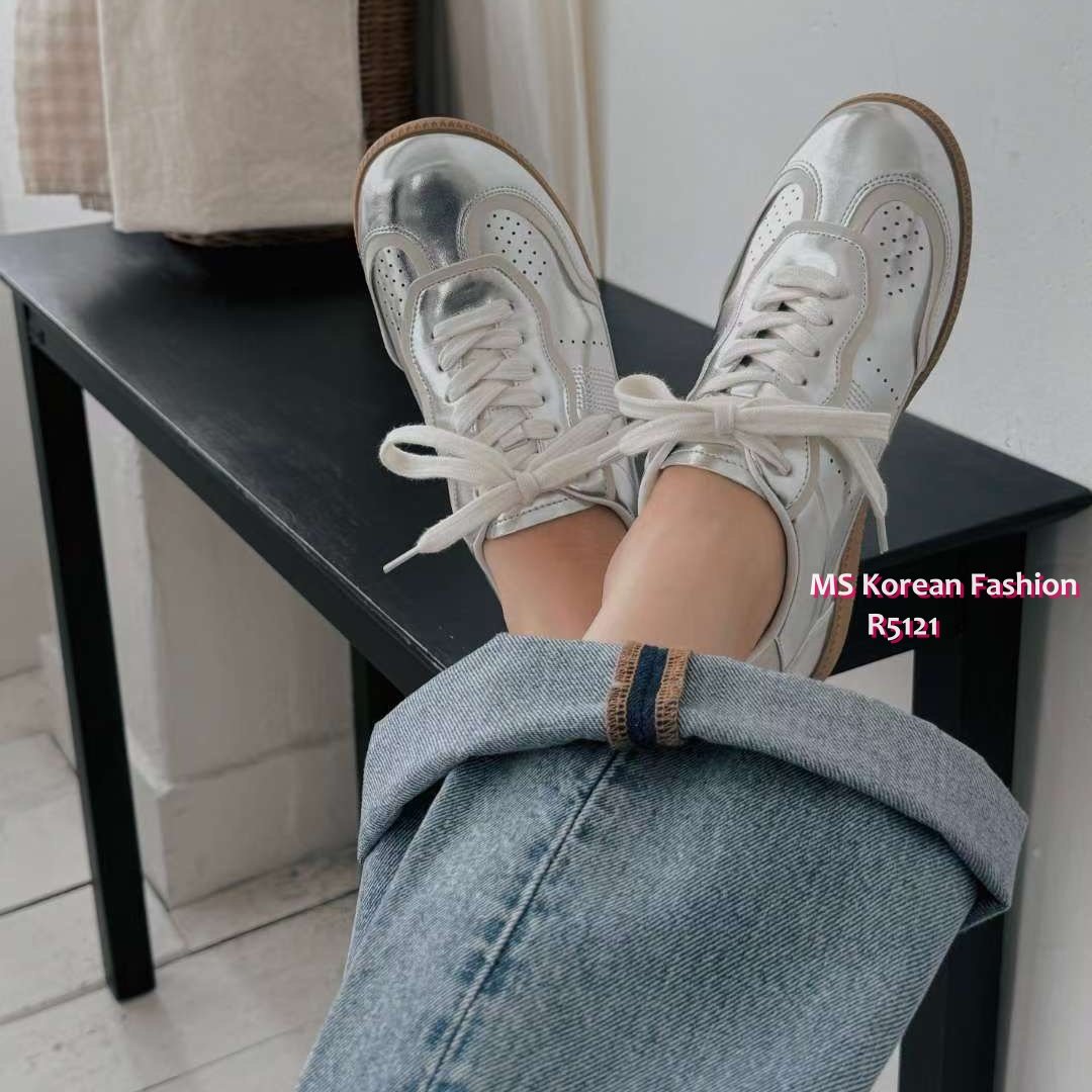 [訂貨約7-10個工作天] 💰💞Happy Price: $379(包順豐) 鍾意銀色鞋既靚靚呢款唔好錯過呀👏 勁靚銀白配雙色Sneakers👟 採用銀光堅韌卻柔軟的材質製作 搭配象牙白色皮革 呈現清新又時尚既感覺🌼 鞋面與側邊的弧形剪裁完美修飾腳型 讓雙腳睇起黎更加纖細優雅💯 內有1.5cm軟鞋墊 著上腳好舒服 加埋鞋底防滑設計夠晒貼心 😎😎 Size 230-250(偏細/著開37可訂240) 📏韓國鞋正常尺碼對照📏 230=36碼 235=37碼 240=38碼 245=39碼 250=40碼 📫1對包順豐(順豐站/自助櫃/工商/住宅) 📱查詢及Order可Inbox或Whatsapp 6317 3061
