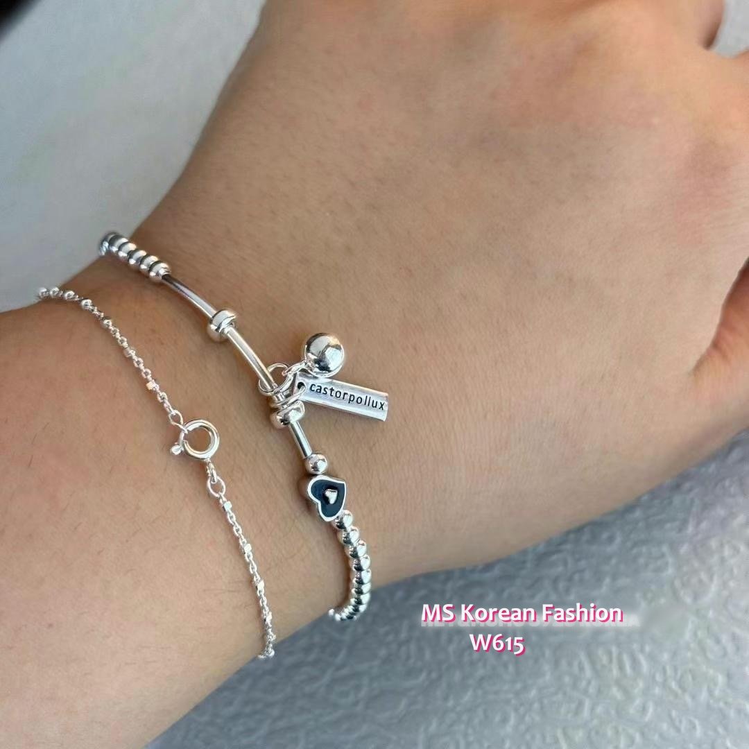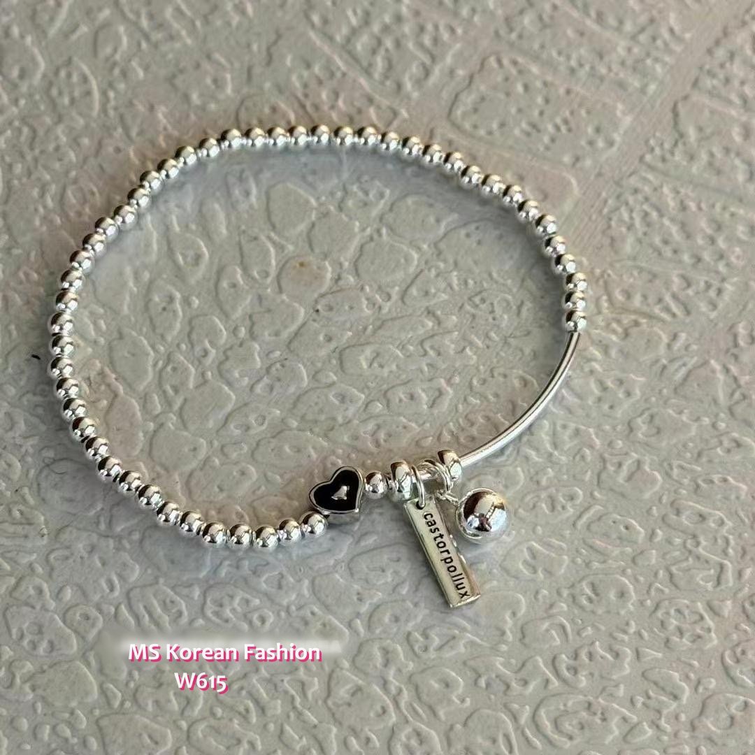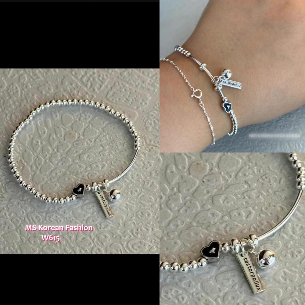W615 韓國🇰🇷S925純銀愛心英文牌彈力繩手鏈