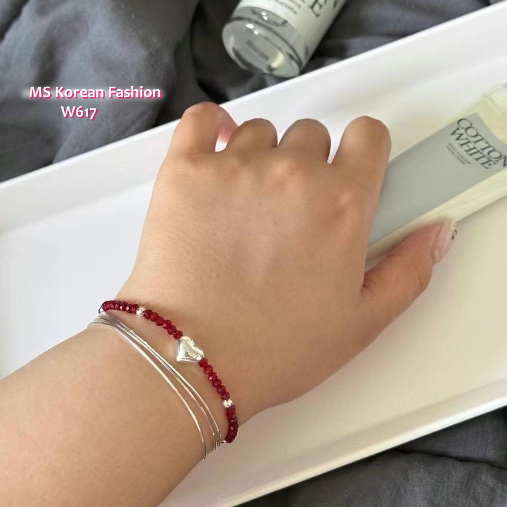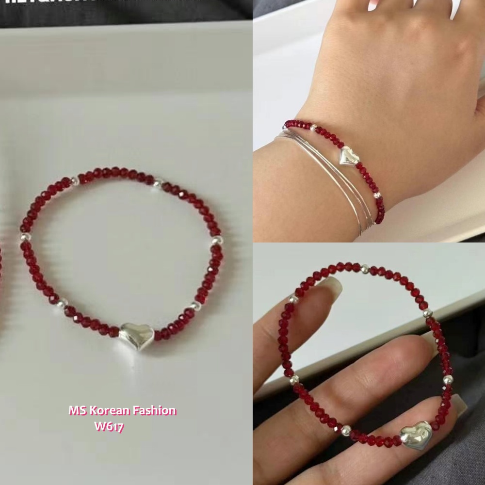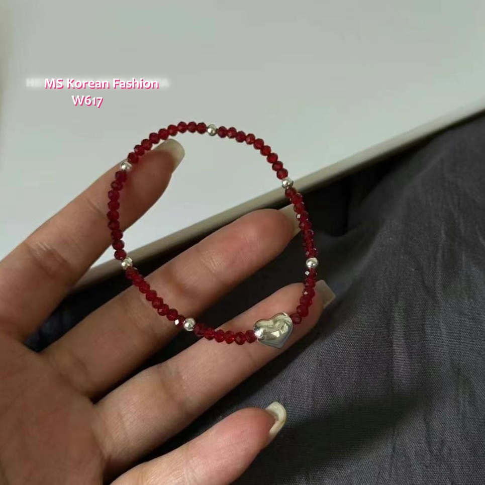 W617 韓國🇰🇷S925切割紅水晶愛心彈力繩手鏈