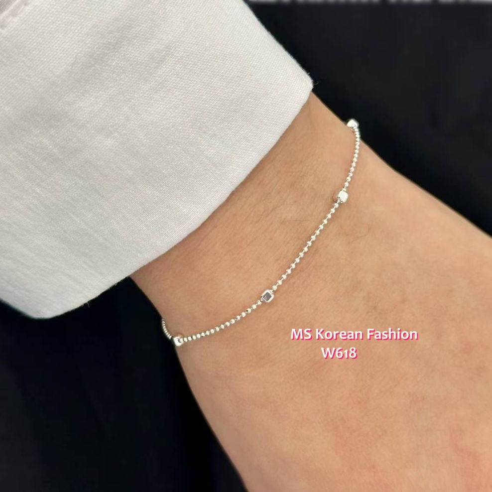 W618 韓國🇰🇷S925純銀銀豆方塊拼接手鏈