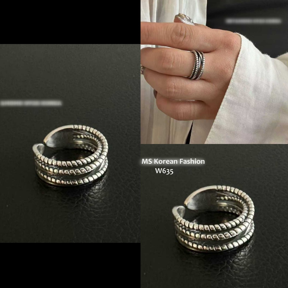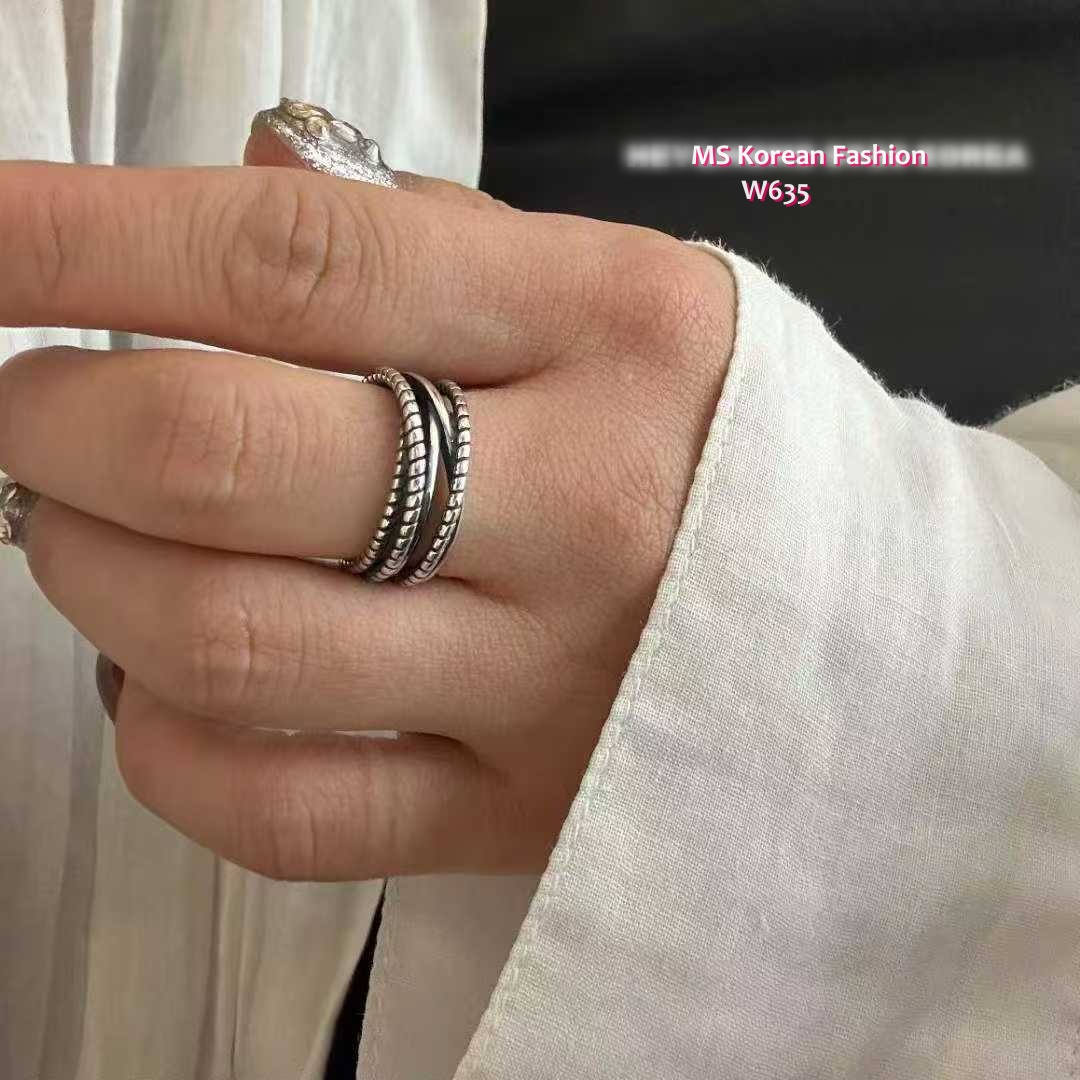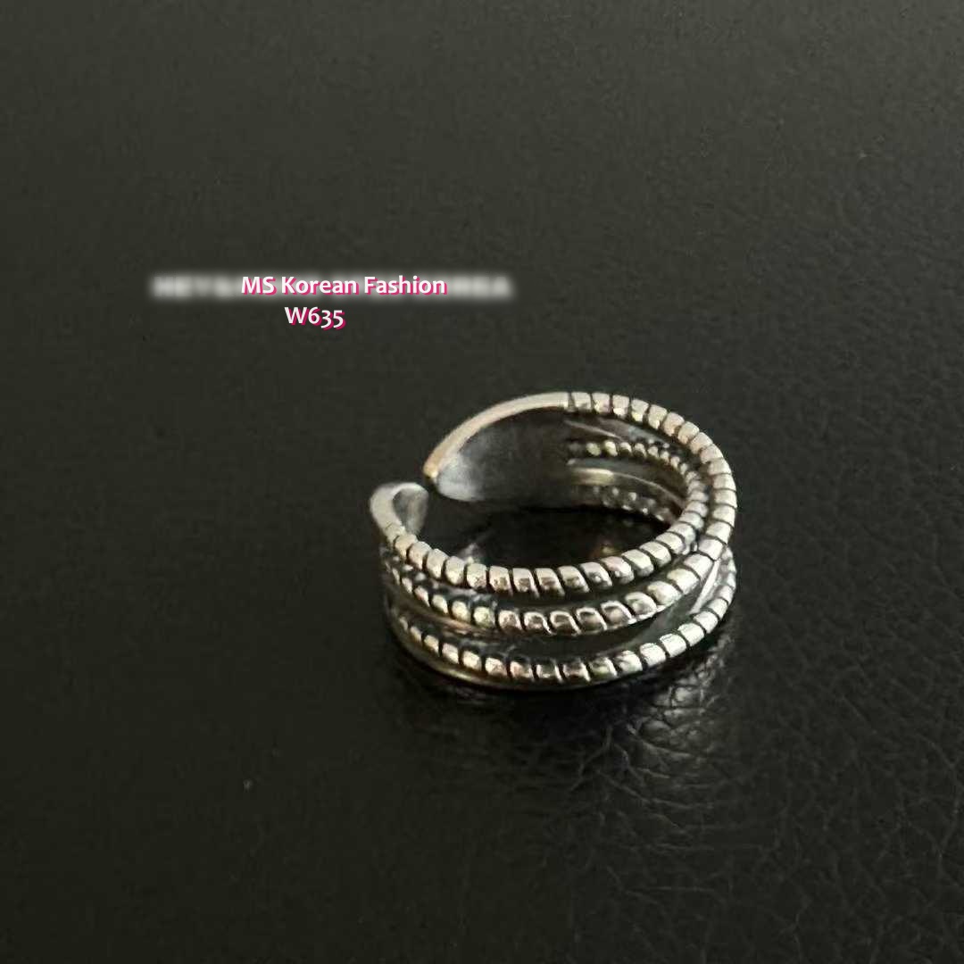 W635 韓國🇰🇷S925純銀麻花紋多層線條戒指