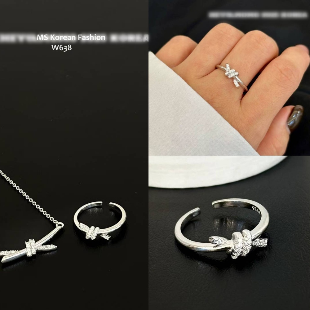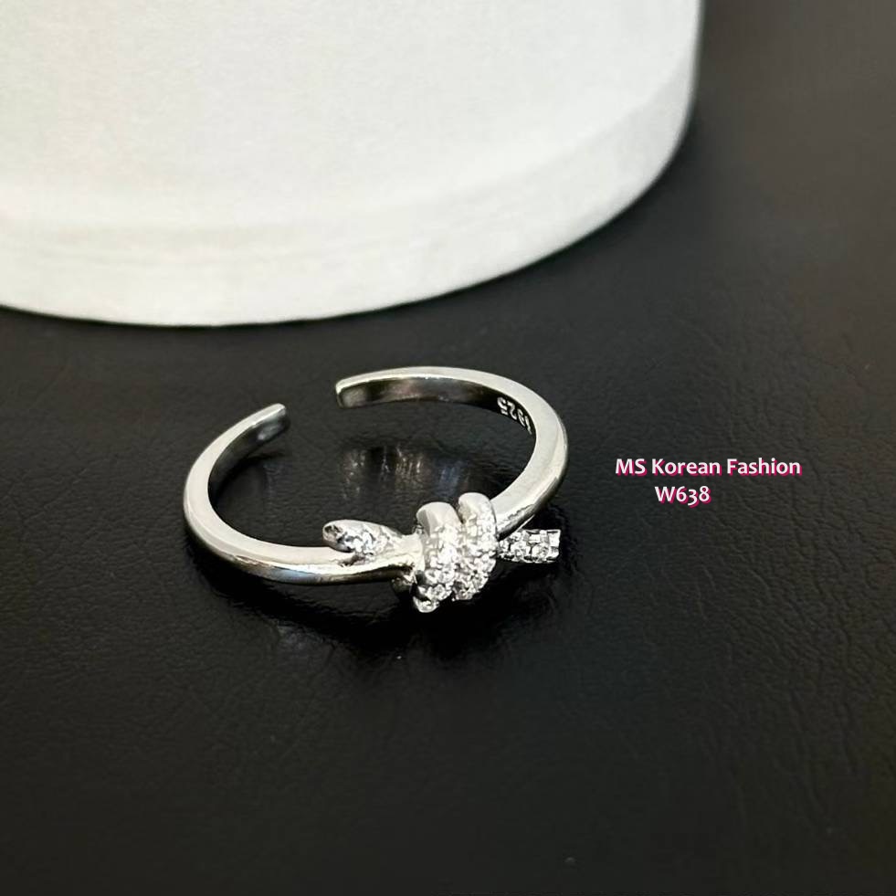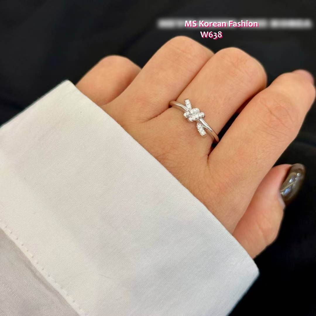 W638 韓國🇰🇷S925純銀白鑽打結戒指