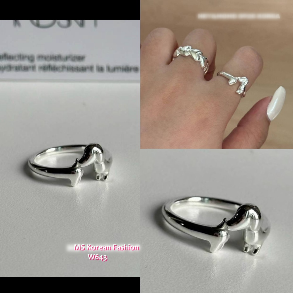 W643 韓國🇰🇷S925純銀臘腸狗前開口戒指