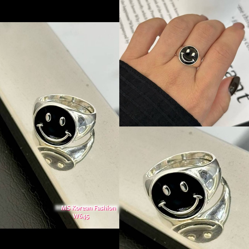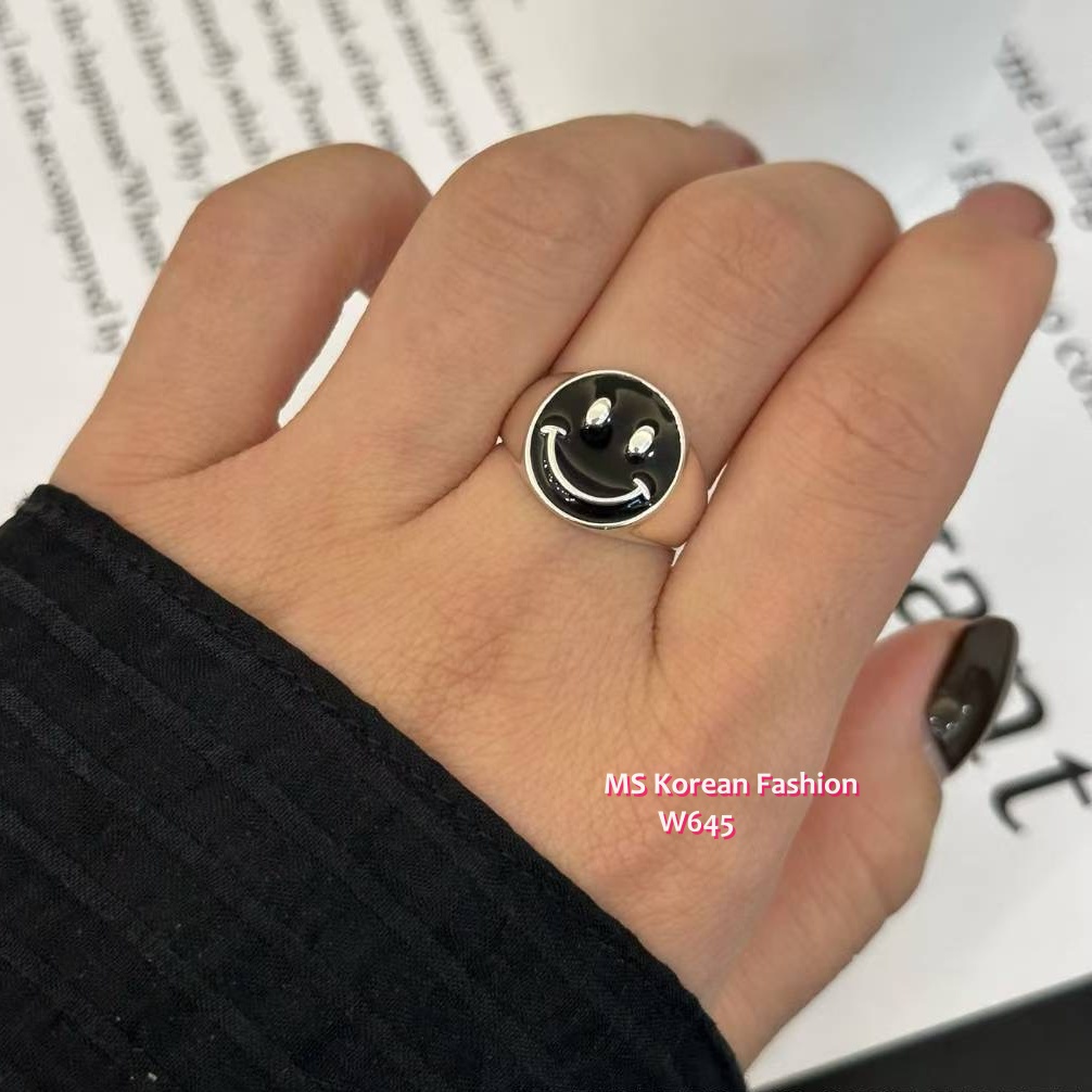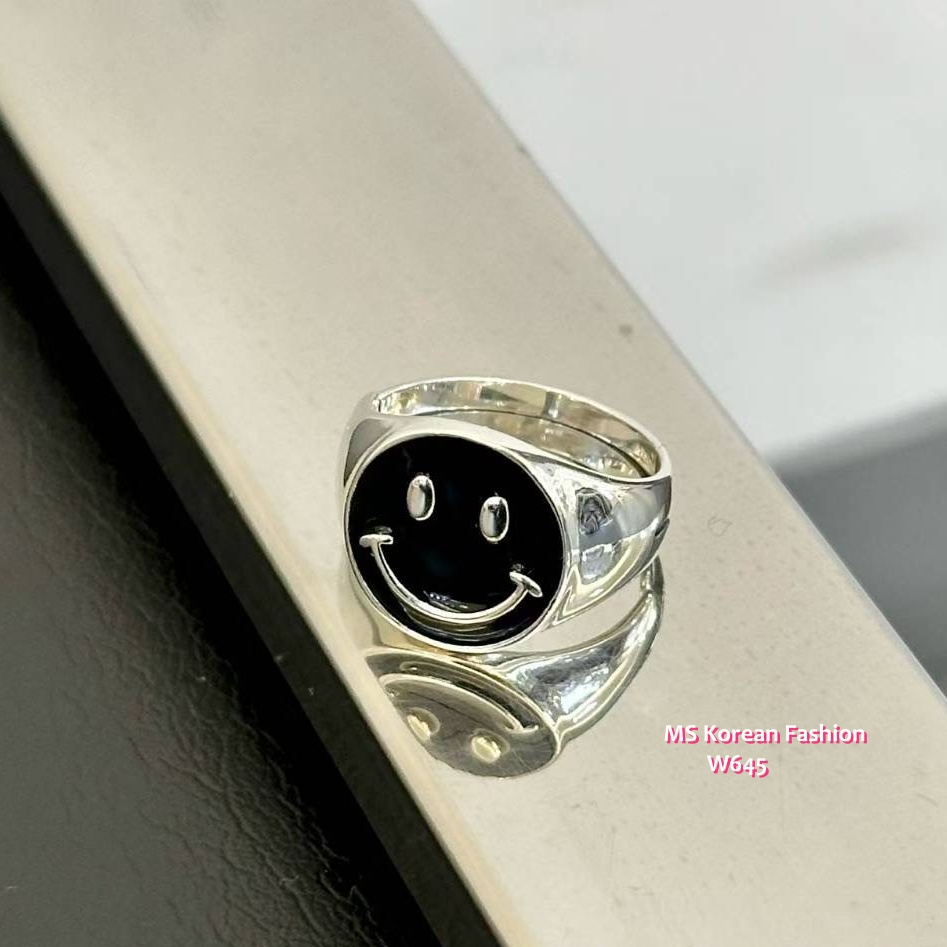 W645 韓國🇰🇷S925純銀小黑臉哈哈笑戒指