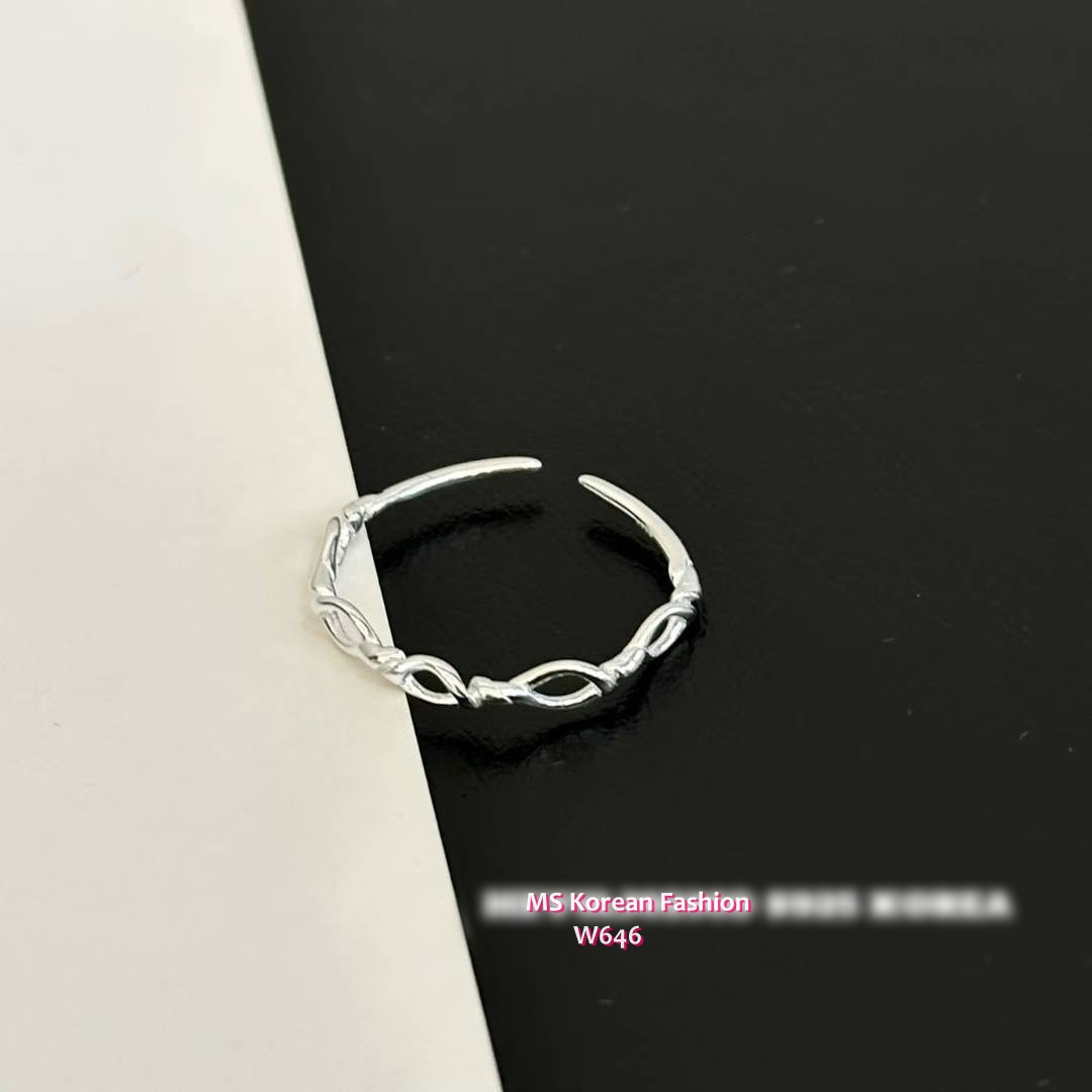 W646 韓國🇰🇷S925純銀鏤空麻花編織戒指