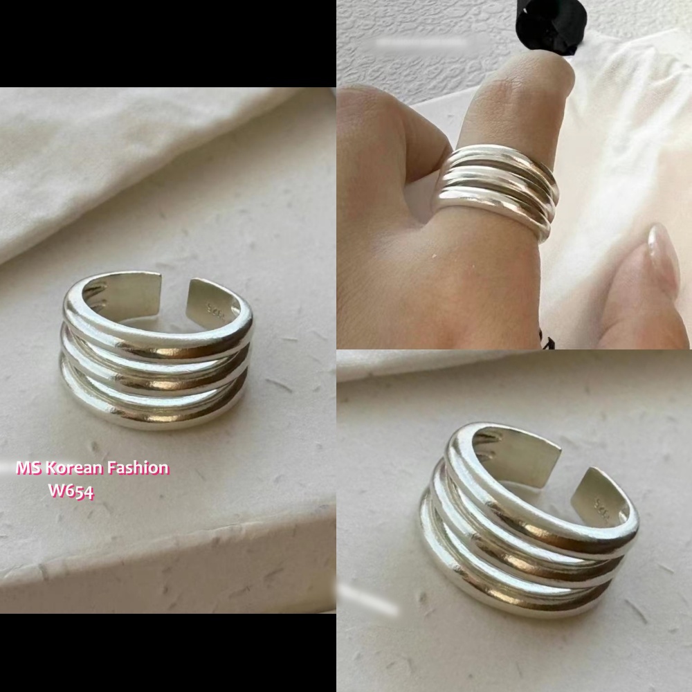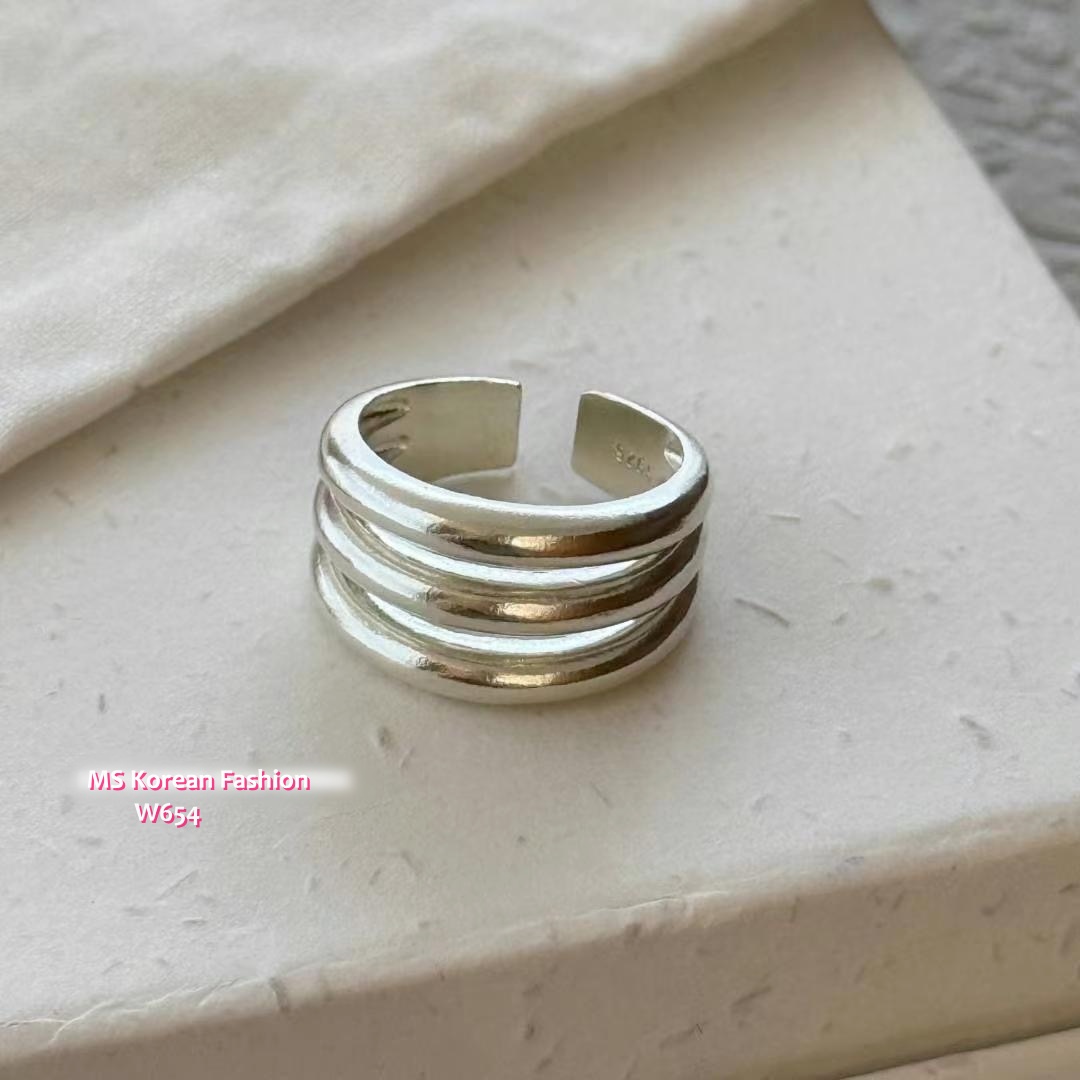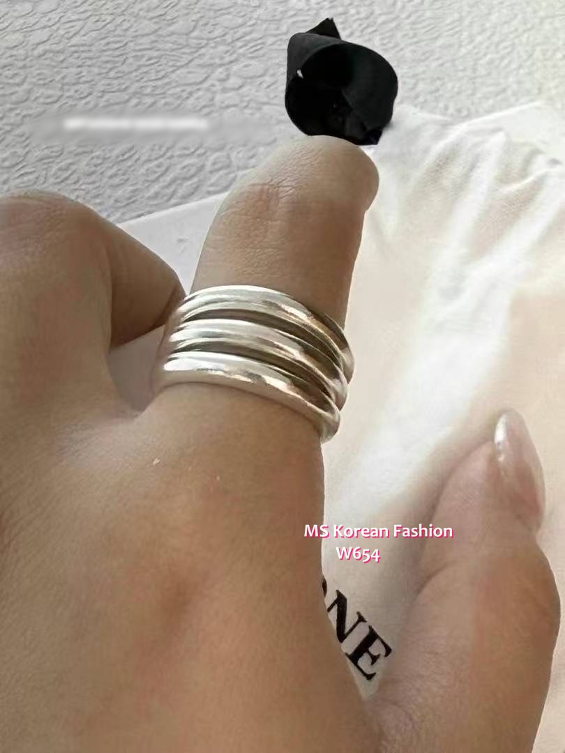 W654 韓國🇰🇷S925純銀多層拼接磨紗感戒指