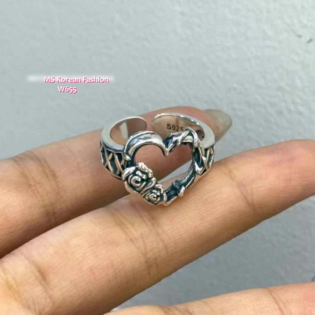 W655 韓國🇰🇷S925純銀鏤空愛心玫瑰花戒指