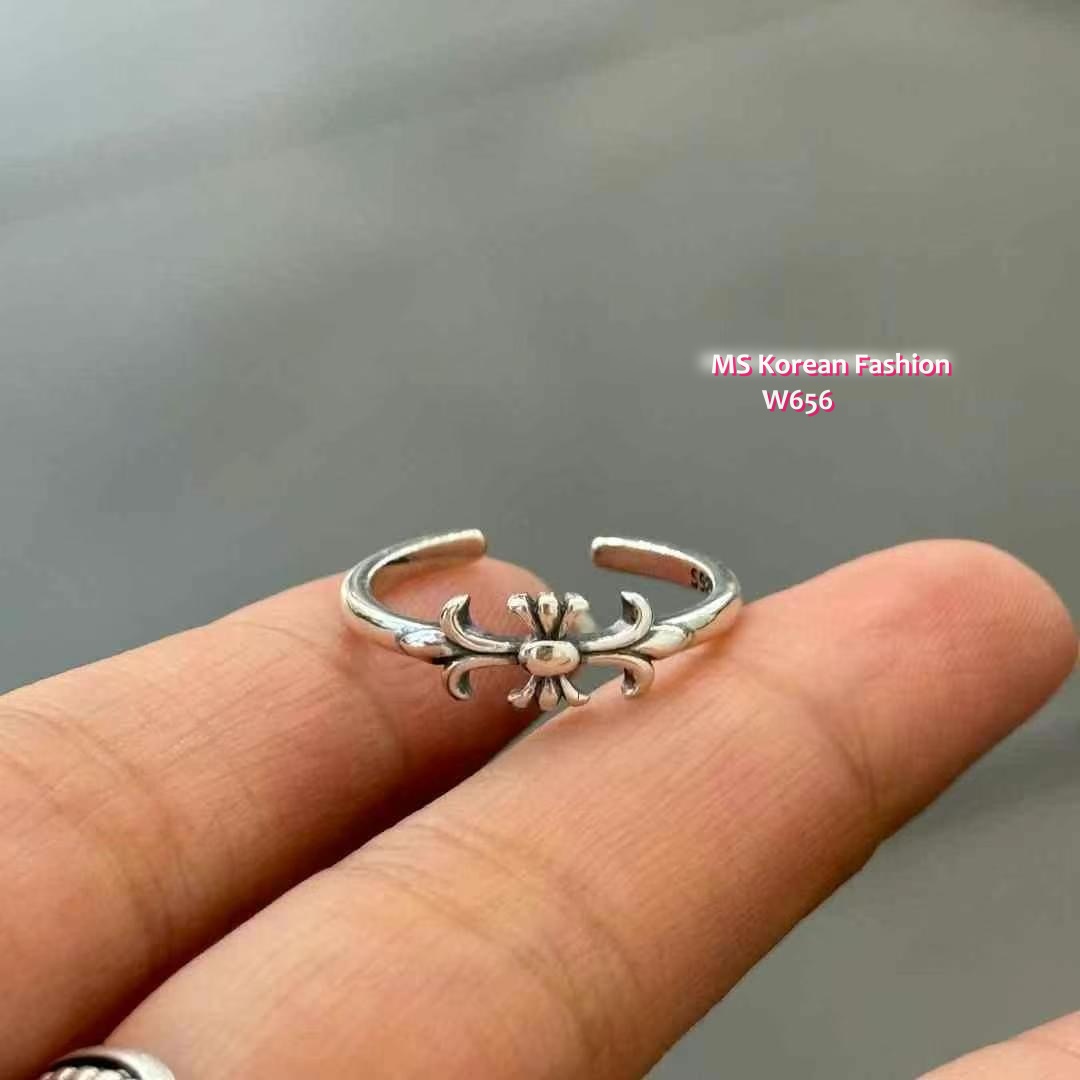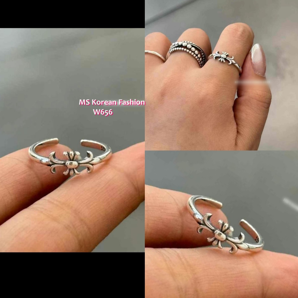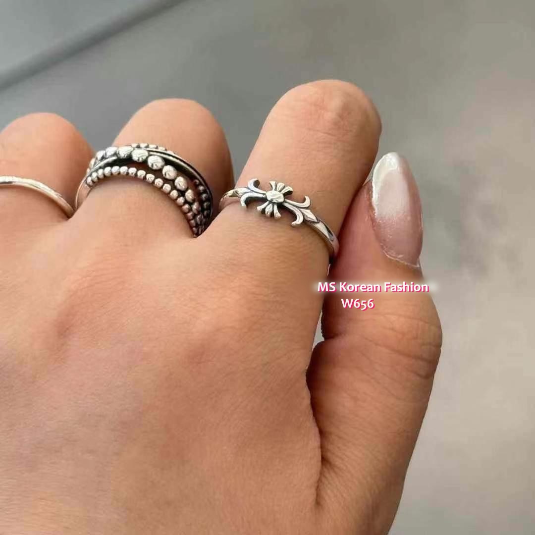 W656 韓國🇰🇷S925復古黑羅心十字花戒指