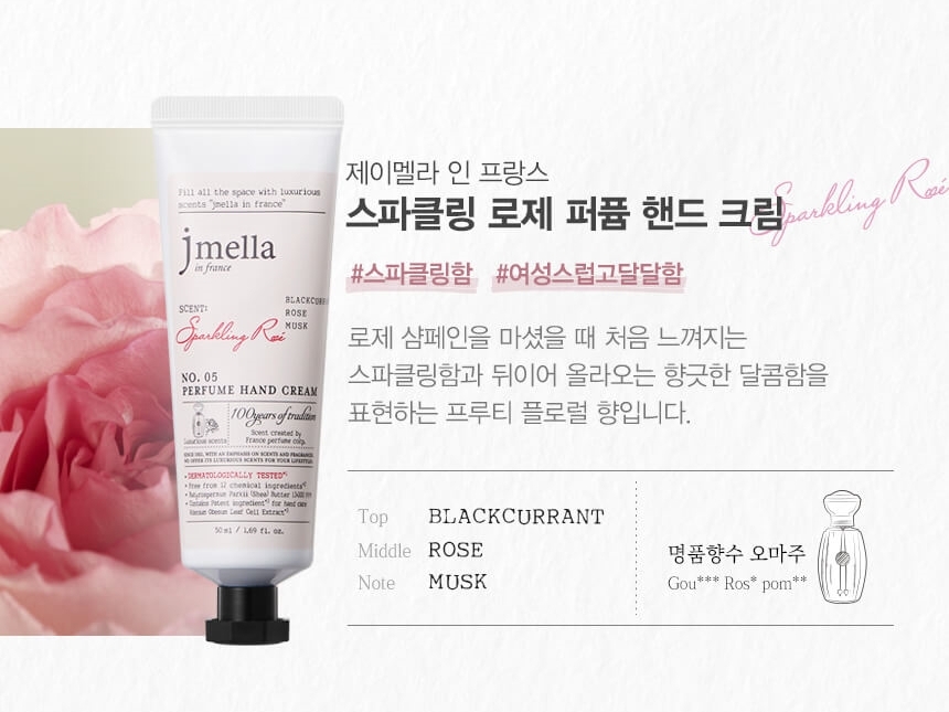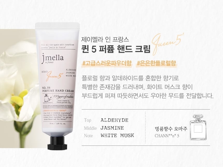 [訂貨約7-10個工作天] 💰🧧著數推介: $129🧧 【不可與其他優惠同時使用】 秋高氣爽天氣涼涼地又乾燥🍂🍂 介紹呢款平靚正handcream比大家 韓國jmella香氛護手霜 品牌透過法國高級香料🌺 配合世界級名牌香水靈感 調配出不同香味既護手霜👍👍 1盒5支(不同香味), 每支50ml 跟埋靚包裝禮盒, 聖誕送比朋友或交換禮物都一流🎁 平平地啱晒交換禮物budget又唔失禮🤣 No.01 Blooming Peony (盛開牡丹)🌻 由柑橘、牡丹、白麝香組成花香 No.02 Femme Fatale (蛇蠍美人)🥰 由荔枝、百合、香草組成清新香氛 No.03 Lime & Basil (青檸羅勒)🍋 由青檸、羅勒、柑橘組成自然清新柑橘香 No.04 Queen 5👑 融合花香和醛香,讓人感受到柔和既白麝香,溫暖又優雅 No.05 Sparkling Rosé (香檳玫瑰)🌹 由黑醋栗、玫瑰、麝香組成,清新甜美而感性既玫瑰花香 📫1件加$15包順豐站/智能櫃,2件包順豐(順豐站/智能櫃/工商/住宅) 📱查詢及Order可Inbox或Whatsapp 6317 3061