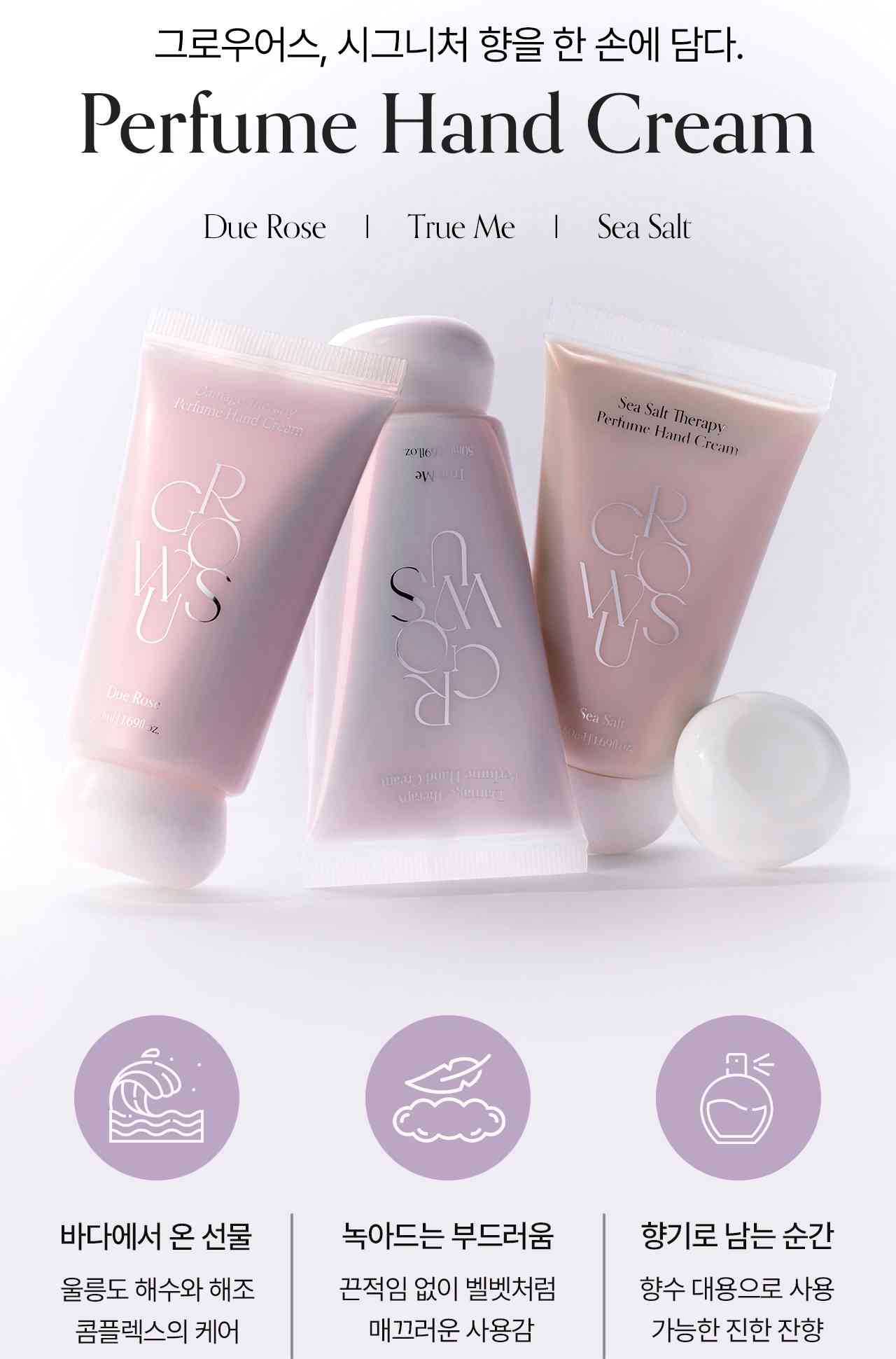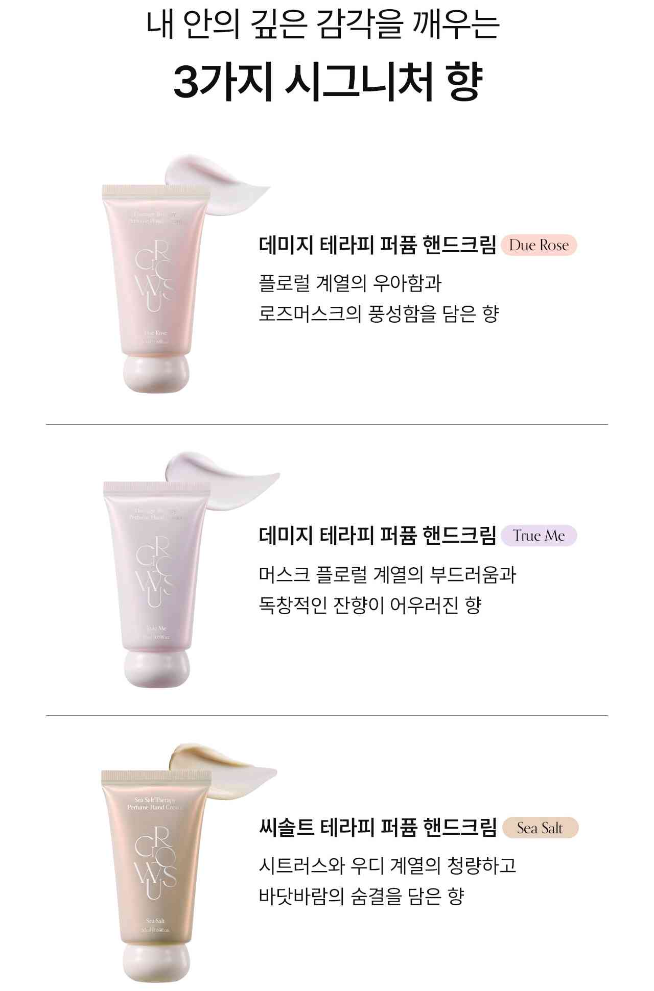 [訂貨約7-10個工作天] 💰💞Happy Price: $109-1支/$299-1套3支(每種味各1) 秋高氣爽天氣涼涼地又乾燥🍂🍂 介紹呢款好正既handcream比大家 韓國Growus修護香氛護手霜😻 質地清爽不黏膩, 快速吸收 既可滋潤雙手, 改善皺紋, 增加皮膚彈性 又帶來陣陣香氣, 搽完心情都靚D💯💯 1支50ml, 放手袋或office用都超方便 跟埋靚靚包裝盒, 送禮自用一流🎁 有3️⃣種香味比大家揀 1️⃣ Due Rose 玫瑰麝香🌹 ⭕前調:佛手柑 ⭕中調:玫瑰、白花 ⭕後調:柔和麝香 2️⃣ True Me 花香麝香🌺 💫前調:紫羅蘭 💫中調:依蘭依蘭 💫後調:白麝香 3️⃣ Sea Salt 海洋木質香🌊 🔆前調:柑橘 🔆中調:蘭花 🔆後調:癒創木 📫1件加$15包順豐站/智能櫃,2件包順豐(順豐站/智能櫃/工商/住宅) 📱查詢及Order可Inbox或Whatsapp 6317 3061