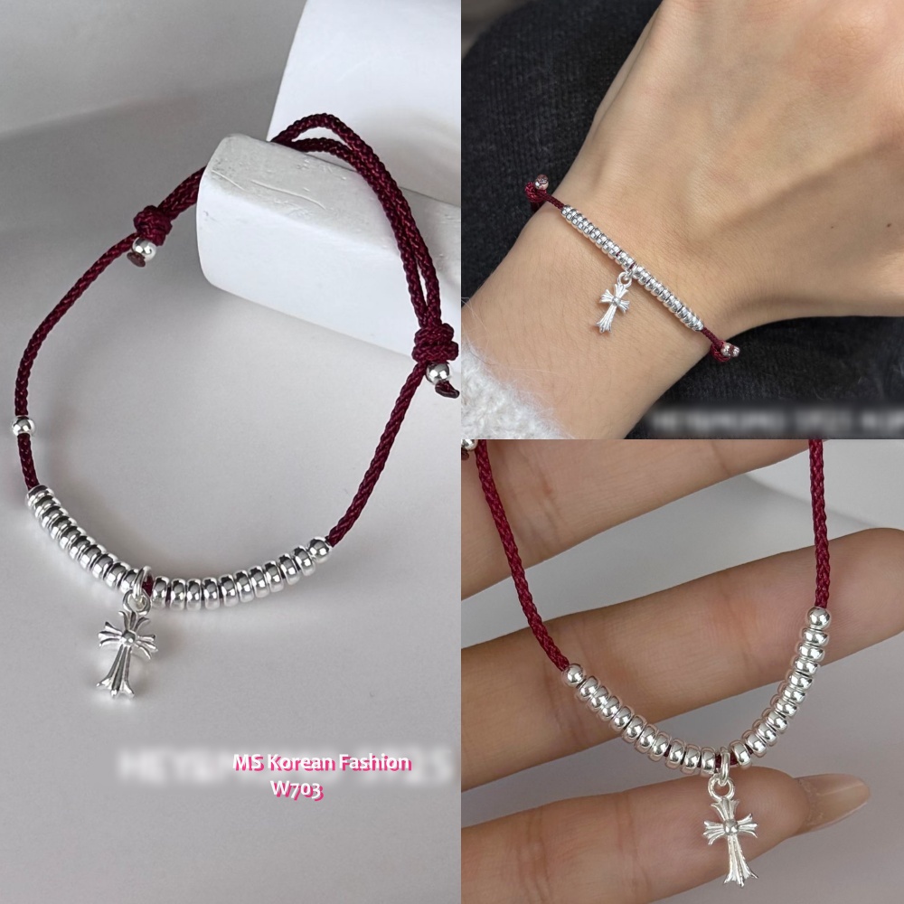 W703 韓國🇰🇷S925算盤珠十字架紅繩抽拉手鏈