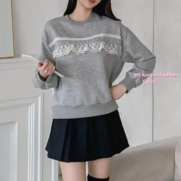 C3525 韓國🇰🇷拼lace毛底衛衣