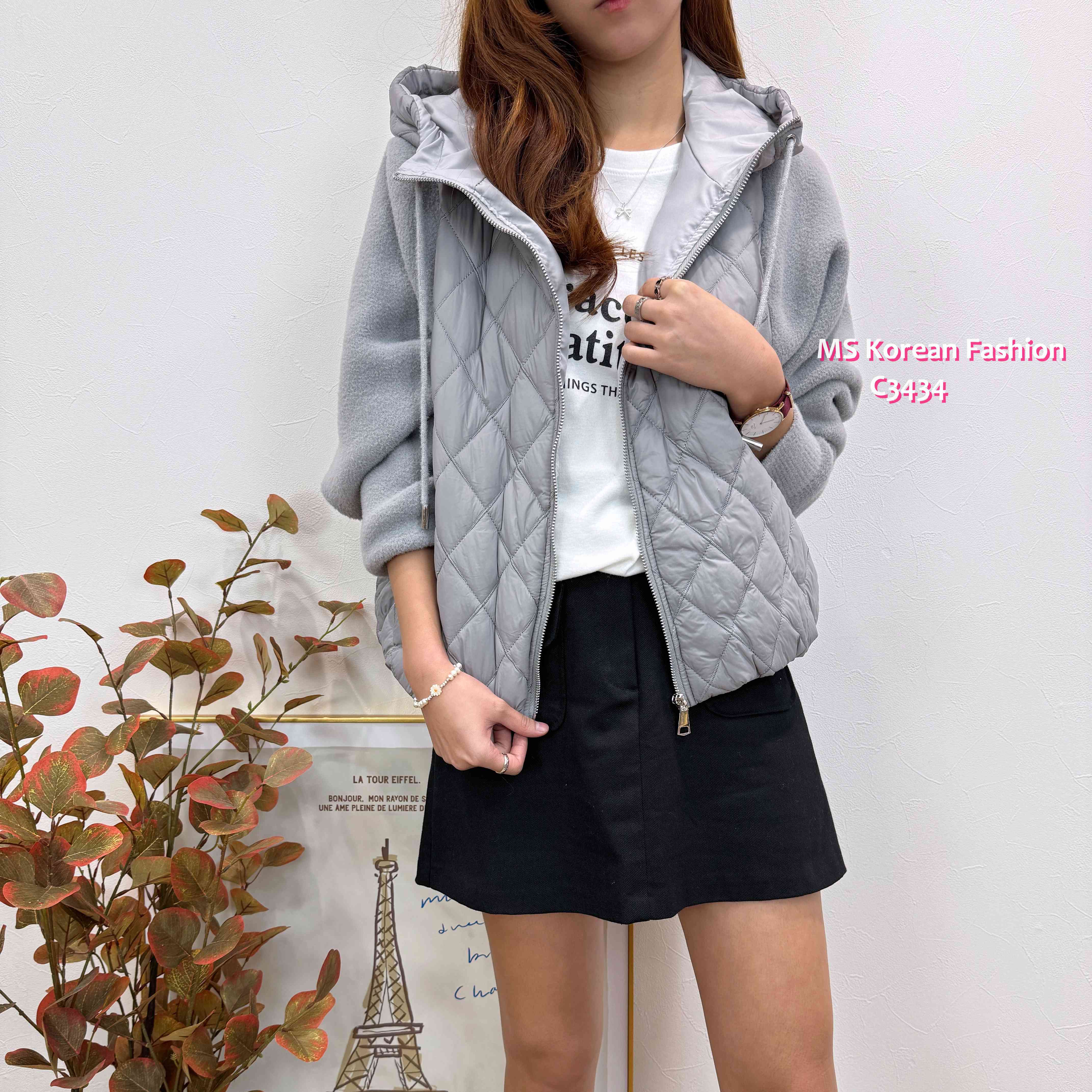 C3462 韓國🇰🇷拼色有帽外套